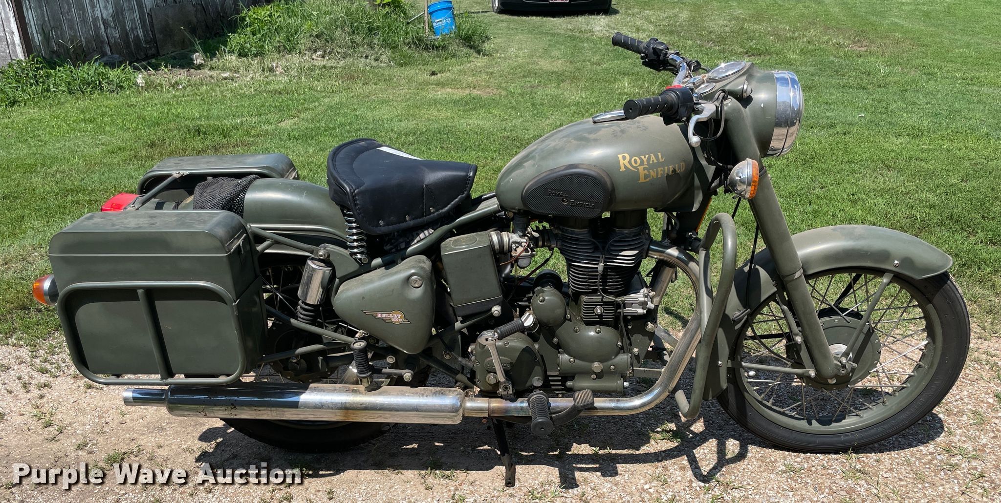 Purple Wave is selling a used Motorcycle in Kansas. This item is a 2006 Royal Enfield Sport motorcycle with the following: 1,377 miles on odometer, 499cc single cylinder gas engine, 22HP, 3.25-19 front tire, 3.50-19 rear tire, Stock windshield, mirrors, and seat included