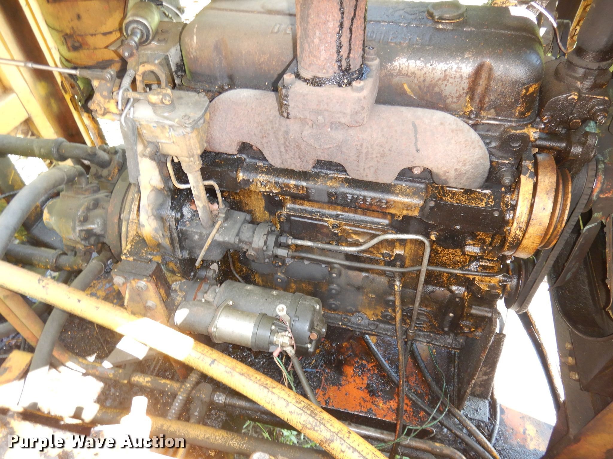 Insley H560B excavator. Unknown hours on meter. Engine Detroit Diesel 4-53, Serial: 400124703, Cylinders: 4, Fuel type: Diesel. Transmission Hydrostatic, Two speed travel. Operators station Enclosed cab. Operational Boom Standard, Stick Stick length: 92", Thumb: Hydraulic Amulet, Bucket Esco, Width: 34", Cutting edge: Weld on, Teeth: 5. Tracks Width: 24", Steel. Notes Non-operational two speed travel, Glass missing, Spindle drive hydraulic drive, Non-operational door latch. Tonganoxie, KS 66086