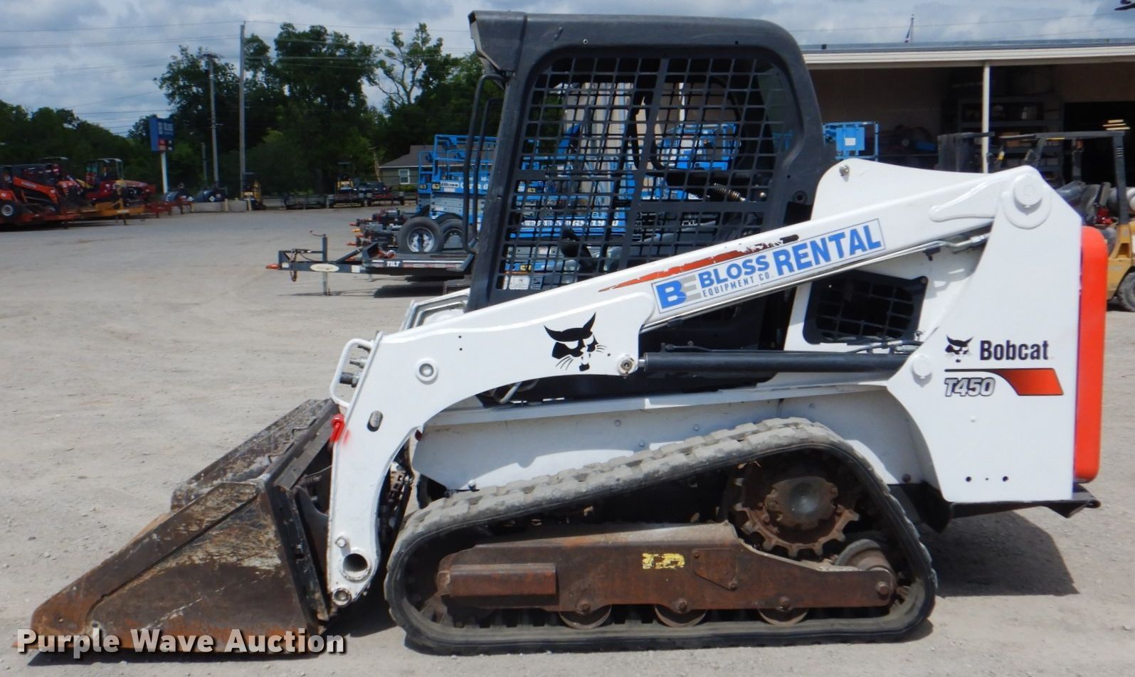 Purple Wave is selling a used Tracked Skid Steer Loader in Oklahoma. This item is a 2015 Bobcat T450 tracked skid steer loader with the following: 2,290 hours on meter, Serial: AUVP12142