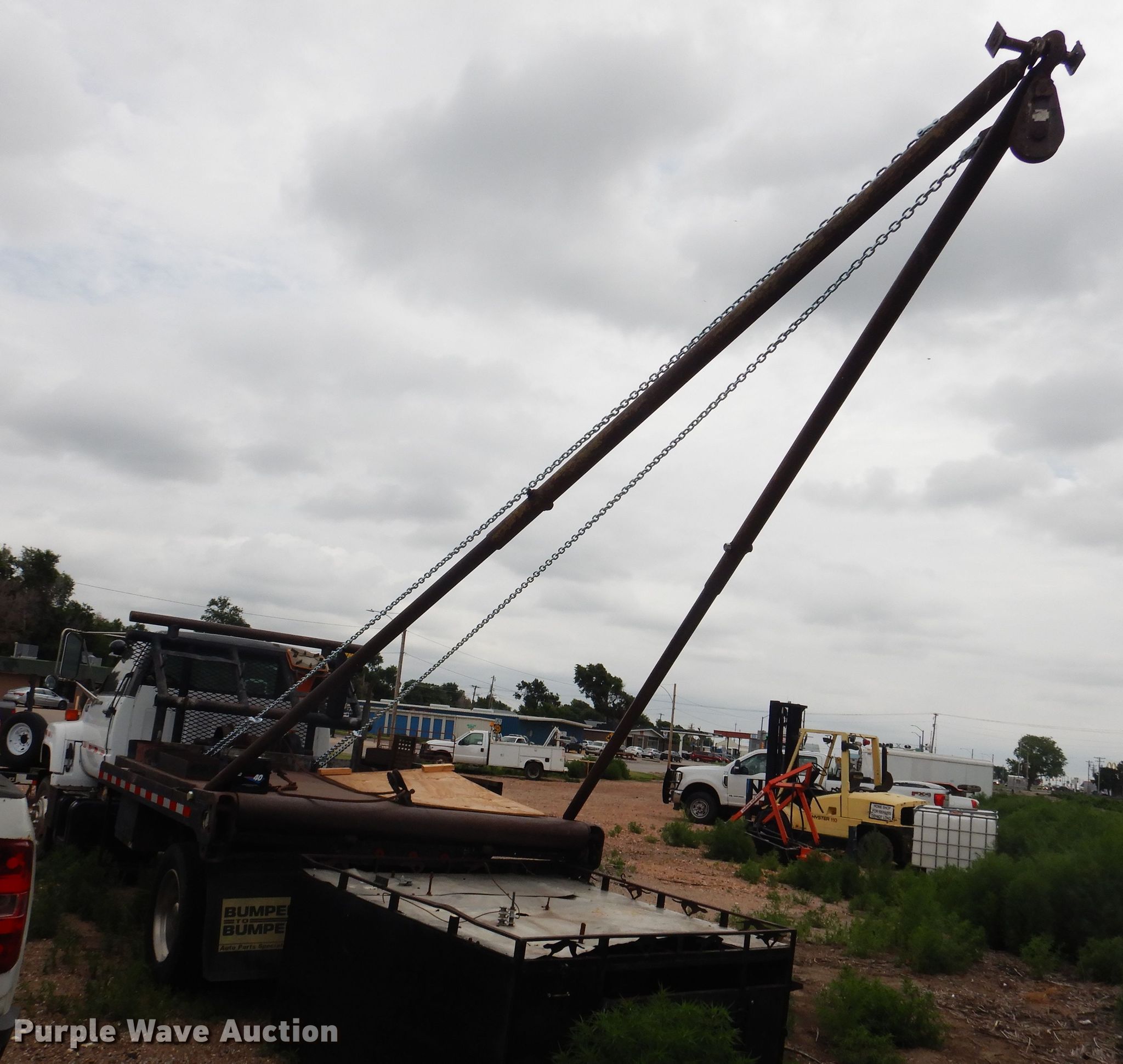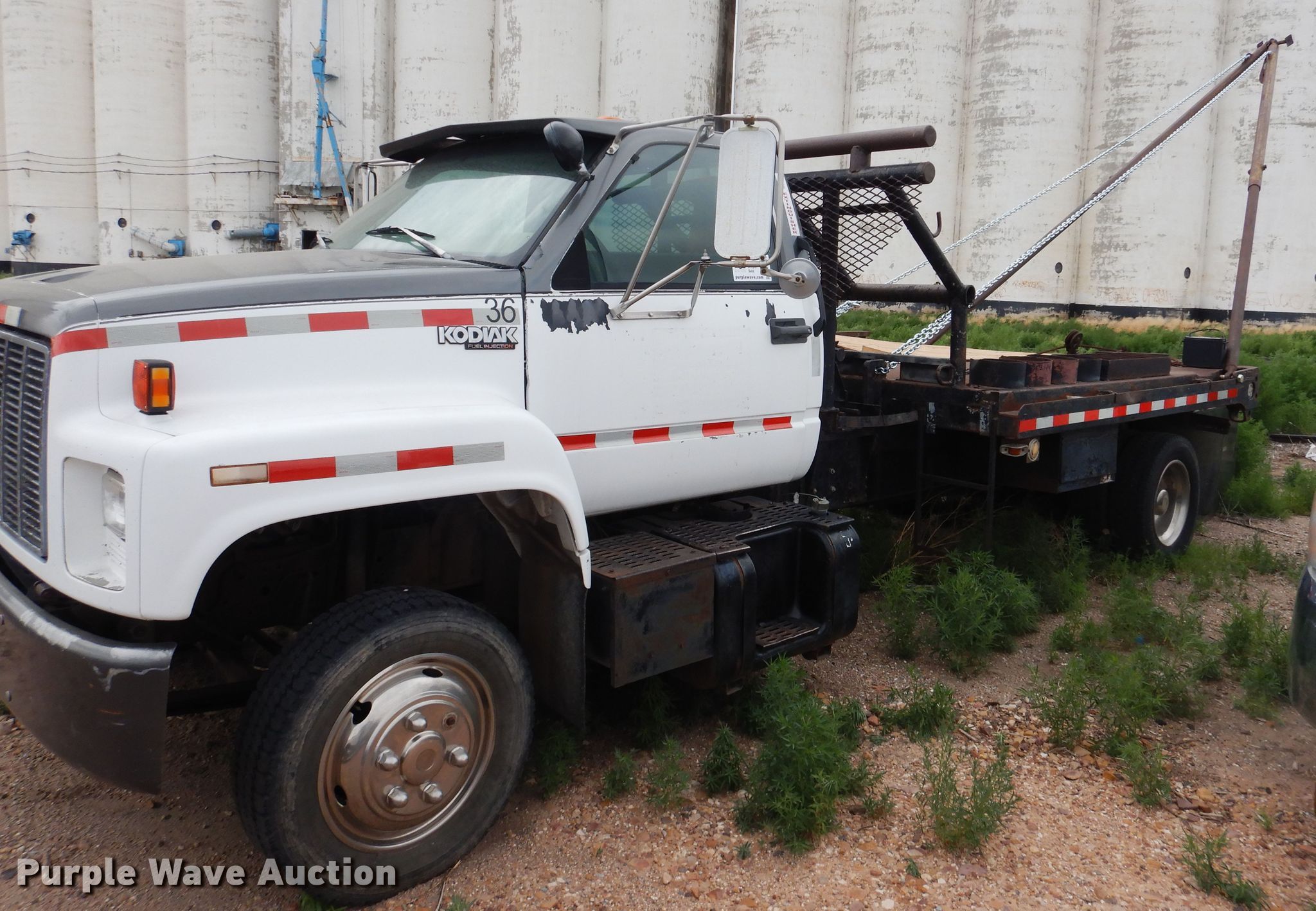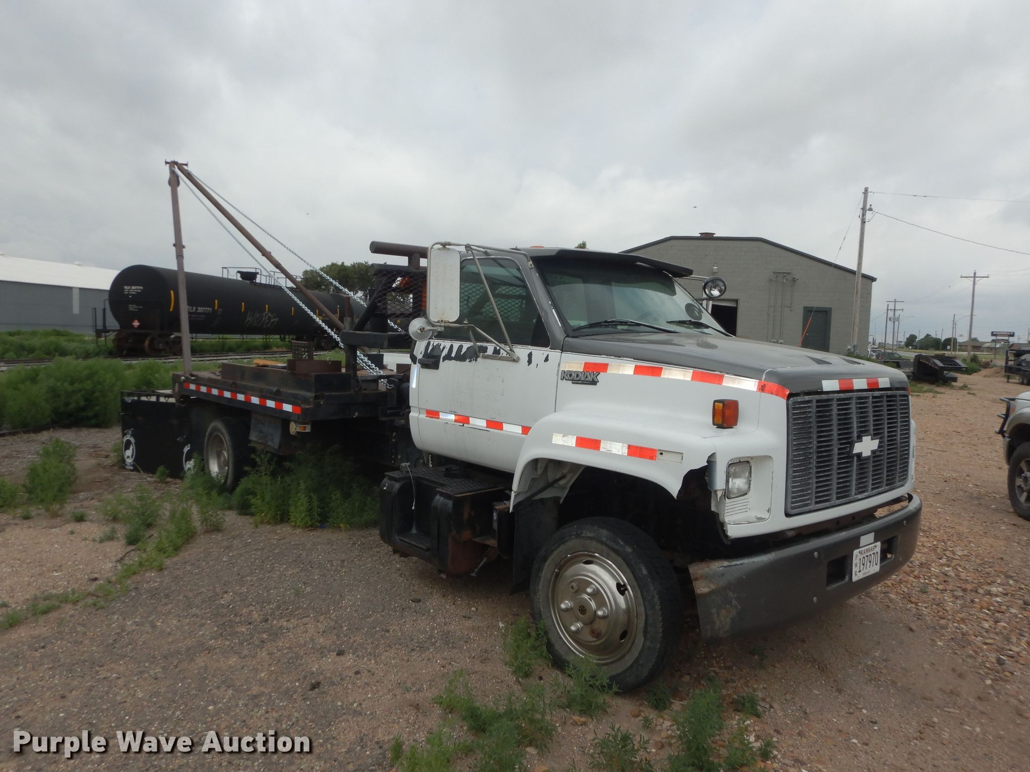 1995 Chevrolet Kodiak winch truck. 158,471 miles on odometer. Engine Displacement: 7.0L, Cylinders: 8, Fuel type: Gas. Transmission Manual, Speed: 5, plus 2. Chassis Axles: Single, Suspension: Spring, Brakes: Hydraulic. Interior AC, Heat. Operational Flatbed 10' x 8' W, Winch, Gin pole length: 14', Rolling tailboard. Tires Size: 245/70R19.5. Notes Batteries need replaced. Kansas title. 1GBL7H1M4SJ115727. Ulysses, KS 67880