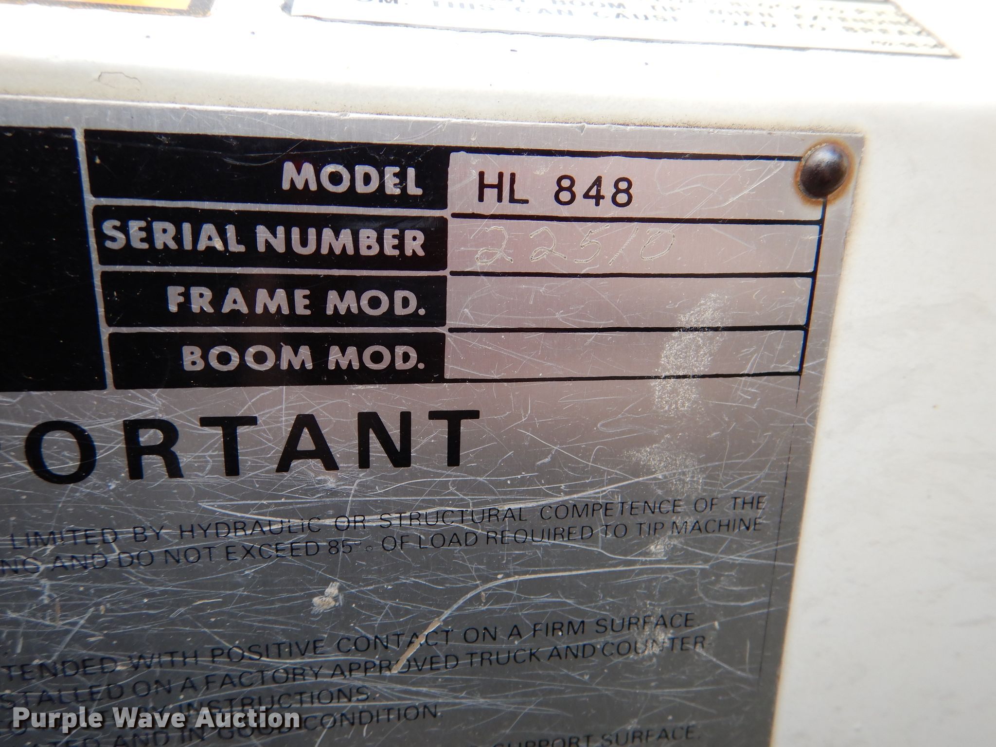1985 GMC C7000 crane truck. 37,404 miles on odometer. Engine Detroit Diesel, Displacement: 8.2L, Cylinders: 8, Fuel type: Diesel. Transmission Manual, Speed: 5, plus 2. Chassis Axles: Single, Suspension: Spring, Brakes: Hydraulic. Operational Flatbed Pitman Hydralift HL848, Serial: 22510, 14' L x 96" W, Crane Boom Telescopic, Boom length: 48', Sections: 3, Maximum lift capacity: 16,000 lbs, Boom controls, Lift chart. Tires Size: 10.00R20. Kansas title. Title distribution may be delayed up to 30 days from verification of funds. 1GDL7D1F5FV501508. Bayer Construction Company. 825 Levee Dr. Manhattan, KS 66502