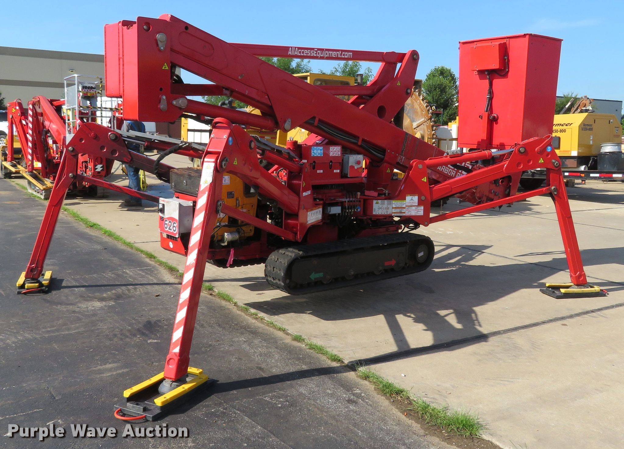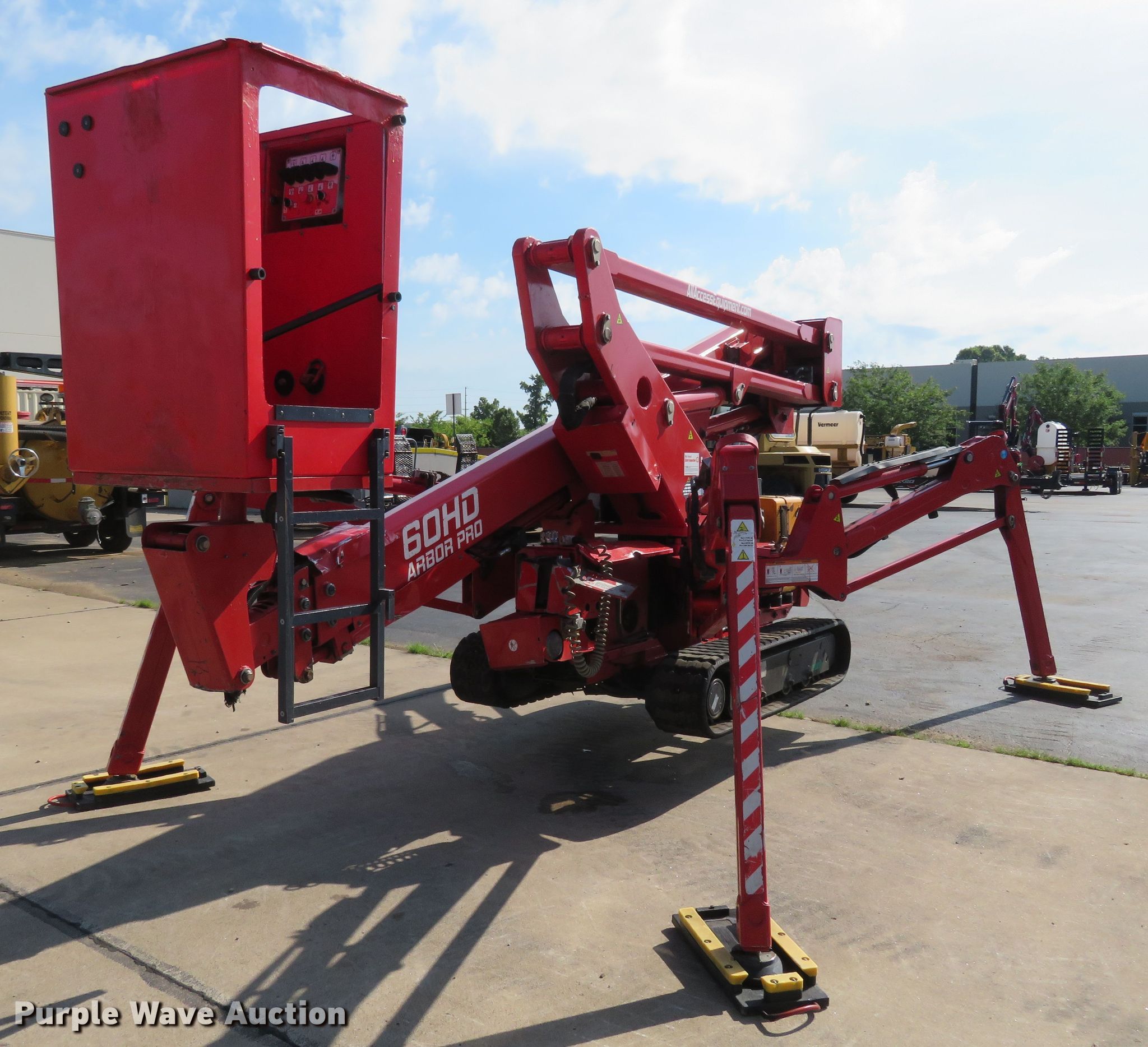 2017 CMC 60HD Arbor Pro boom lift. Serial: S17A1340. Engine Hatz, Fuel type: Diesel. Operational Articulating boom, Maximum lift capacity: 485 lbs, Maximum lift height: 60', Hydraulic outriggers, Platform: 24" L x 32" W, Controls: Platform, Ground. Tracks Width: 11", Rubber. Vermeer Midwest. 621 Spirit Valley East Dr. Chesterfield, MO 63005