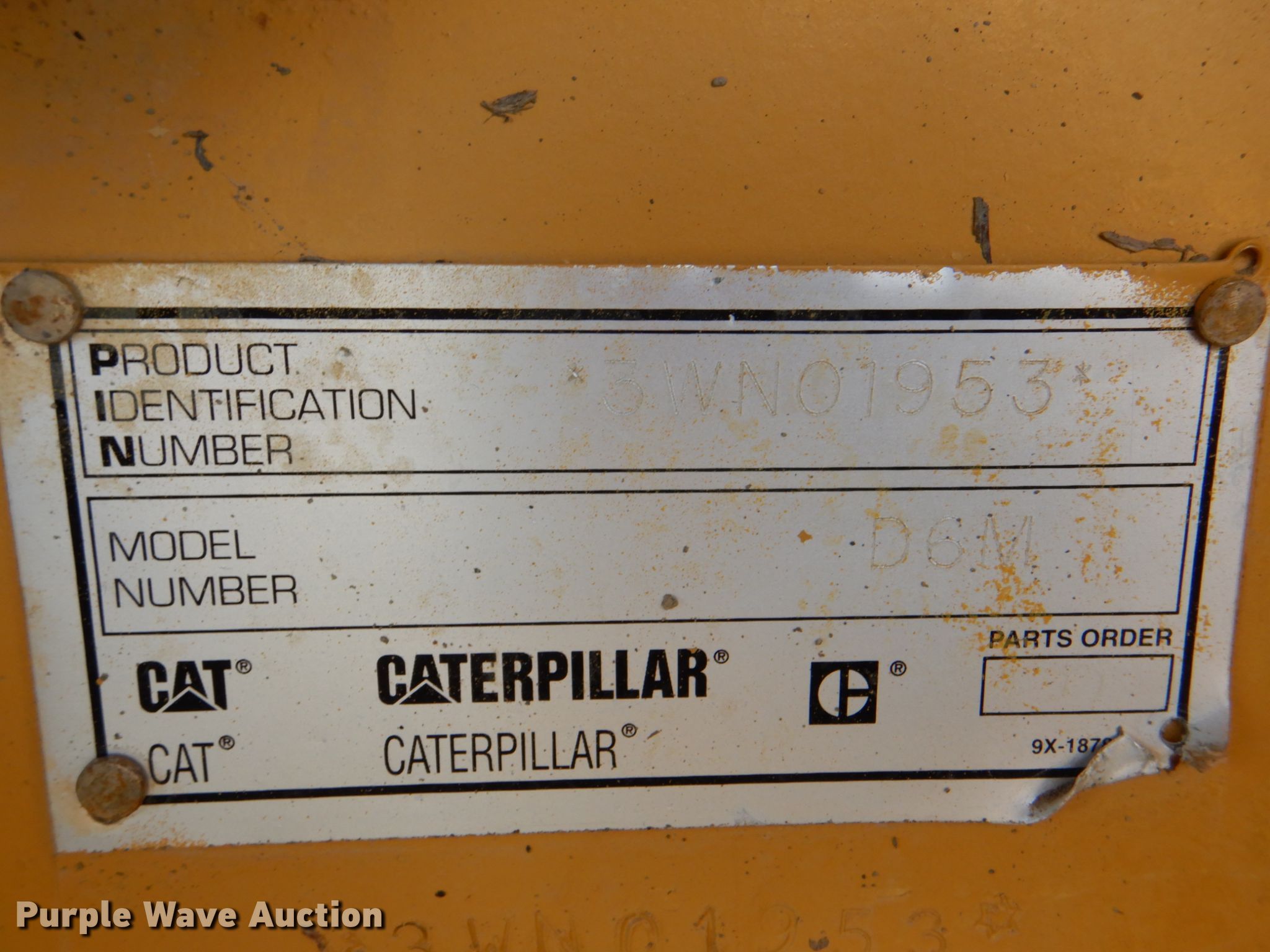 1999 Caterpillar D6M dozer. 8,134 hours on meter, Serial: 3WN01953. Engine Caterpillar 3116, Displacement: 6.6L, Cylinders: 6, Fuel type: Diesel. Transmission Powershift, 3F - 3R. Operators station EROPS AC, Heat, Electronic Monitoring System panel, Steering: Fingertip control. Operational Sweeps, Dozer blade Type: 6-way, Straight, Width: 10', Attachments Ripper Caterpillar D6M Ripper, Shanks: 2.. Tracks Width: 24", Grouser pads: Single. Notes Glass cracked. Collinsville, OK 74021