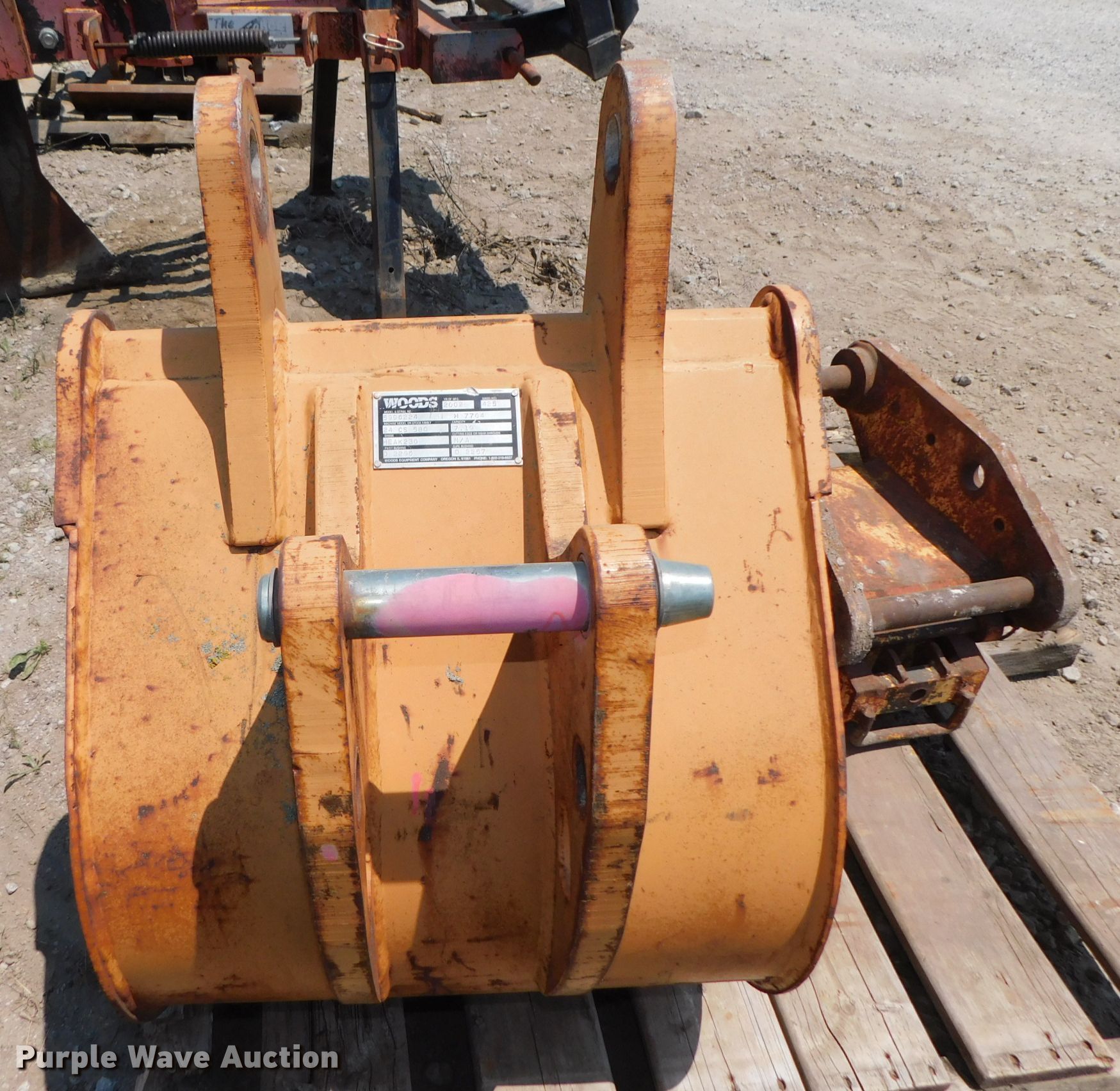 Purple Wave is selling a used Backhoe Attach. in Nebraska. This item is a Woods 24 CS 580 24"W backhoe bucket with the following: Cutting edge: Weld-on, Teeth: 5, Capacity: 7.19 cu.ft., Manual quick coupler