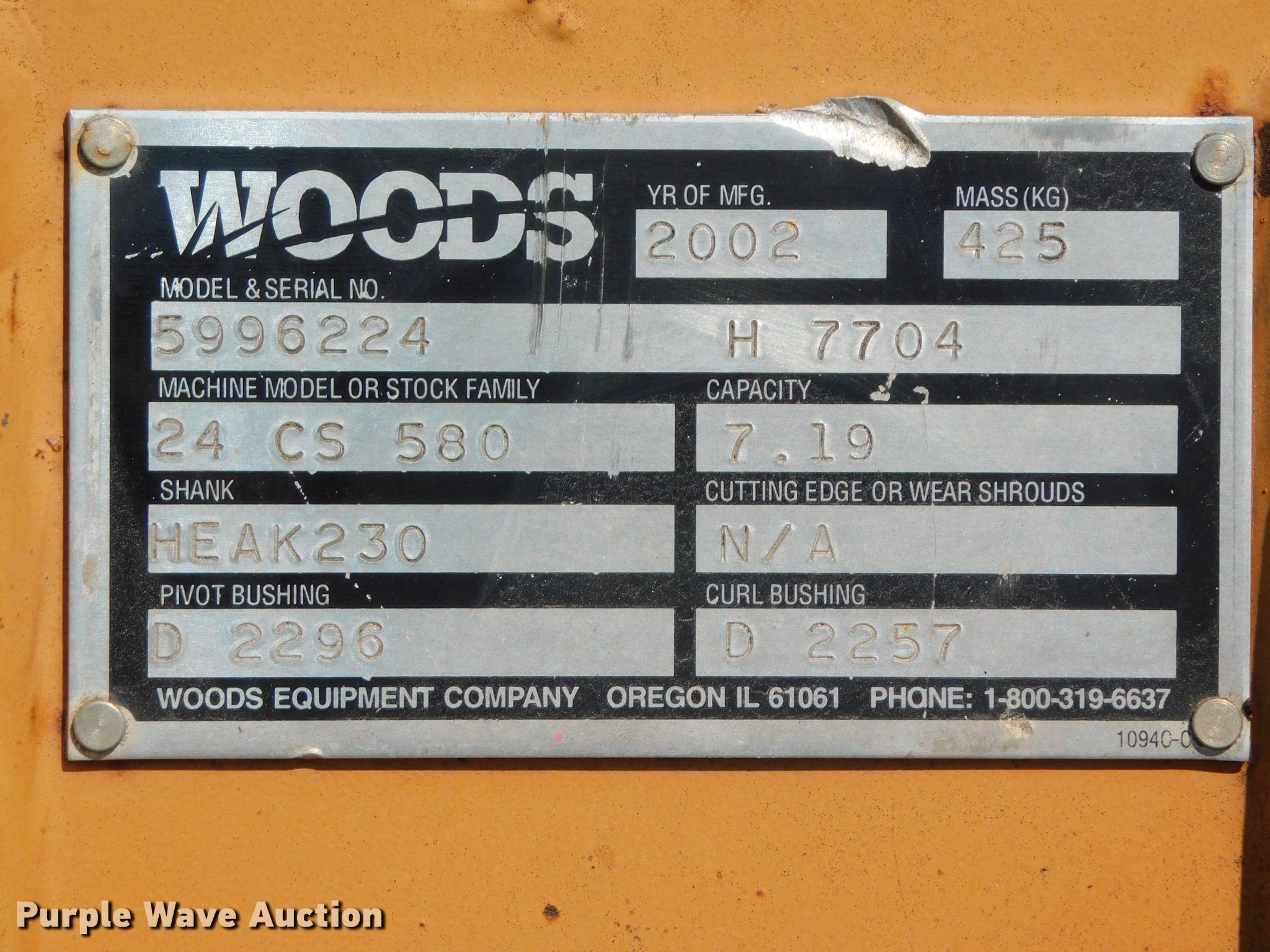 Woods 24 CS 580 24"W backhoe bucket has sold in Lincoln, Nebraska for $231. Item HX9405 sold on August 12th, 2021.