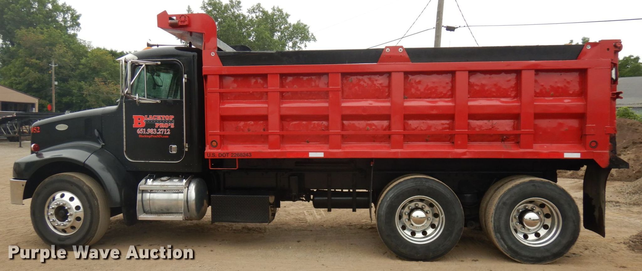 1999 Peterbilt 330 dump truck. 283,066 miles on odometer, Engine hours: 7,338. Engine Caterpillar 3126, Displacement: 7.2L, Cylinders: 6, Fuel type: Diesel. Transmission Manual, Speed: 10. Chassis Axles: Tandem, Differential lock: Full, Suspension: Walking beam, Brakes: Air, PTO, GVWR: 52,350 lbs, Wheelbase: 210". Interior AC, Heat, Heated mirrors, Cruise control. Operational Dump bed 16' L x 96" W, Side height: 40", Side board height: 7", Bed type: Steel, Ram: Single , End gate: Air operated. Tires Front: 315/80R22.5, Rear: 11R22.5. Minnesota title. Title distribution may be delayed up to 14 days from verification of funds. 1NPNLD9X3XS508166. Blacktop Pros. 815 Farrington St. Saint Paul, MN 55117