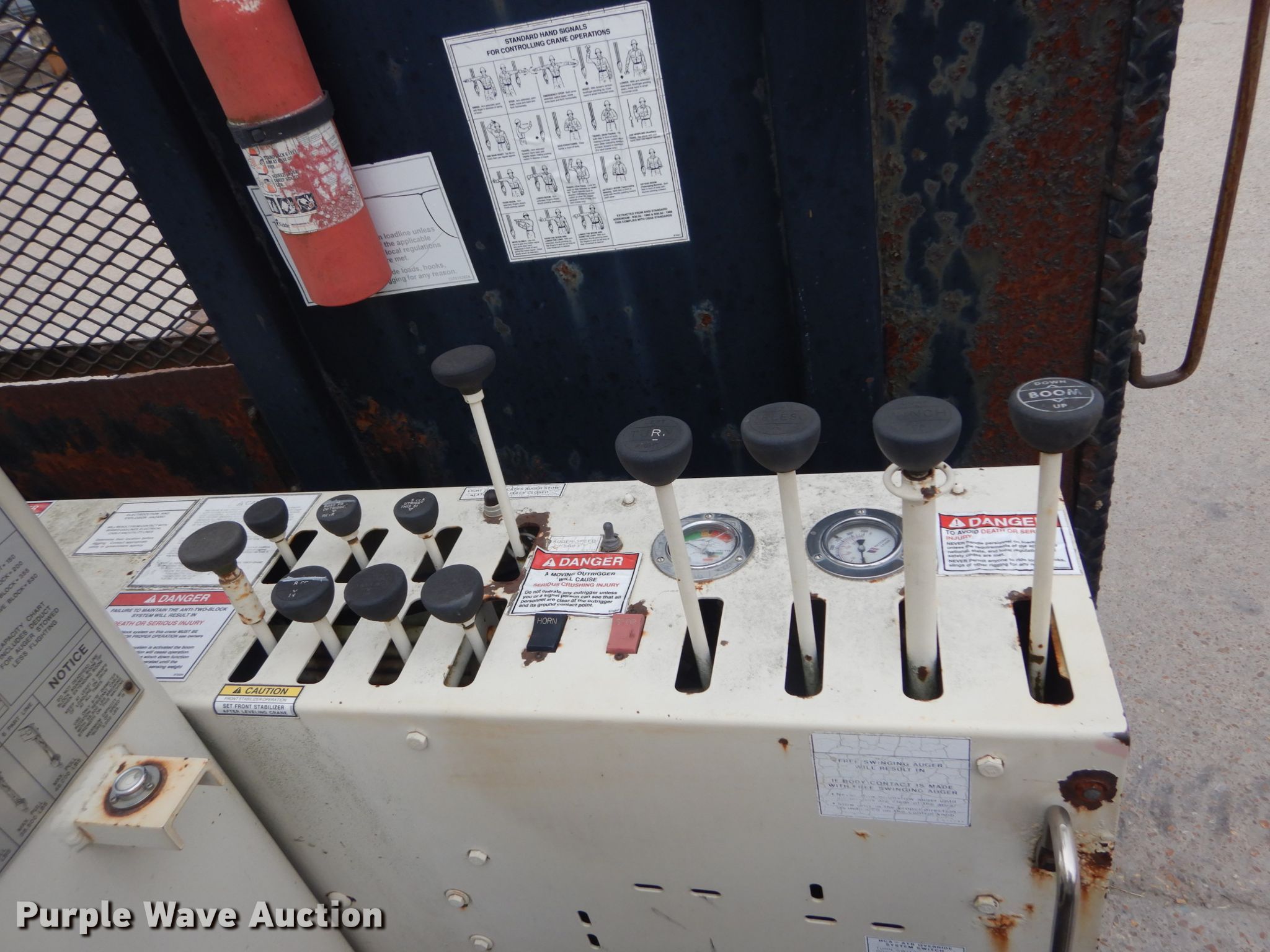 1998 Ford LT9513 crane truck. 168,390 miles on odometer, Engine hours: 8,197. Engine Caterpillar, Cylinders: 6, Fuel type: Diesel. Transmission Eaton Fuller, Manual, Speed: 9. Chassis Axles: Tandem, Suspension: Spring over walking beam, Brakes: Air, PTO, GVWR: 58,100 lbs FAWR: 18,100 lbs, IAWR: 20,000 lbs, RAWR: 20,000 lbs, Wheelbase: 264". Interior AC, Heat. Operational Flatbed Supreme Corp, 20' L x 96" W, Crane National Crane Corp 900 Serial: 29065, Boom Telescopic, Boom length: 90', Sections: 3, Maximum lift capacity: 46,000 lbs, Boom controls Ground, Capacity: 25,000 lbs, Digger derrick 12" diameter auger bits, 14" diameter auger bit, (3) 16" diameter auger bits, (2) 18" diameter auger bit, (2) 24" diameter auger bits, (3) 30" diameter auger bits, 32" diameter auger bit, (3) 36" diameter auger bits, (2) auger extensions, Lift chart. Tires Front: 385/65R22.5, Rear: 11R22.5. Notes Certification valid through April 2022. Missouri title. 1FDZS96TXWVA37815. Collins & Hermann Inc.. 1215 Dunn Rd. St. Louis, MO 63138