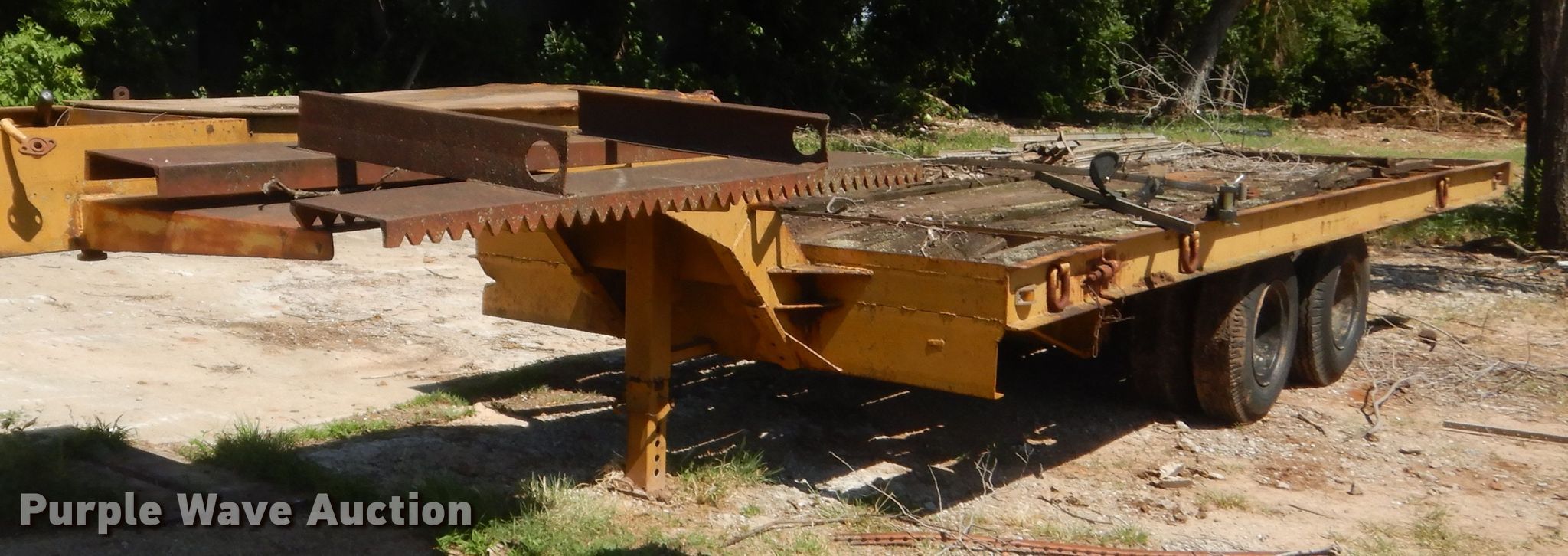 Purple Wave is selling a used Equip. Trailer in Oklahoma. This item is a Shop built equipment trailer with the following: Overall: 30' L, Deck: 20' 6" L x 96" W