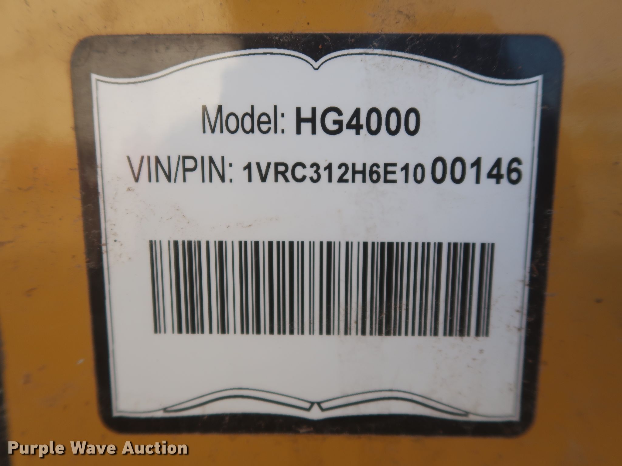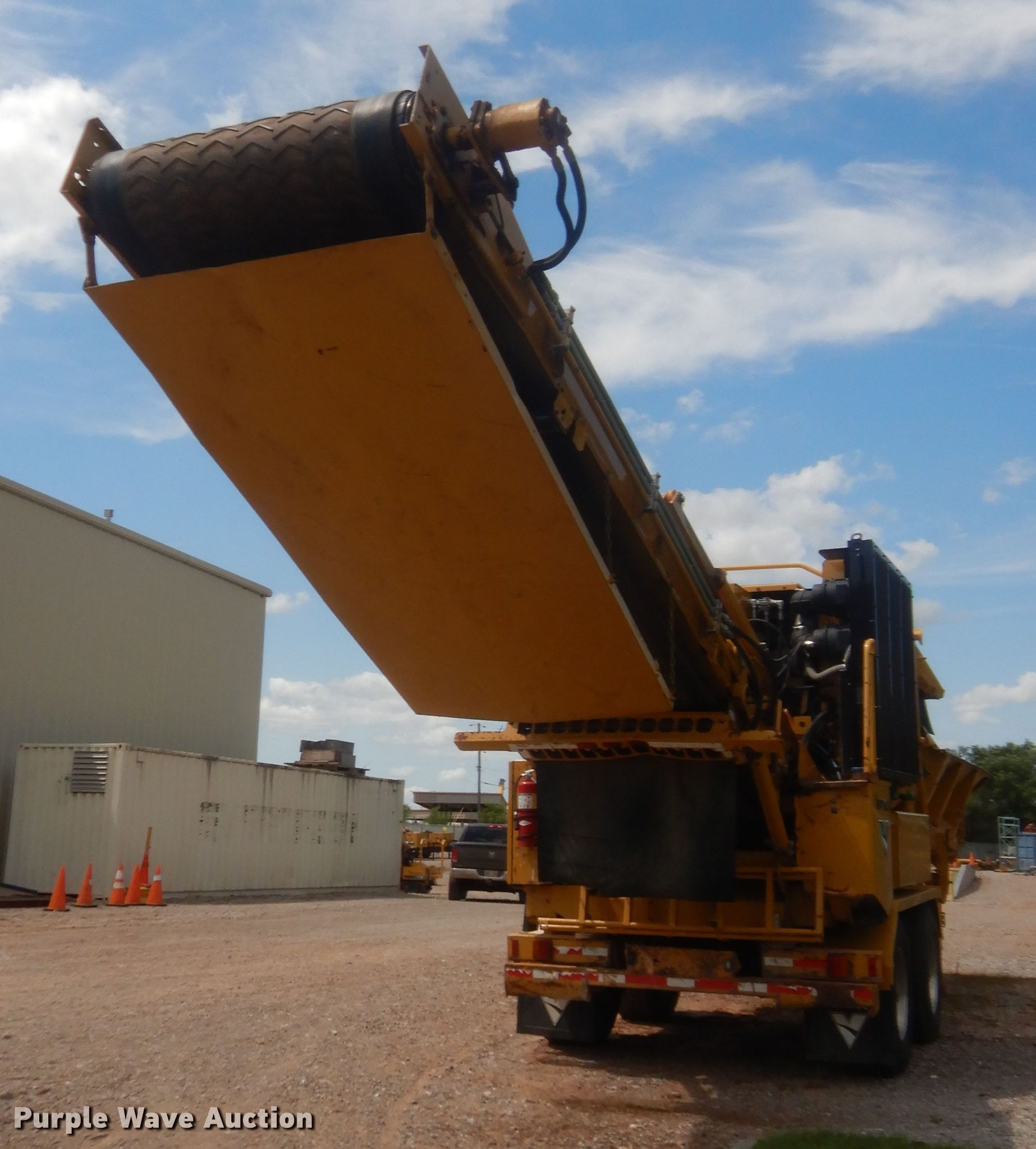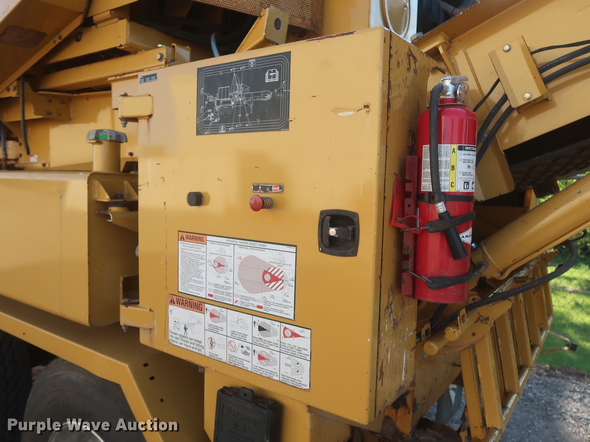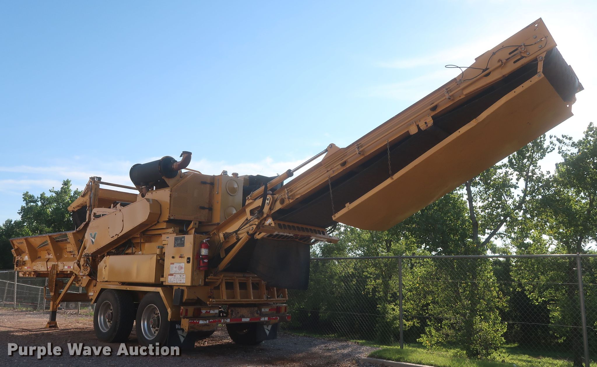 Purple Wave is selling a used Wood Grinder in Oklahoma. This item is a 2014 Vermeer HG4000 horizontal grinder with the following: 2,080 hours on meter, 52'L x 96"W overall, Fiat six cylinder diesel engine, 60" opening, Single belt discharge, Hydraulic conveyor, Tandem axle, Spring suspension, Air brakes, 385/65R22.5 tires, GVWR: 44,000 lbs