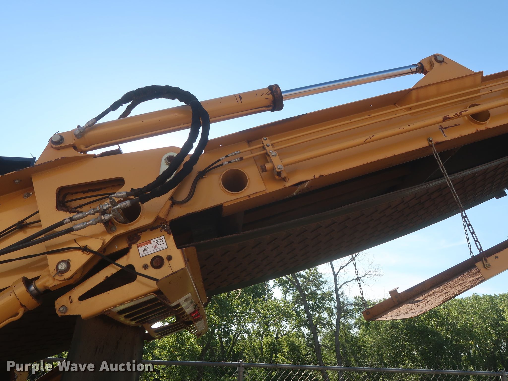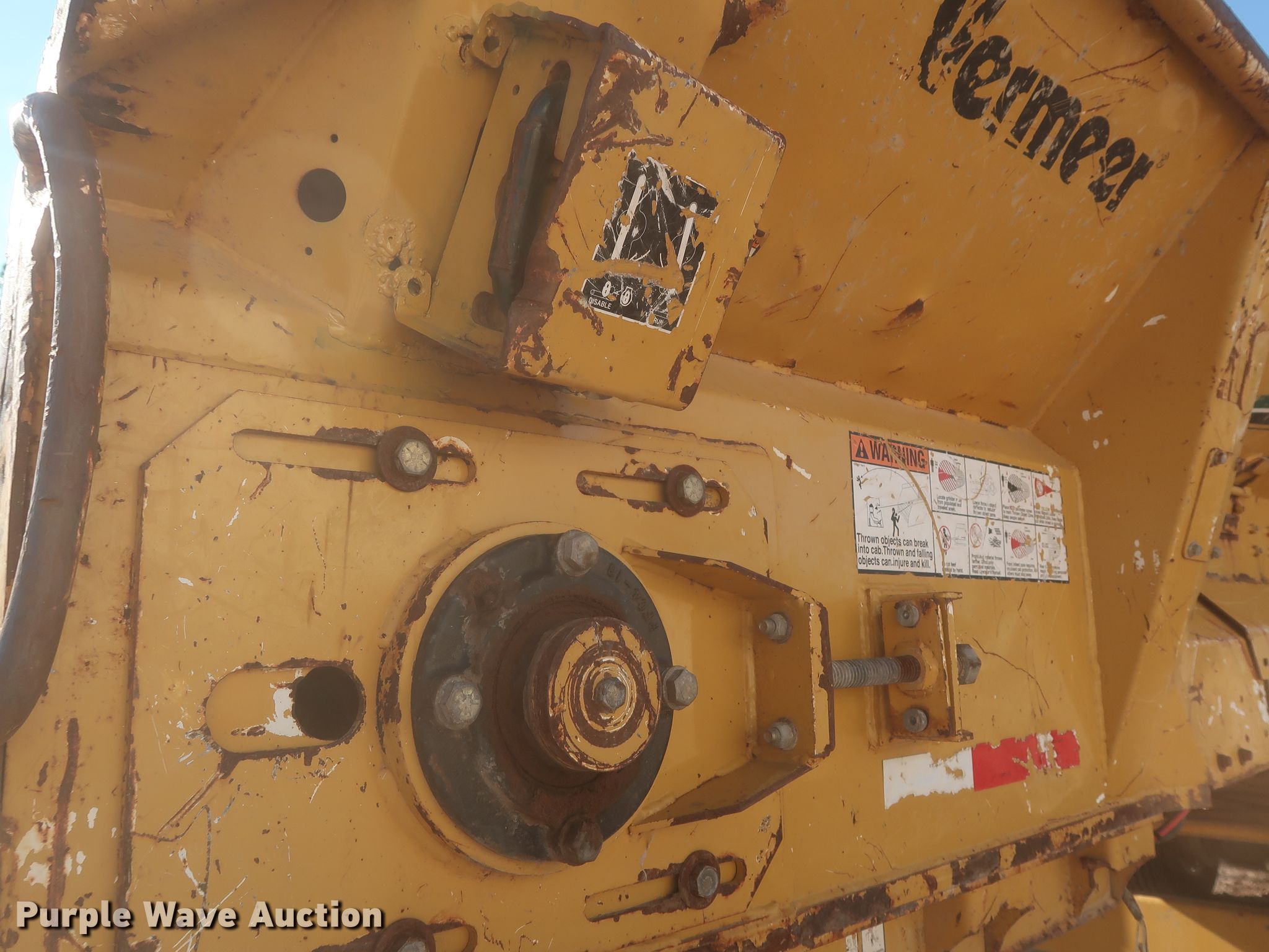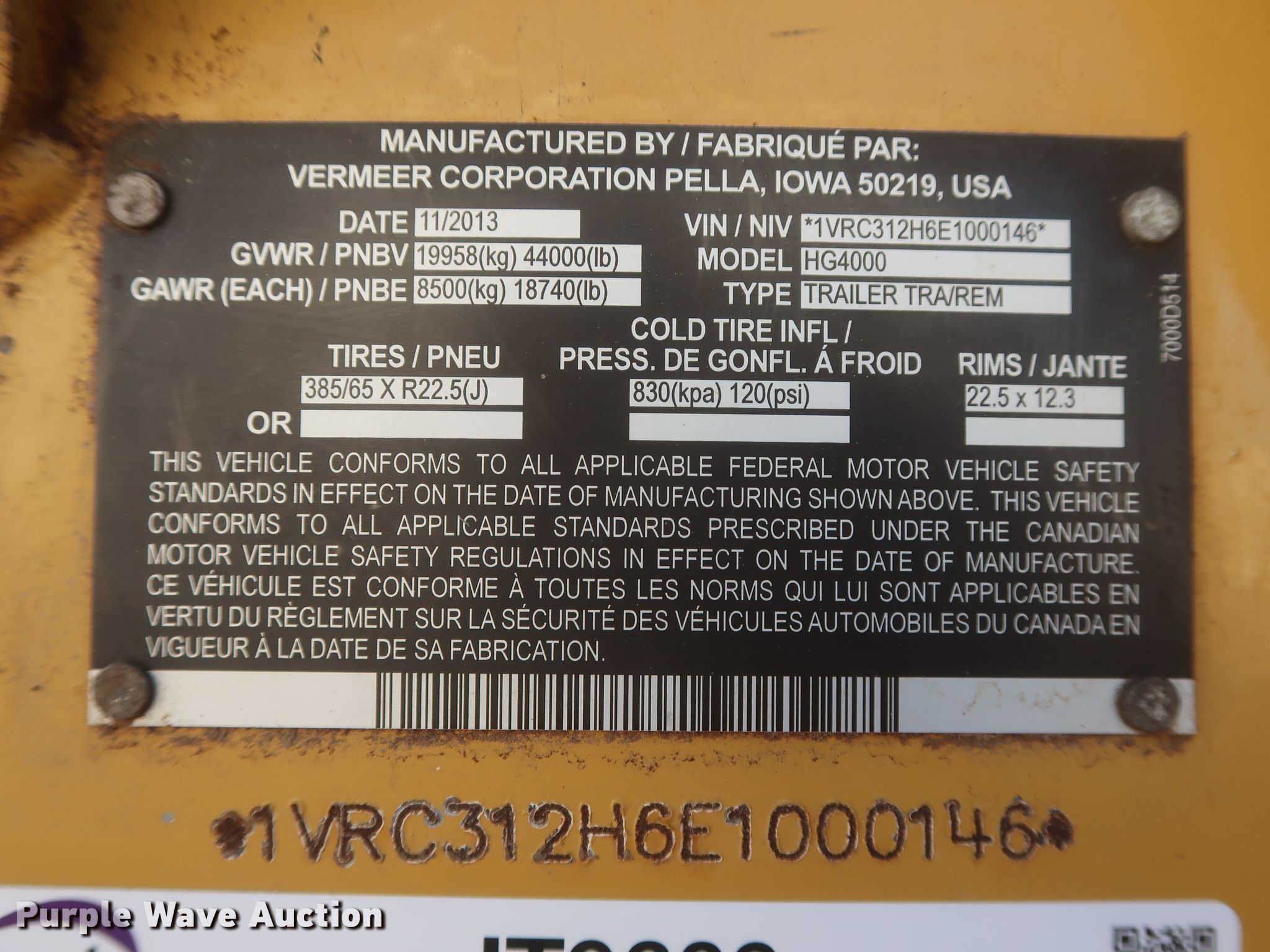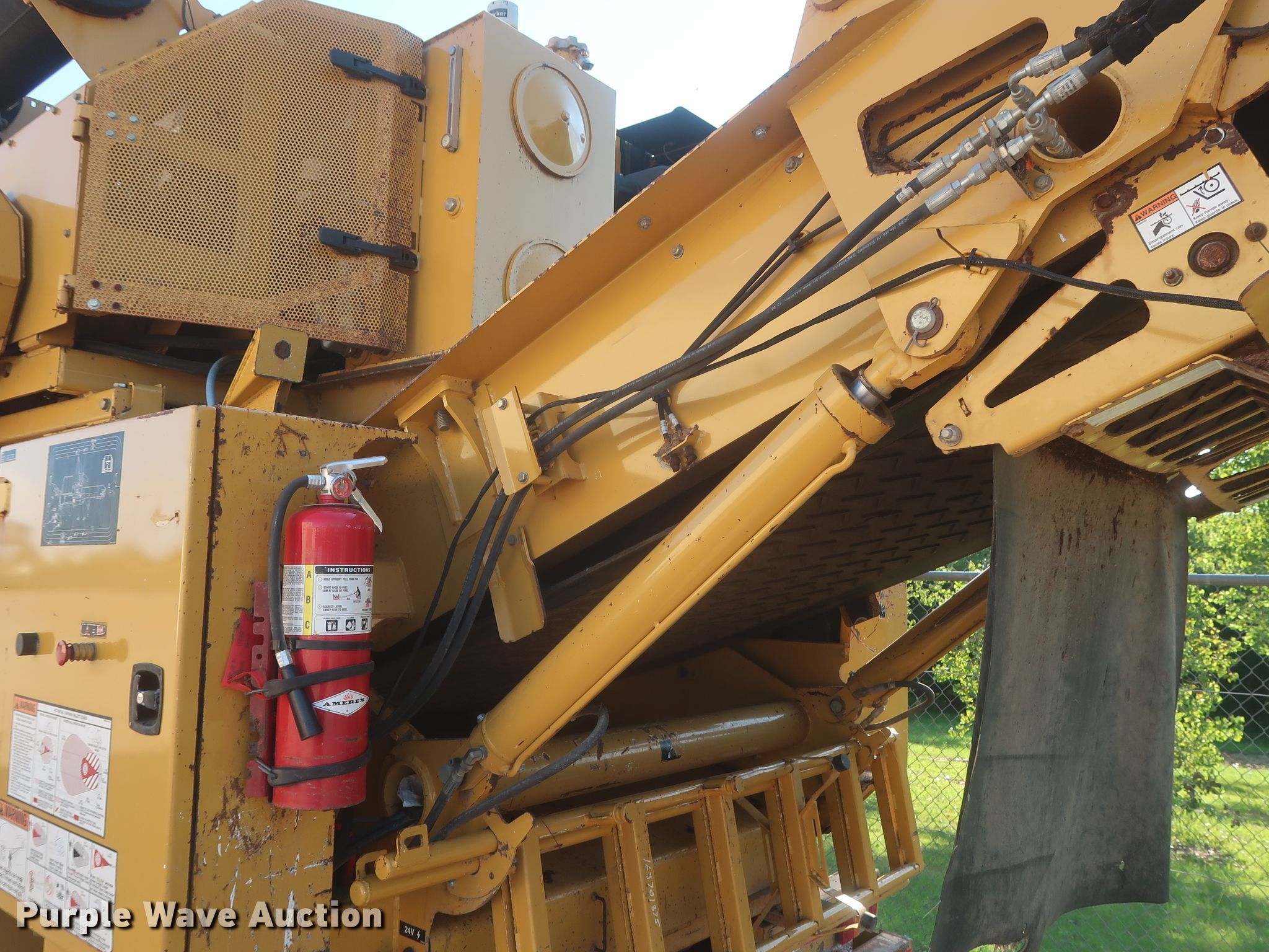 Purple Wave is selling a used Wood Grinder in Oklahoma. This item is a 2014 Vermeer HG4000 horizontal grinder with the following: 2,080 hours on meter, 52'L x 96"W overall, Fiat six cylinder diesel engine, 60" opening, Single belt discharge, Hydraulic conveyor, Tandem axle, Spring suspension, Air brakes, 385/65R22.5 tires, GVWR: 44,000 lbs