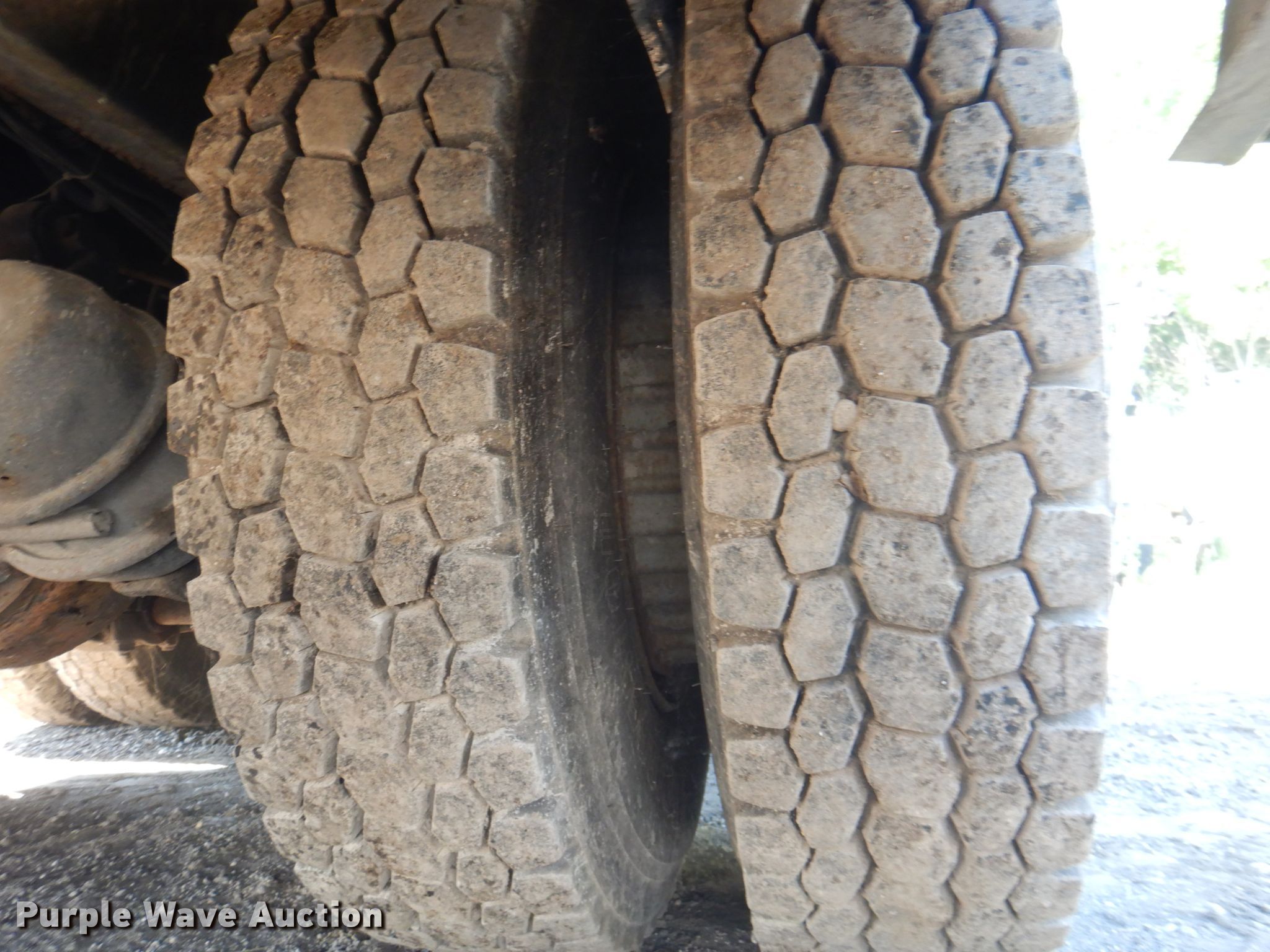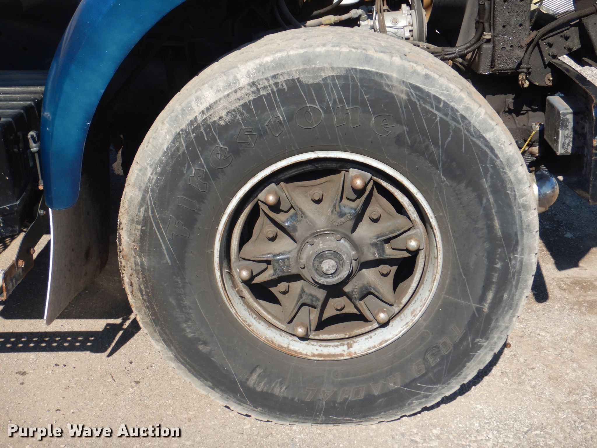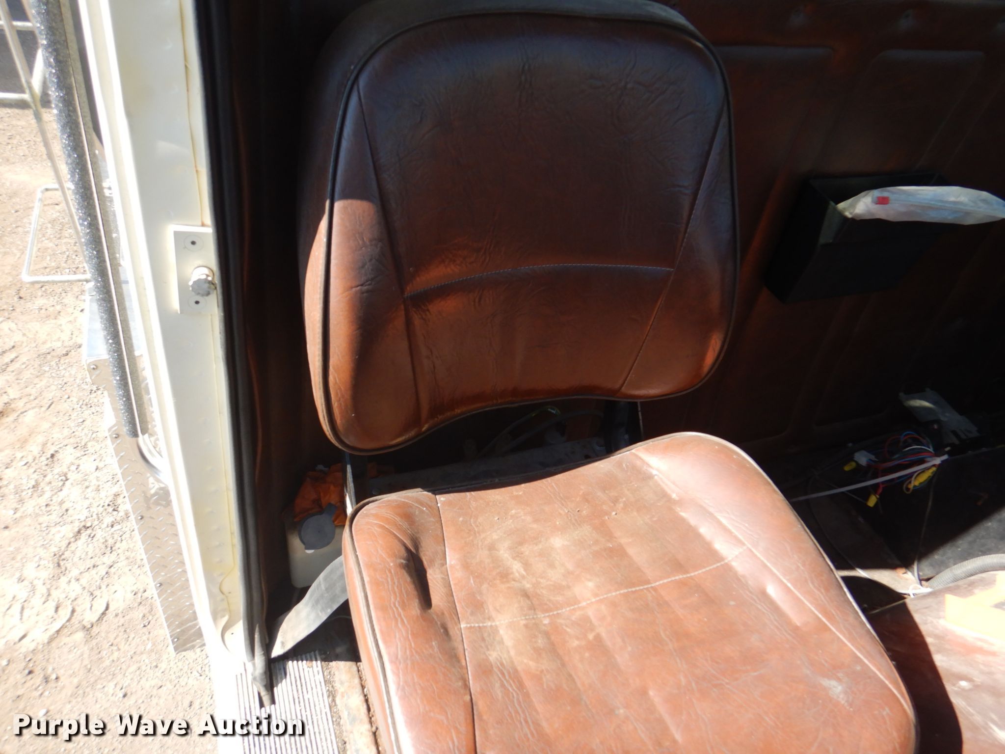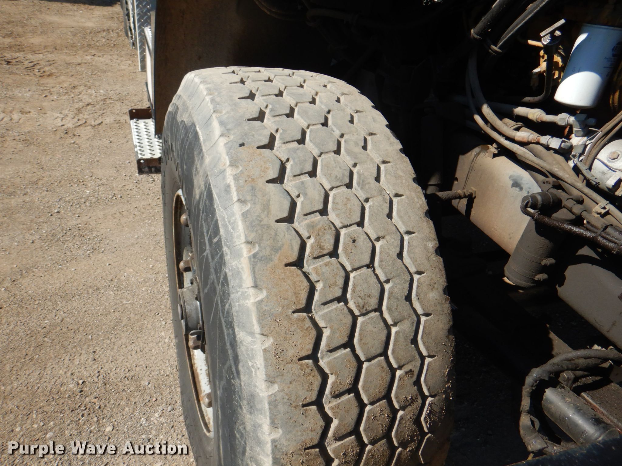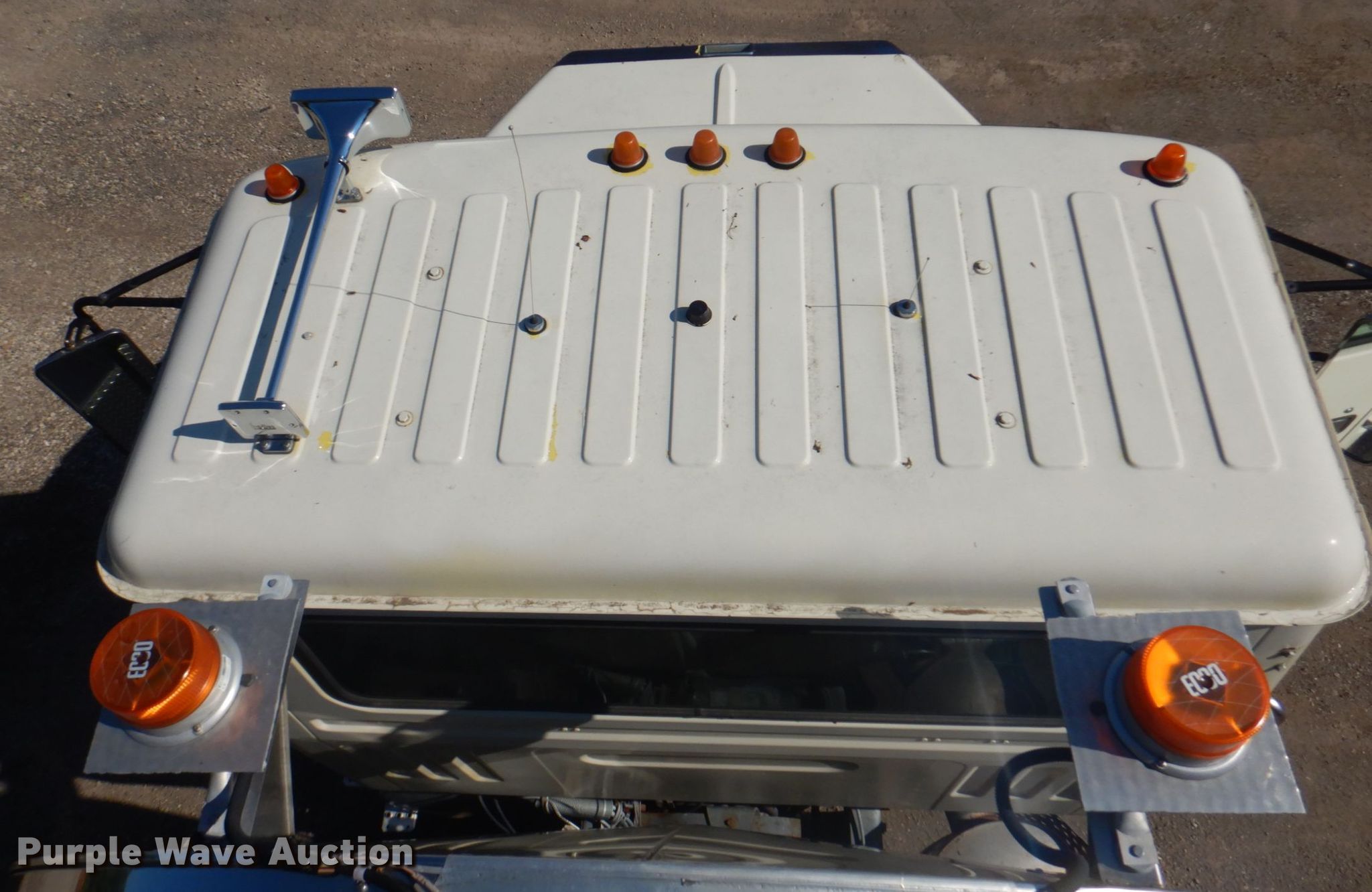 1989 White GMC WCS tank truck. 30,772 miles on odometer. Engine Caterpillar 33066B, Serial: 63Z13574, Displacement: 10.0L, Cylinders: 6, Fuel type: Diesel, HP: 270. Transmission Allison T-654C, Automatic. Chassis Axles: Tandem, Differential lock: Inter-axle, Suspension: Spring over walking beam, Brakes: Air, PTO. Interior Heat, Heated mirrors, Auxiliary controls. Operational Bed / tank US Tanker, 18' L x 95" W, Water tank Side discharge, Top fill, Rear drain: 2". Tires Front: 425/65R22.5, Rear: 11R22.5. Wisconsin title. 4V2ACBBDXKN616198. Asphalt Contractors, Inc... 21750 Durand Ave. Union Grove, WI 53182