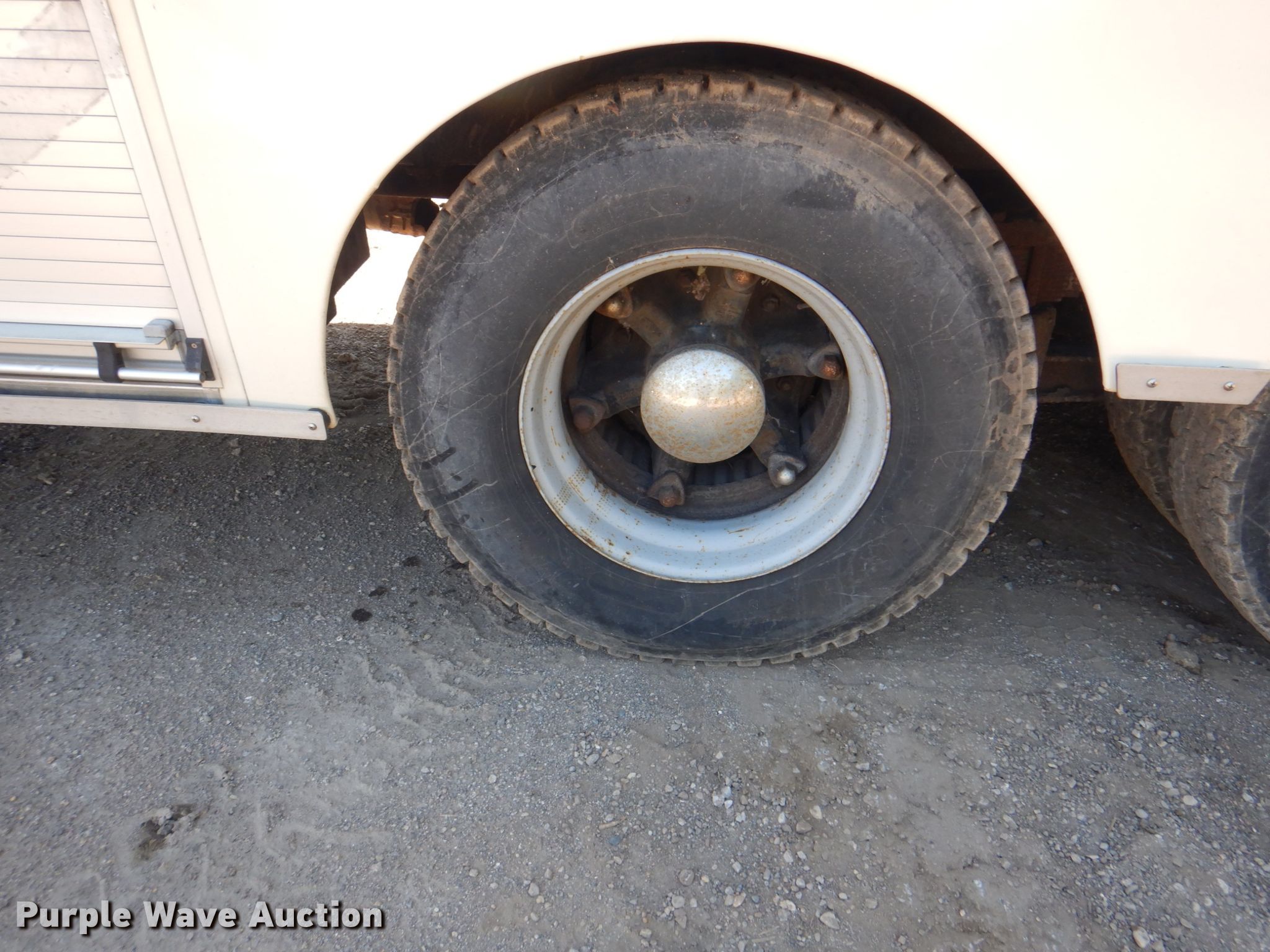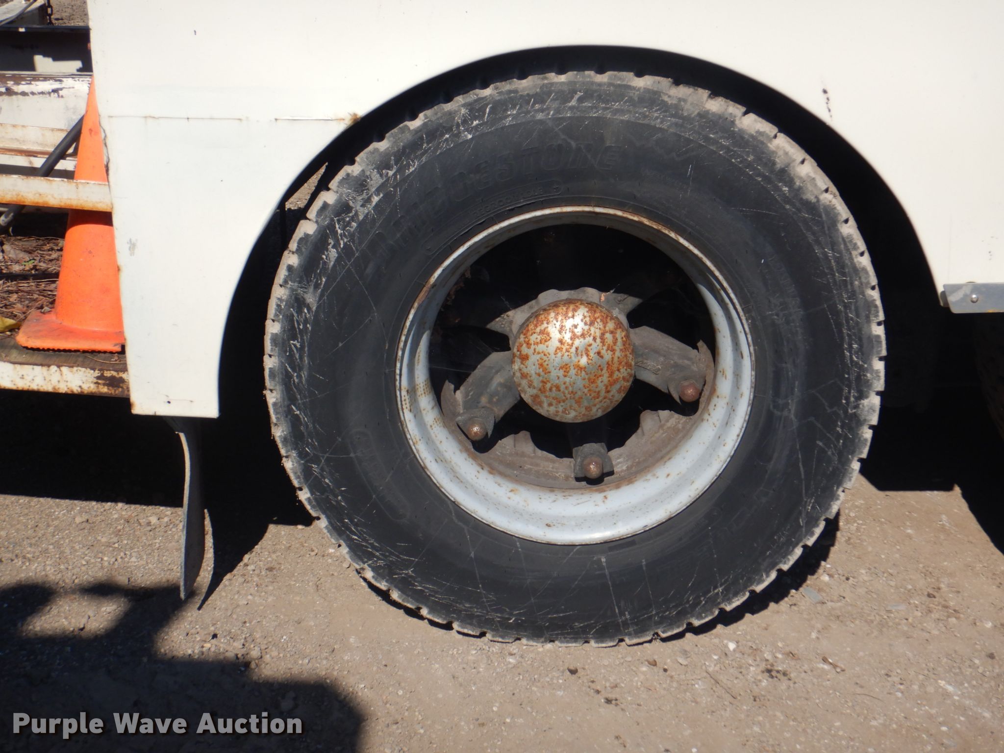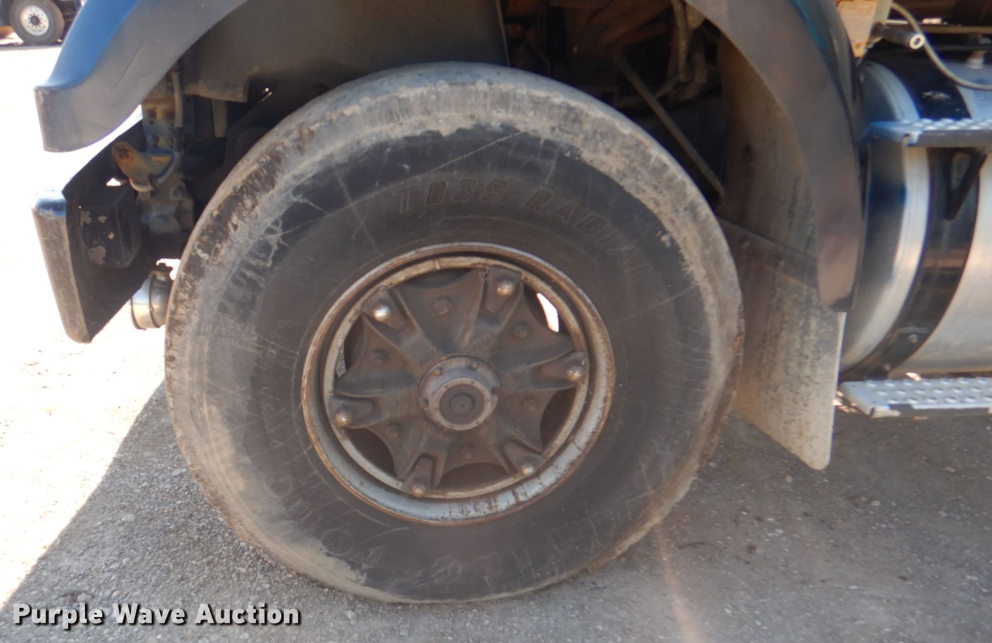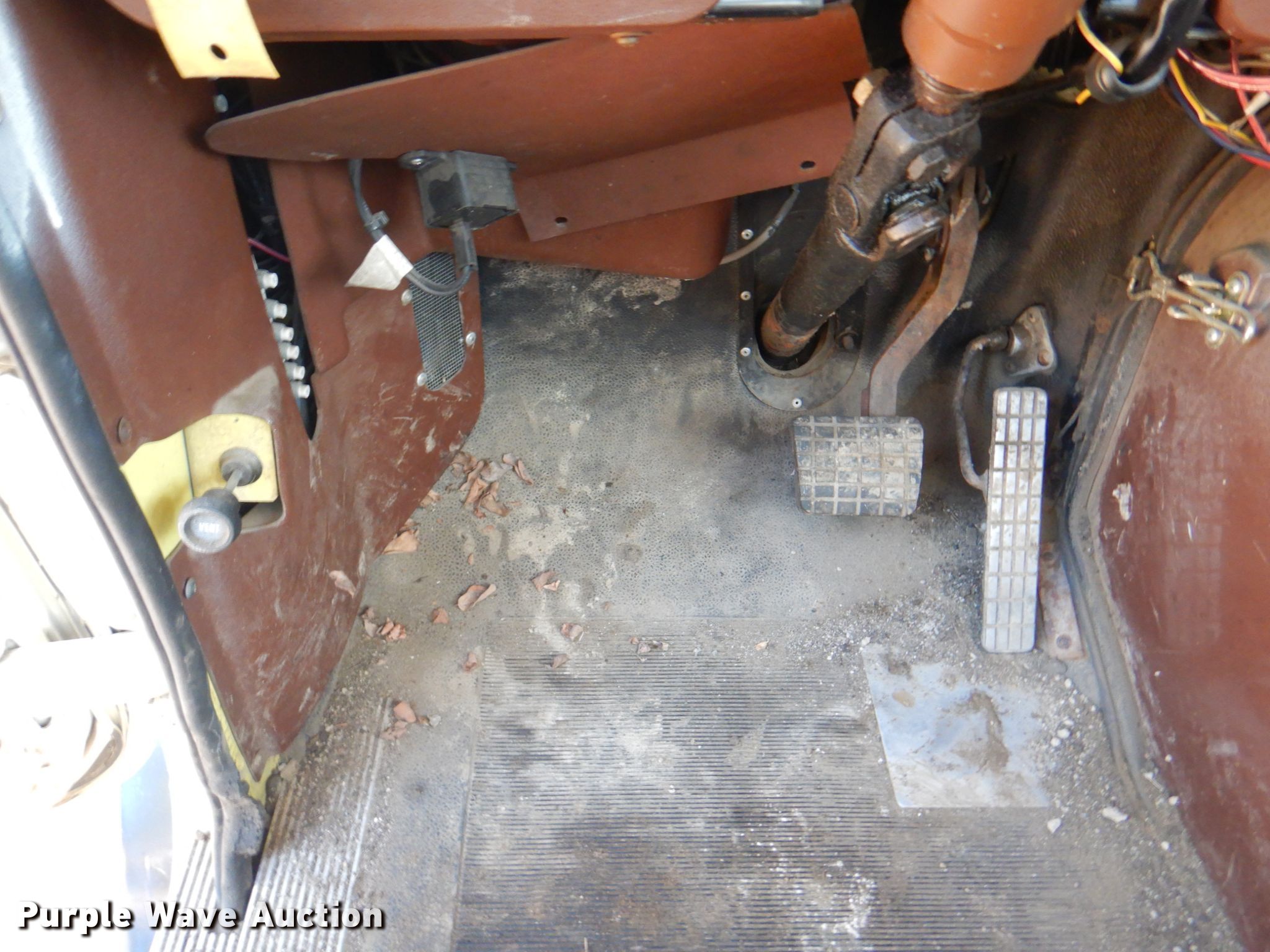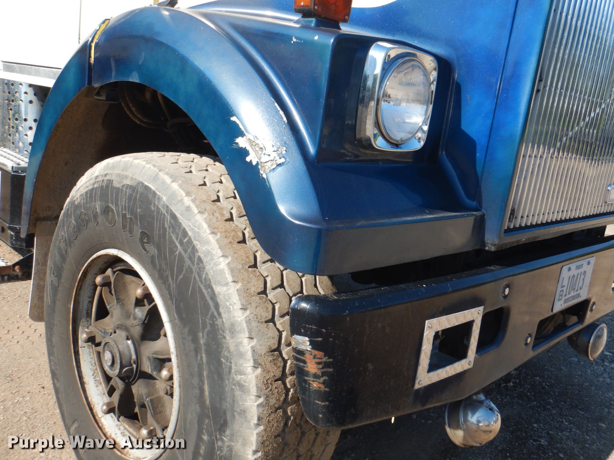 1989 White GMC WCS tank truck. 30,772 miles on odometer. Engine Caterpillar 33066B, Serial: 63Z13574, Displacement: 10.0L, Cylinders: 6, Fuel type: Diesel, HP: 270. Transmission Allison T-654C, Automatic. Chassis Axles: Tandem, Differential lock: Inter-axle, Suspension: Spring over walking beam, Brakes: Air, PTO. Interior Heat, Heated mirrors, Auxiliary controls. Operational Bed / tank US Tanker, 18' L x 95" W, Water tank Side discharge, Top fill, Rear drain: 2". Tires Front: 425/65R22.5, Rear: 11R22.5. Wisconsin title. 4V2ACBBDXKN616198. Asphalt Contractors, Inc... 21750 Durand Ave. Union Grove, WI 53182