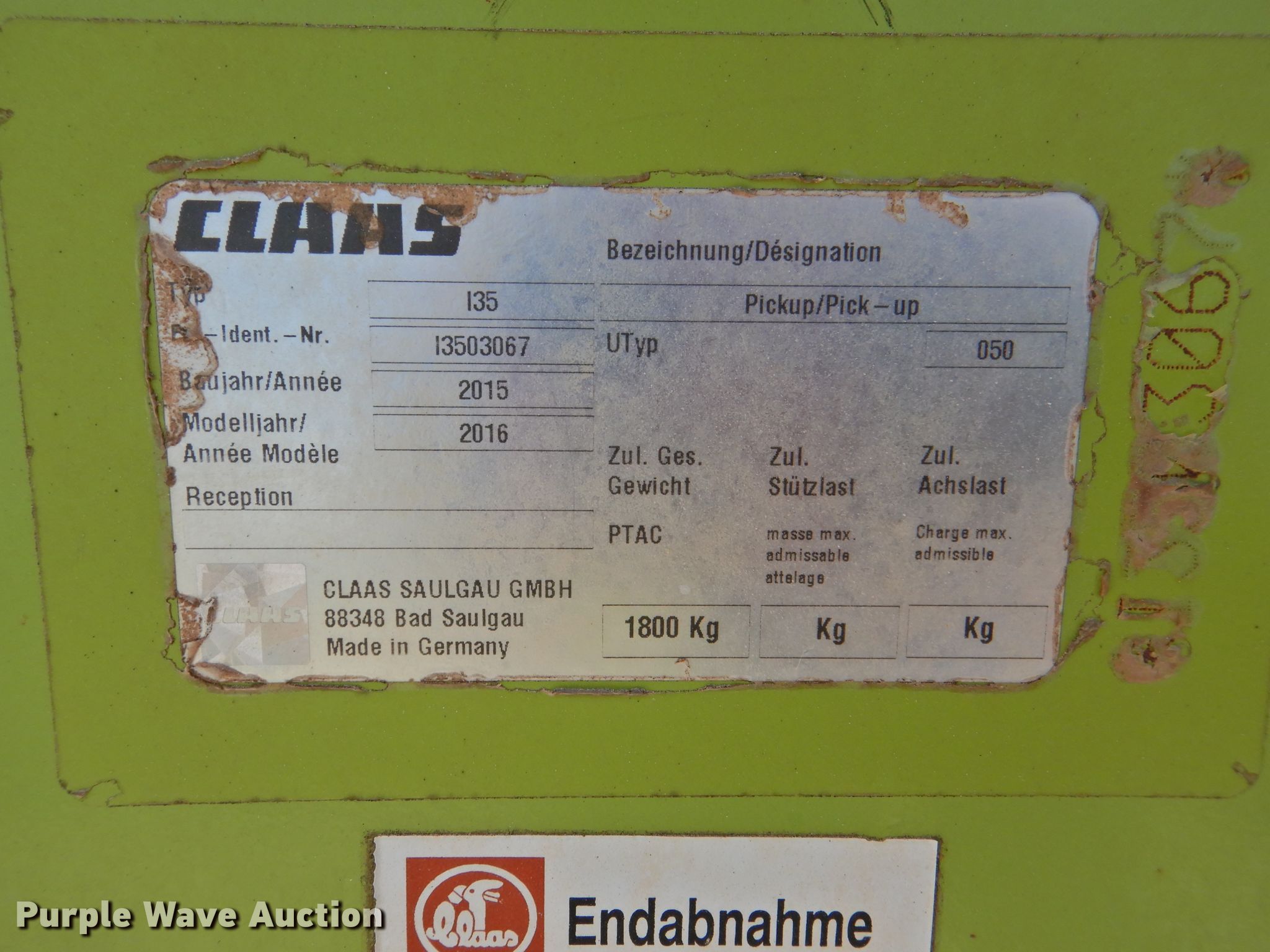Purple Wave is selling a used Forage Head or Silage Handling in Texas. This item is a 2016 Claas 380 pickup head with the following: Serial: I3503067