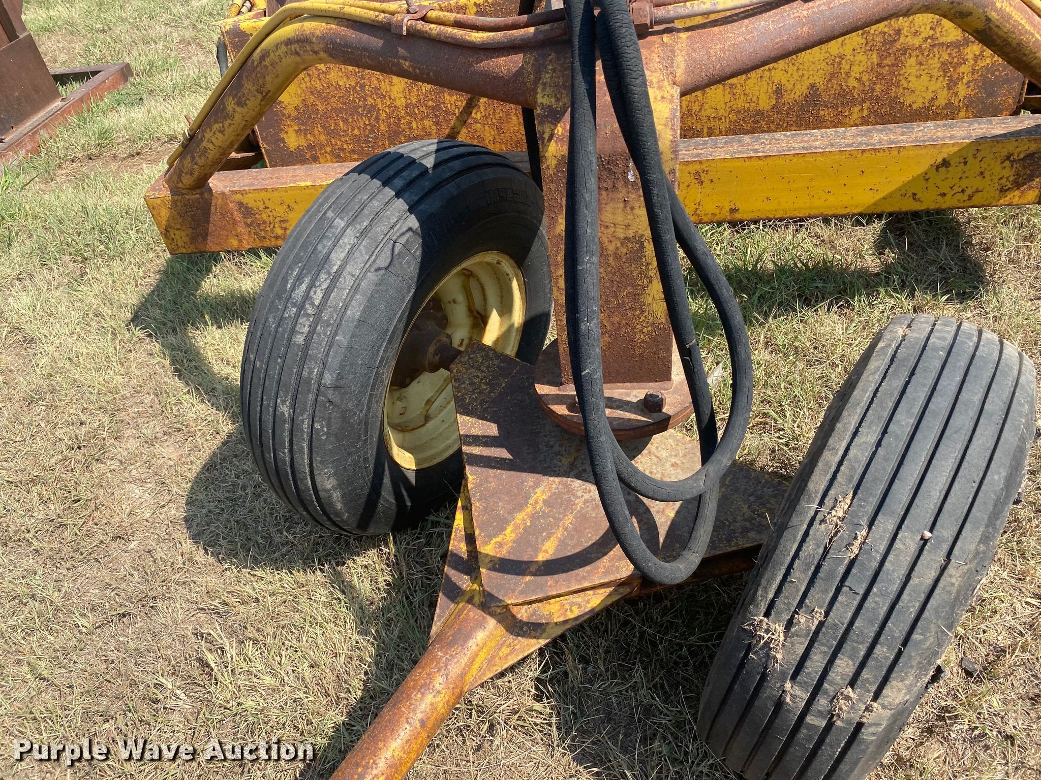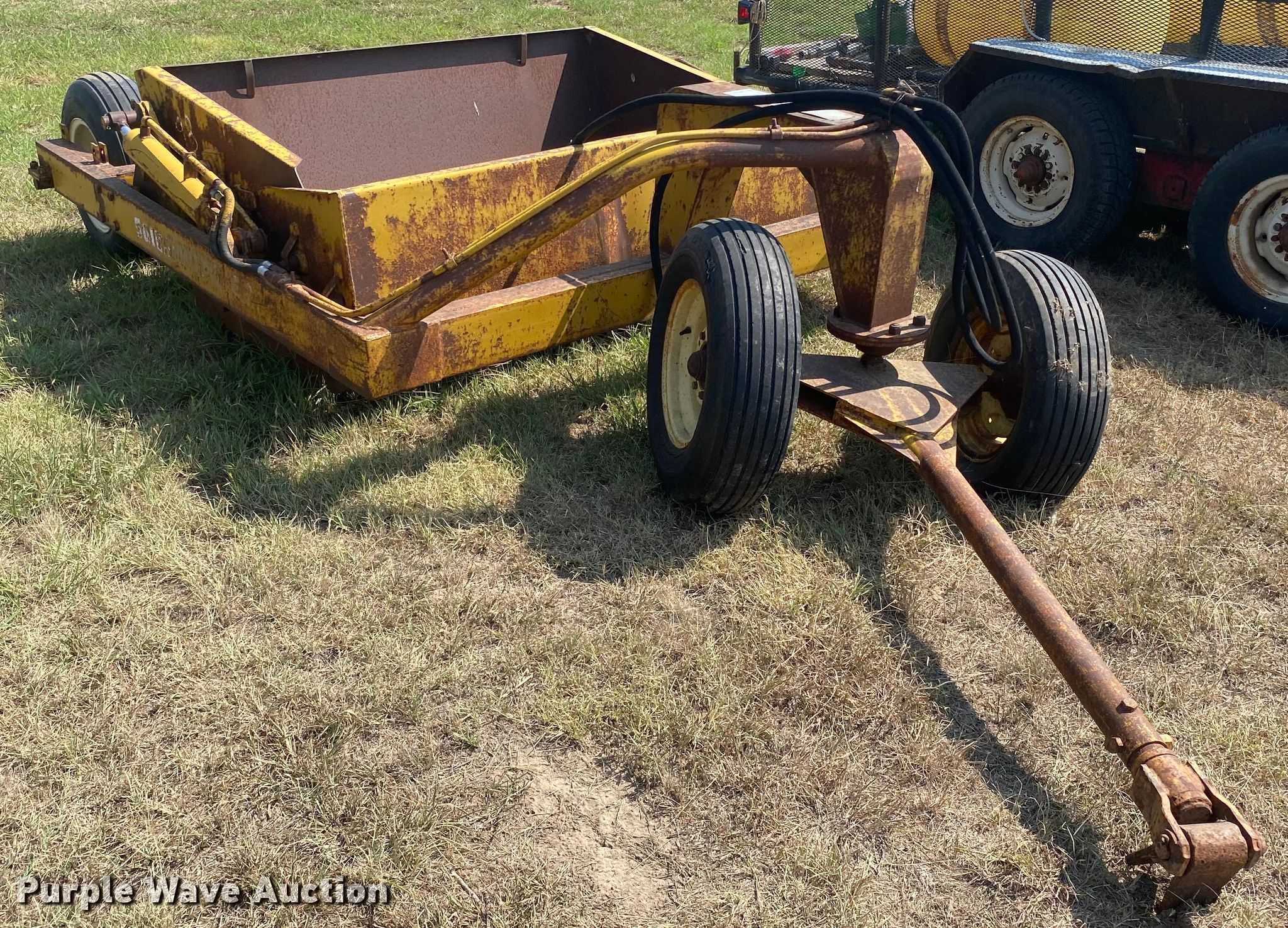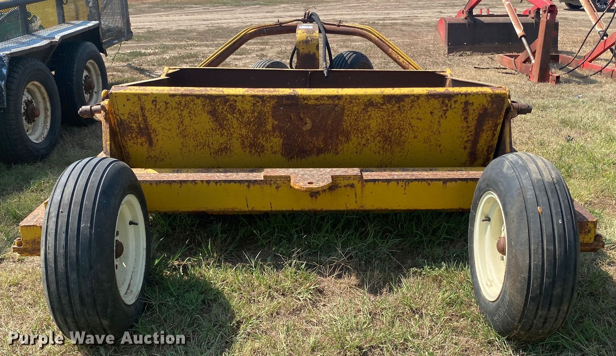 Soil Mover 30-RF scraper. Serial: DG-7197. Operational Width: 6', Hydraulic lift. Tires Rear: 9.5L-15. 1587 Cottonwood. Sublette, KS 67877