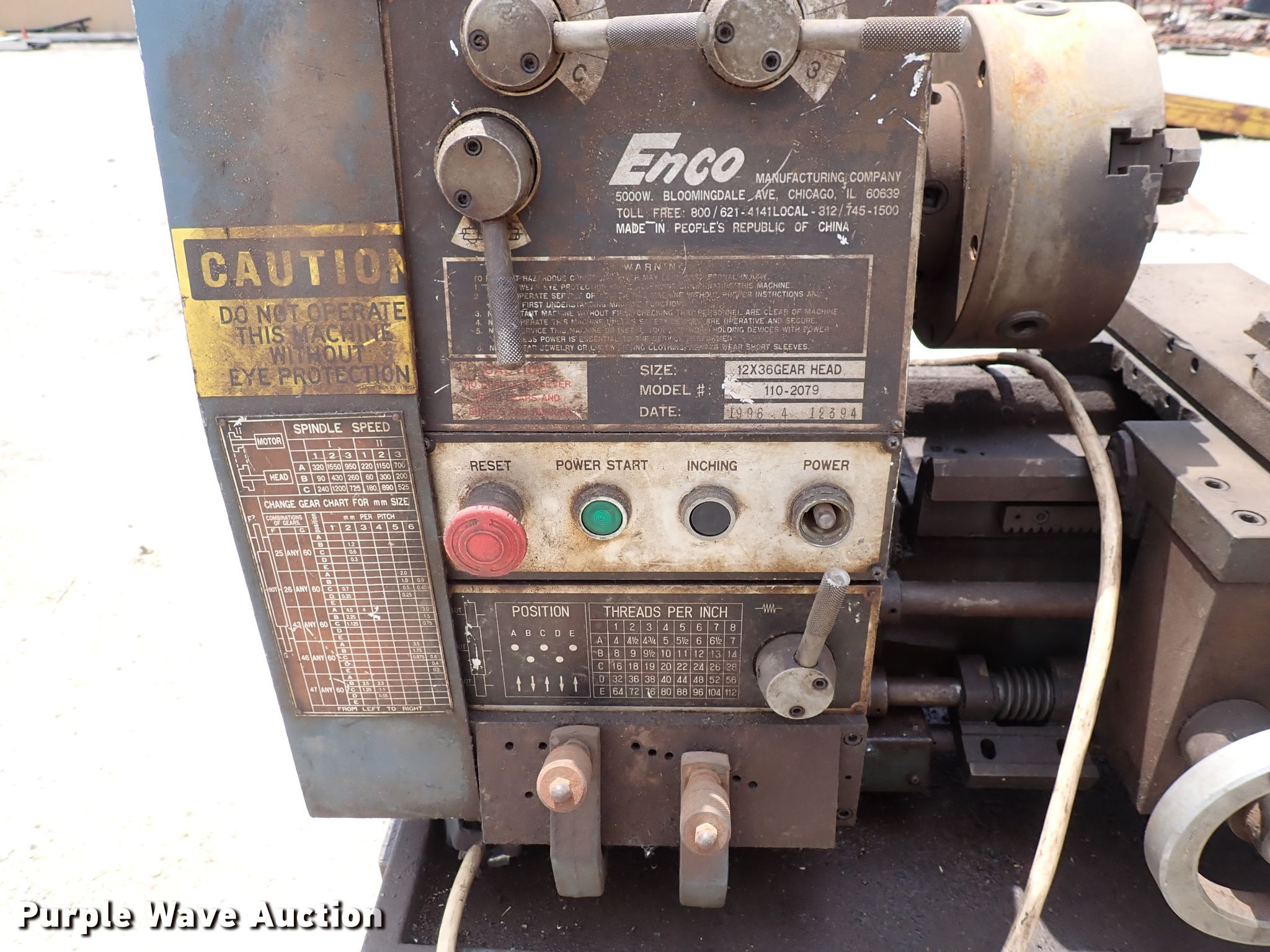 Purple Wave is selling a used Machine Shop Tools and Equip. in Kansas. This item is a Enco 110-2079 lathe with the following: 110/220V, Single phase