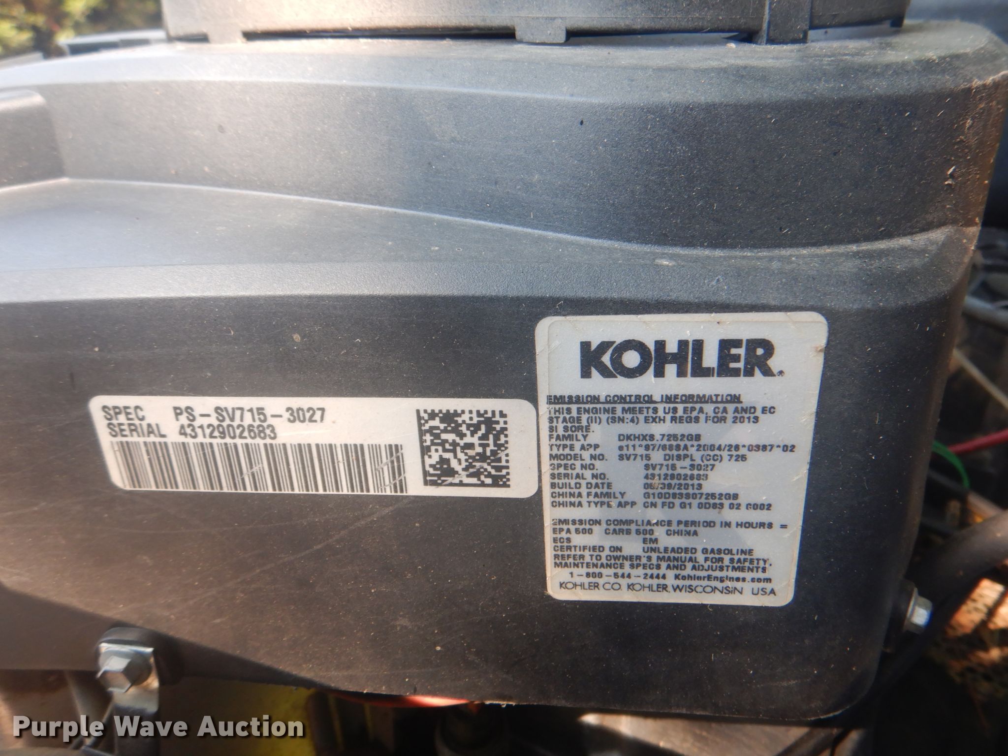 Cub Cadet Commercial M48S ZTR lawn mower. Unknown hours on meter, Cutting width: 48", Serial: 1L093Z80024. Engine Kohler Courage, Displacement: 725 cc, Cylinders: 2, Fuel type: Gas, HP: 22. Transmission Hydrostatic. Tires Front: 13x5.0-6, Rear: 23x9.5-12. Notes Non-operational unit. Mark Brewer. 12651 S 241st E Ave. Broken Arrow, OK 74014