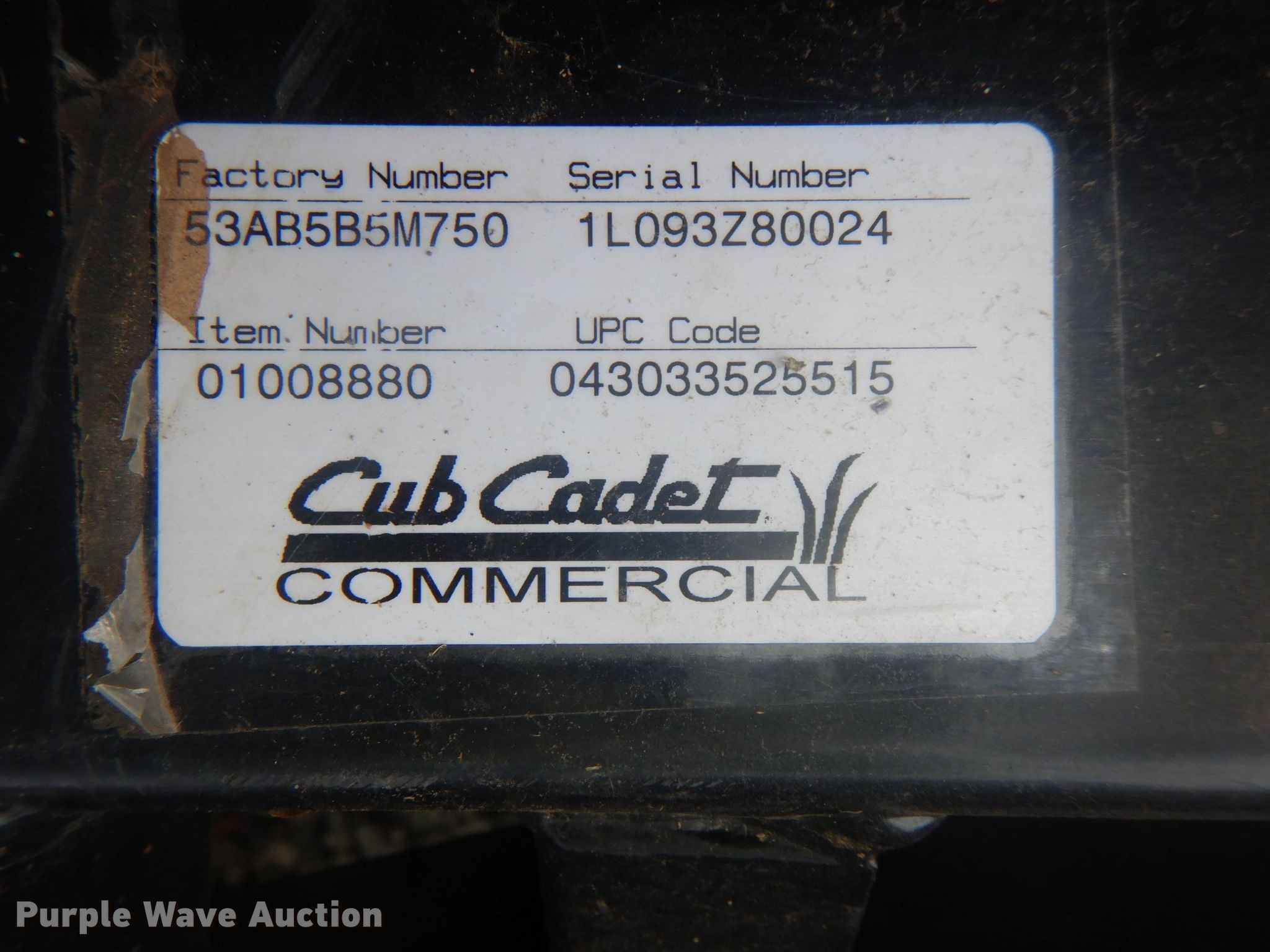 Purple Wave is selling a used Lawn Mower in Oklahoma. This item is a Cub Cadet Commercial M48S ZTR lawn mower with the following: Unknown hours on meter, Cutting width: 48", Serial: 1L093Z80024