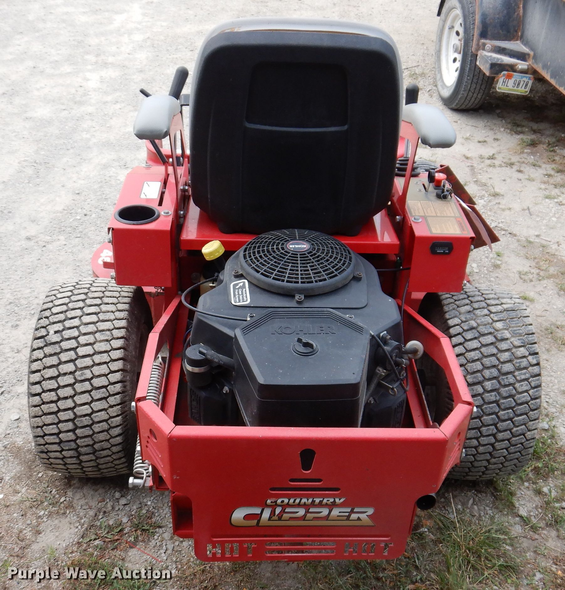Country Clipper SR355 ZTR lawn mower. 374 hours on meter, Cutting width: 48", Serial: 659BM11. Engine Kohler CV23S, Serial: 3722609581, Displacement: 674, Cylinders: 2, Fuel type: Gas. Transmission Hydrostatic. Tires Front: 13x5-6, Rear: 20x10-10NHS. Cannon Sales & Service. 1304 W South St. Mount Ayr, IA 50854