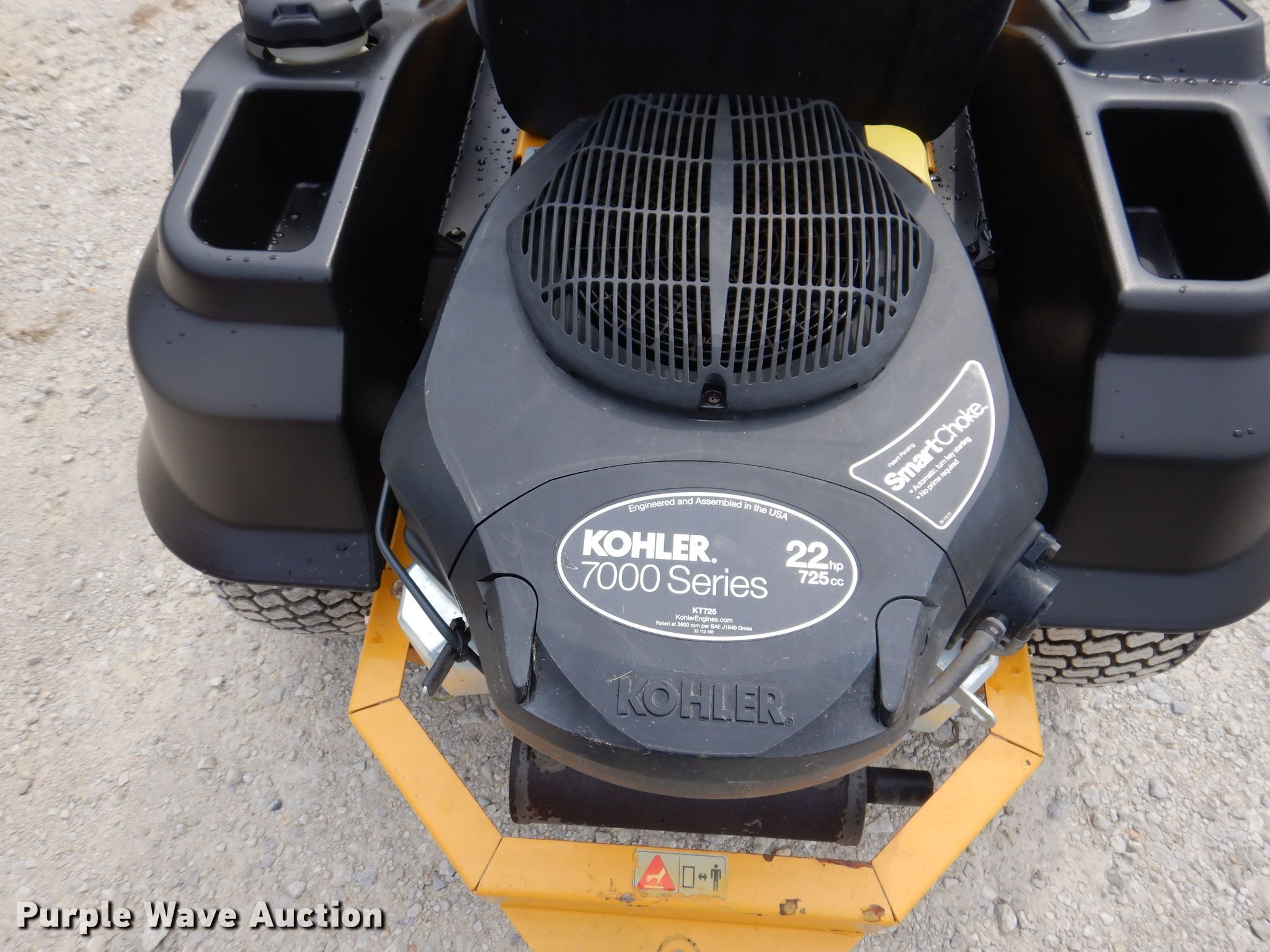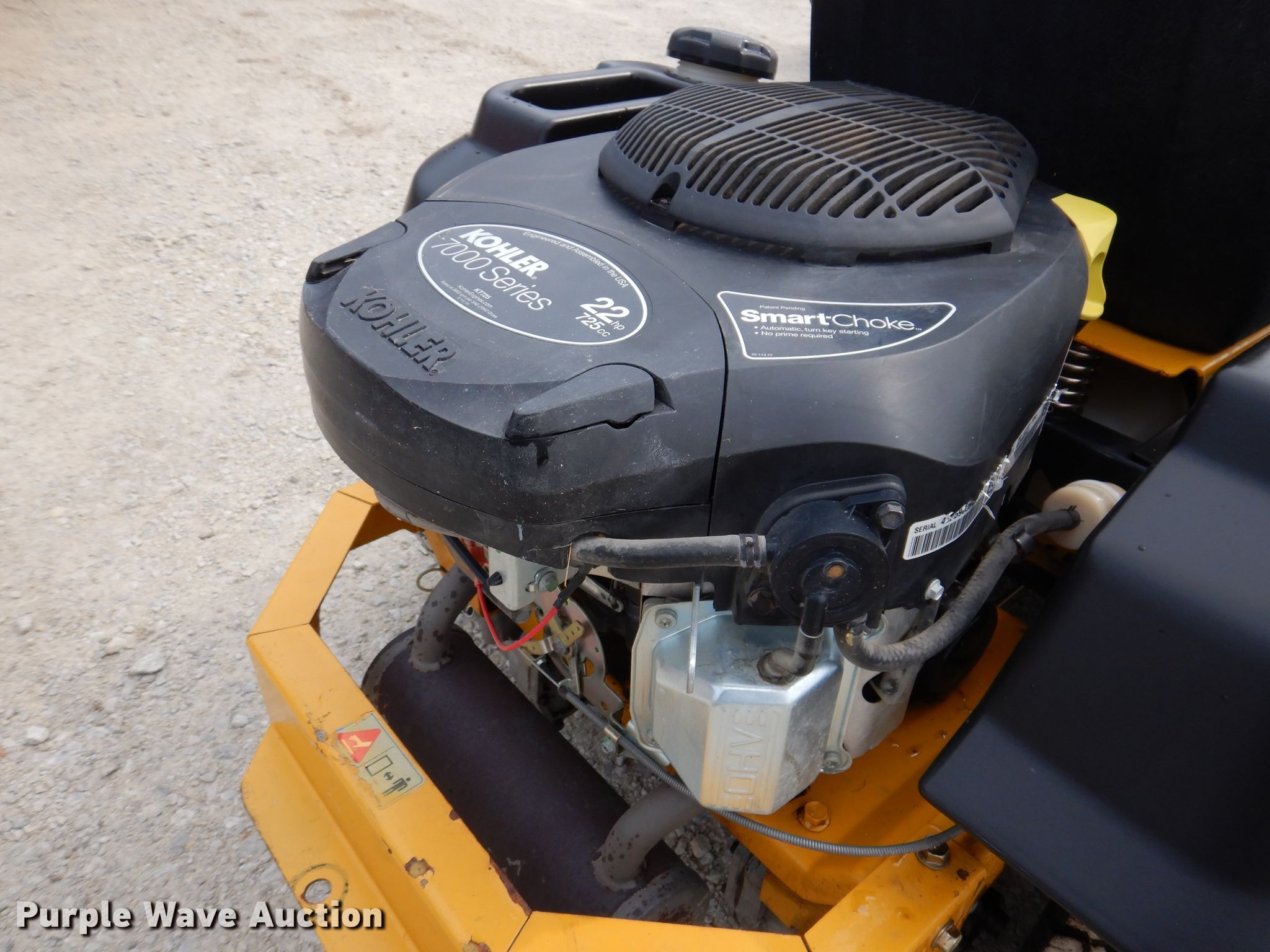 Hustler Rapter ZTR lawn mower. Unknown hours on meter, Cutting width: 42", Serial: 1509B316. Engine Kohler 7000, Serial: 4525903943, Displacement: 725, Cylinders: 2, Fuel type: Gas, HP: 22. Transmission Hydrostatic. Tires Front: 11x4-5NHS, Rear: 18x8.5-NHS. Cannon Sales & Service. 1304 W South St. Mount Ayr, IA 50854