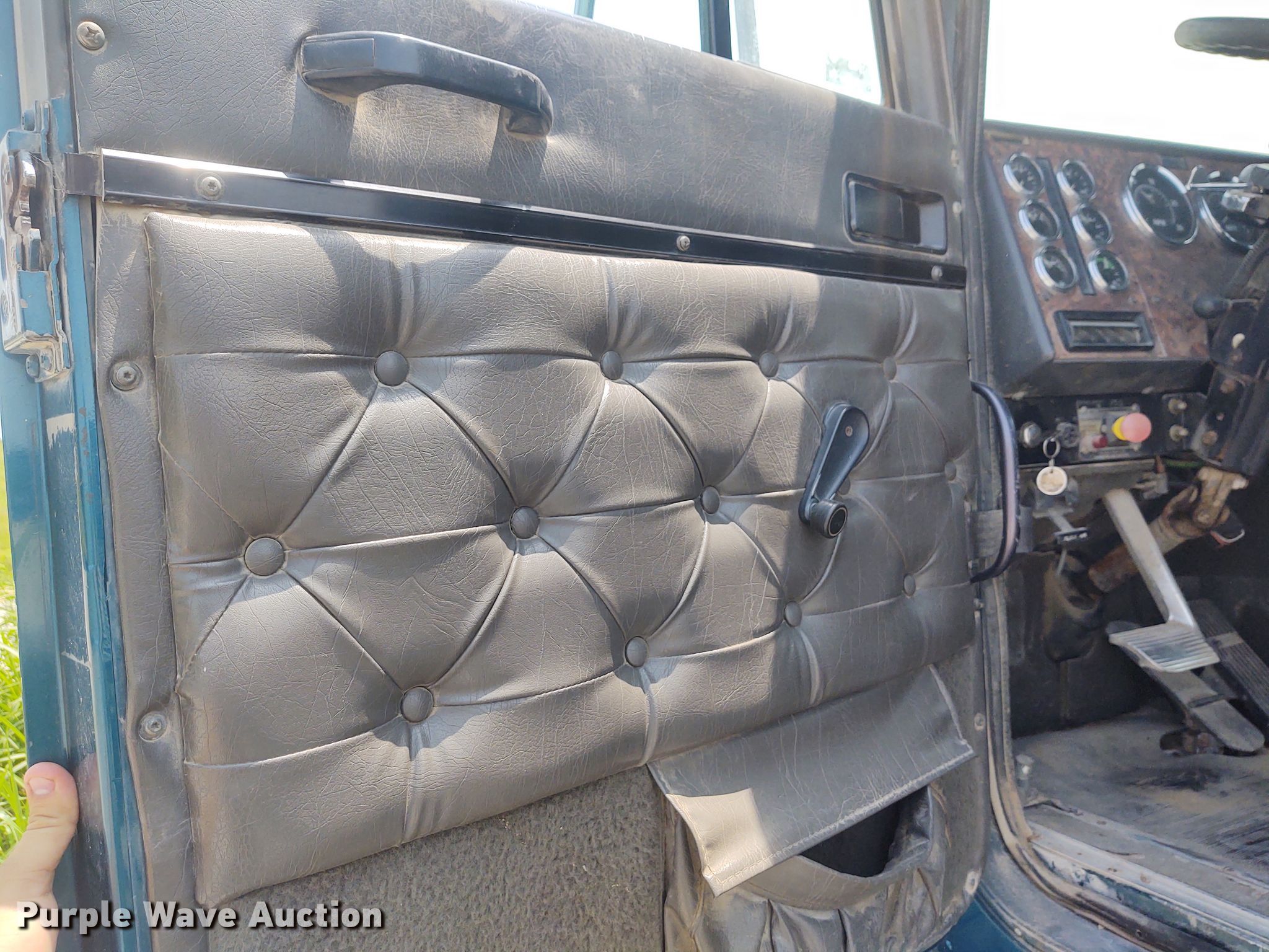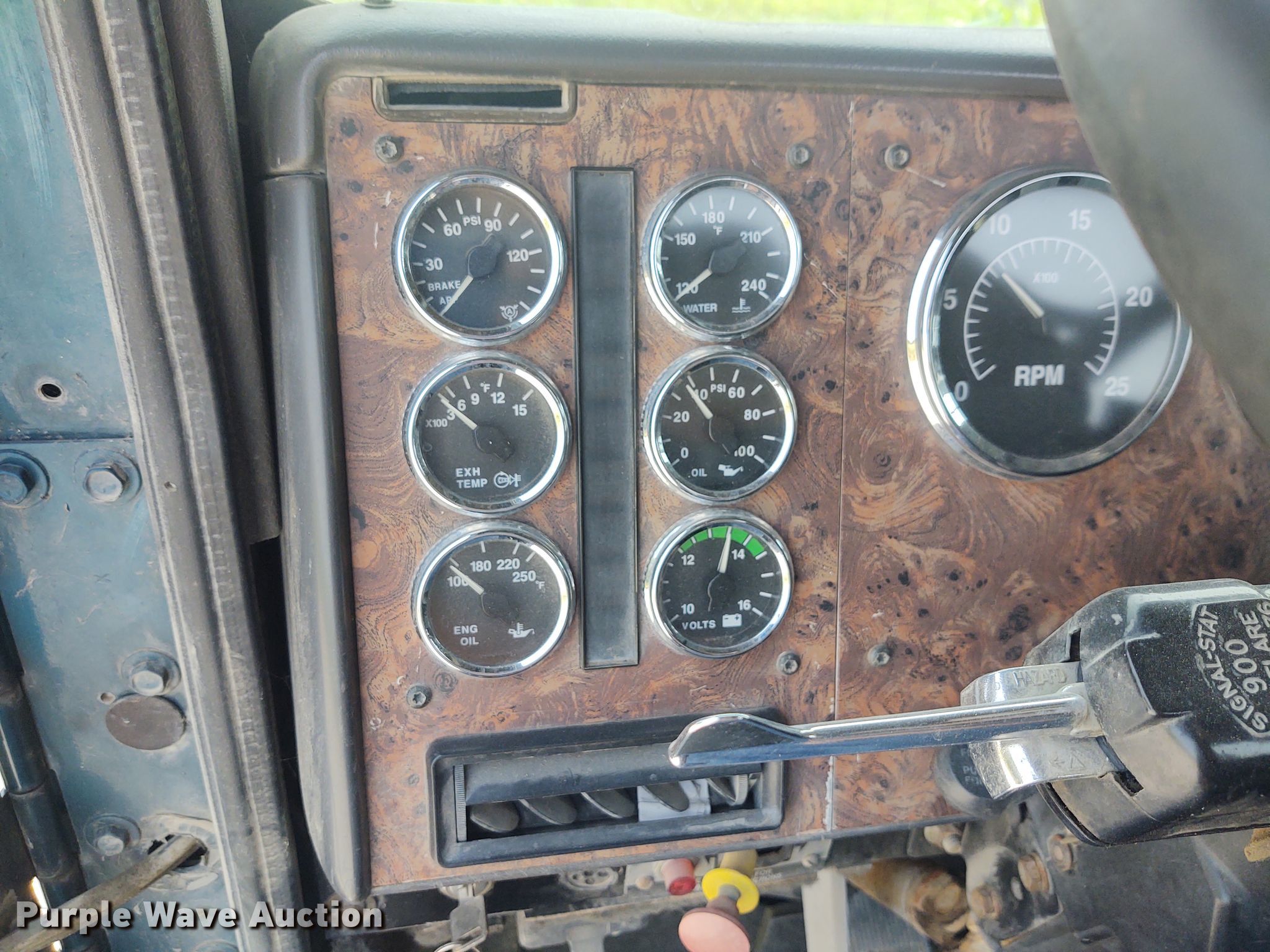 1999 International 9200 Eagle semi truck. 245,298 miles on odometer. Engine Cummins N14, Displacement: 14.0L, Cylinders: 6, Fuel type: Diesel. Transmission Manual, Speed: 13. Chassis Axles: Tandem, Suspension: Air, Brakes: Air. Interior AC, Heat. Operational Fifth wheel type: Air operated, Sliding. Tires Front: 295/75R22.5, Rear: 275/80R22.5. Notes Possible engine issues, engine blow-by. Kansas title. 2HSFMAER0XC069986. Lawrence Crushed Stone, LLC. Winfield, KS 67156