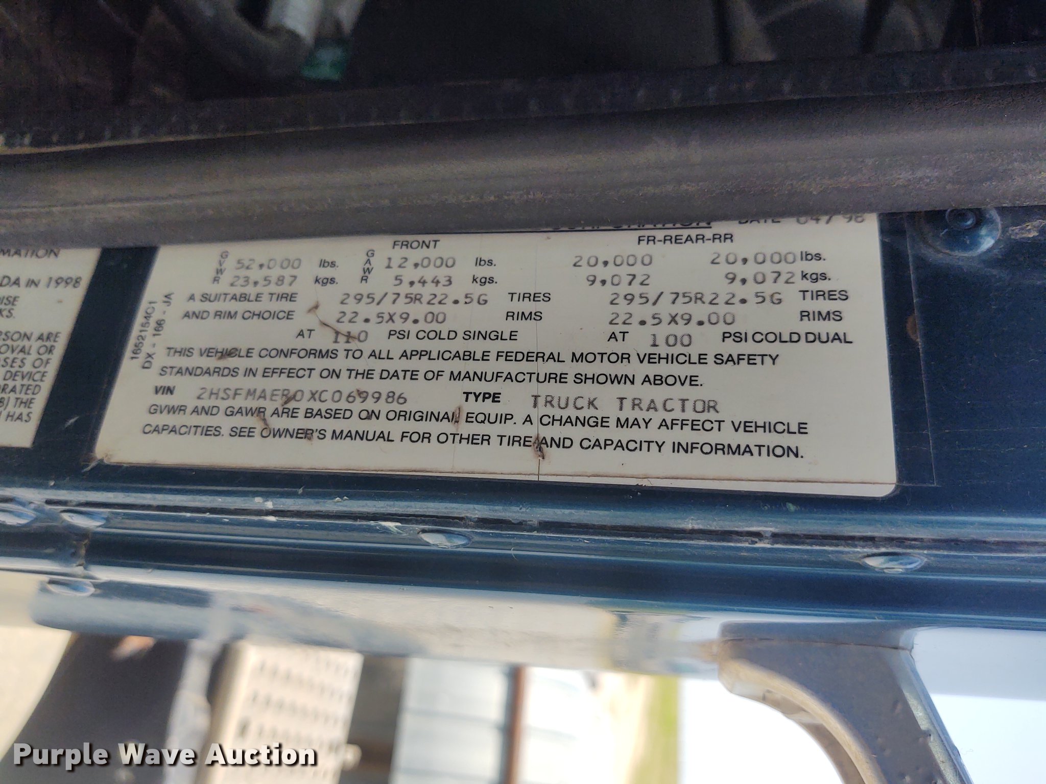 Purple Wave is selling a used Truck Tractor in Kansas. This item is a 1999 International 9200 Eagle semi truck with the following: 245,298 miles on odometer
