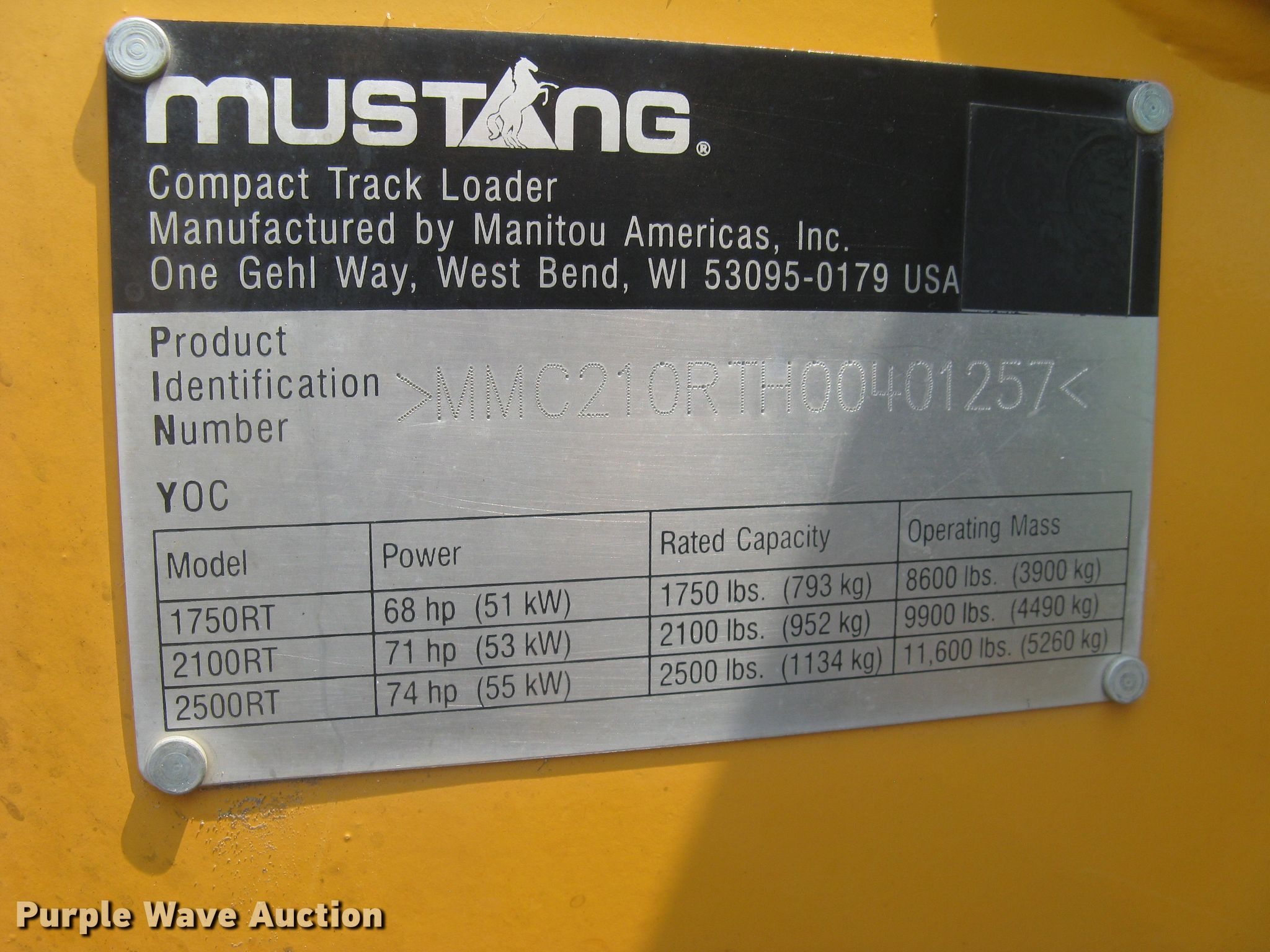 Purple Wave is selling a used Skid Steer Loader in Kansas. This item is a 2017 Mustang 2100RT NXT3 skid steer loader with the following: 853 hours on meter, Serial: MMC210RTH00401257, Unit #: 1257