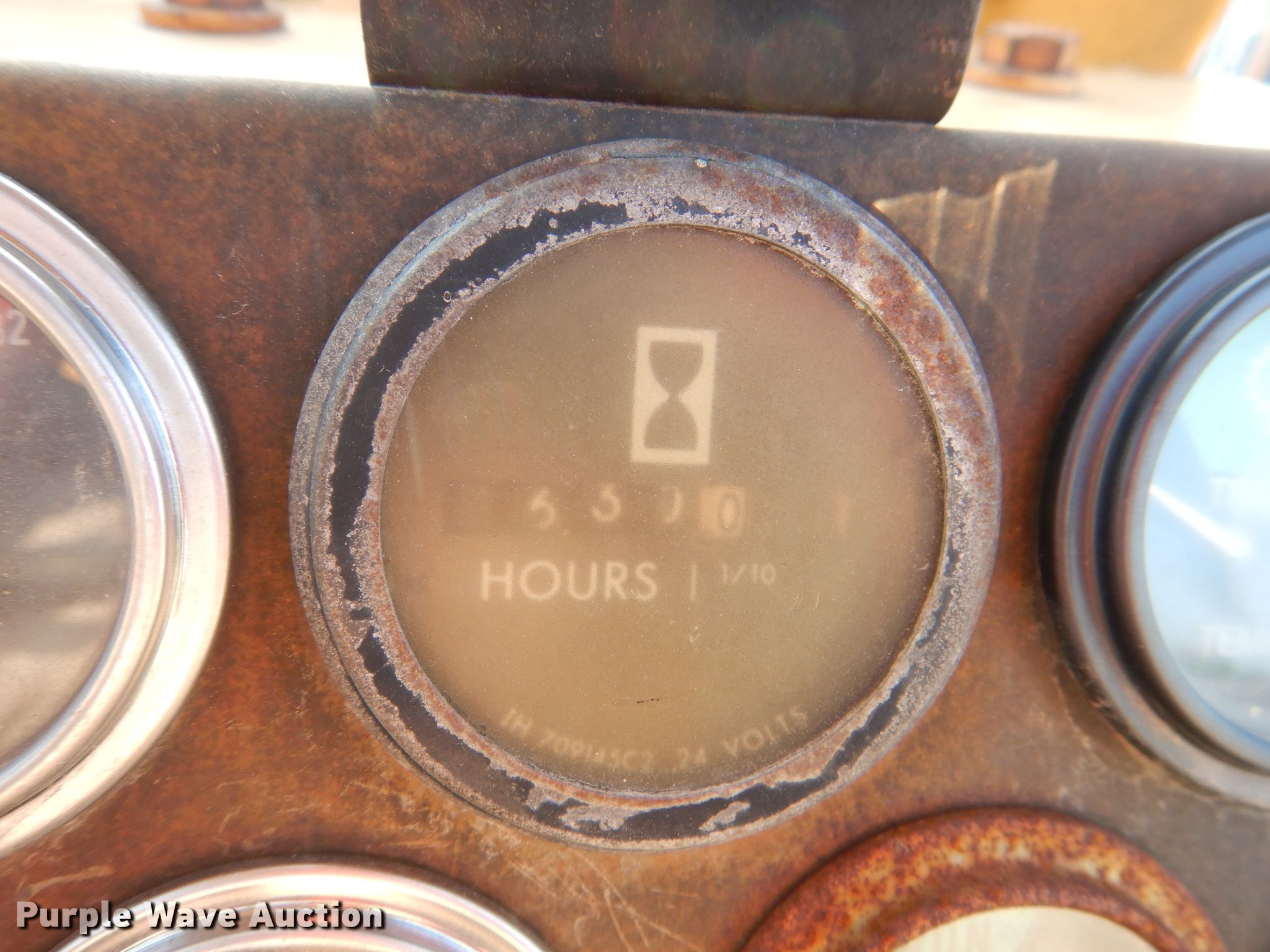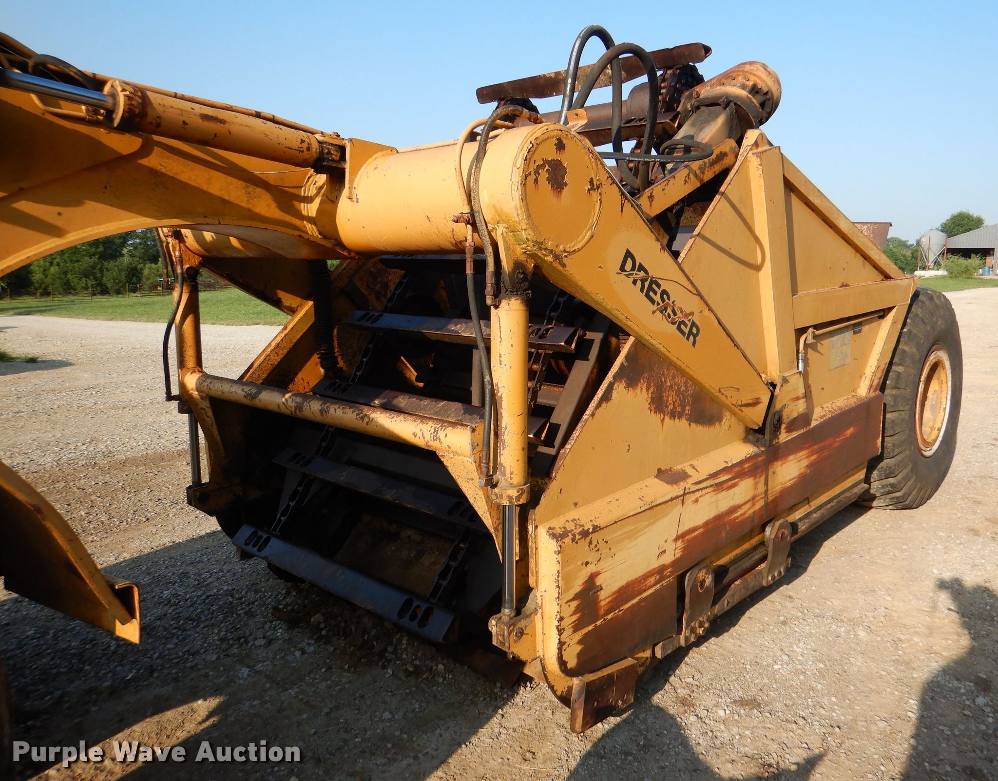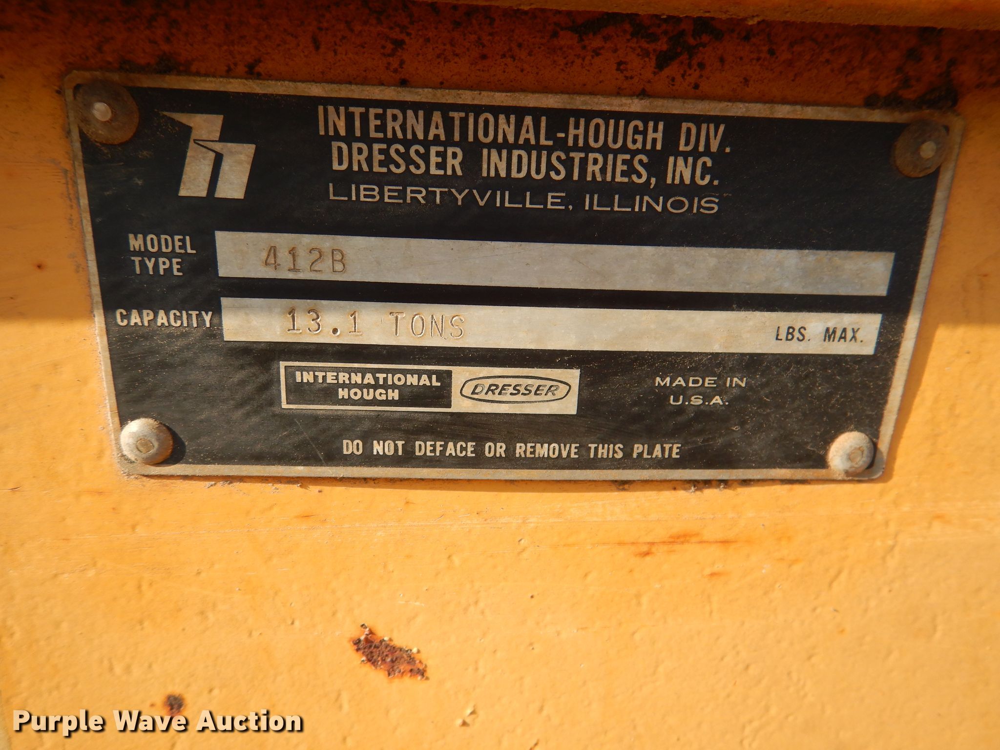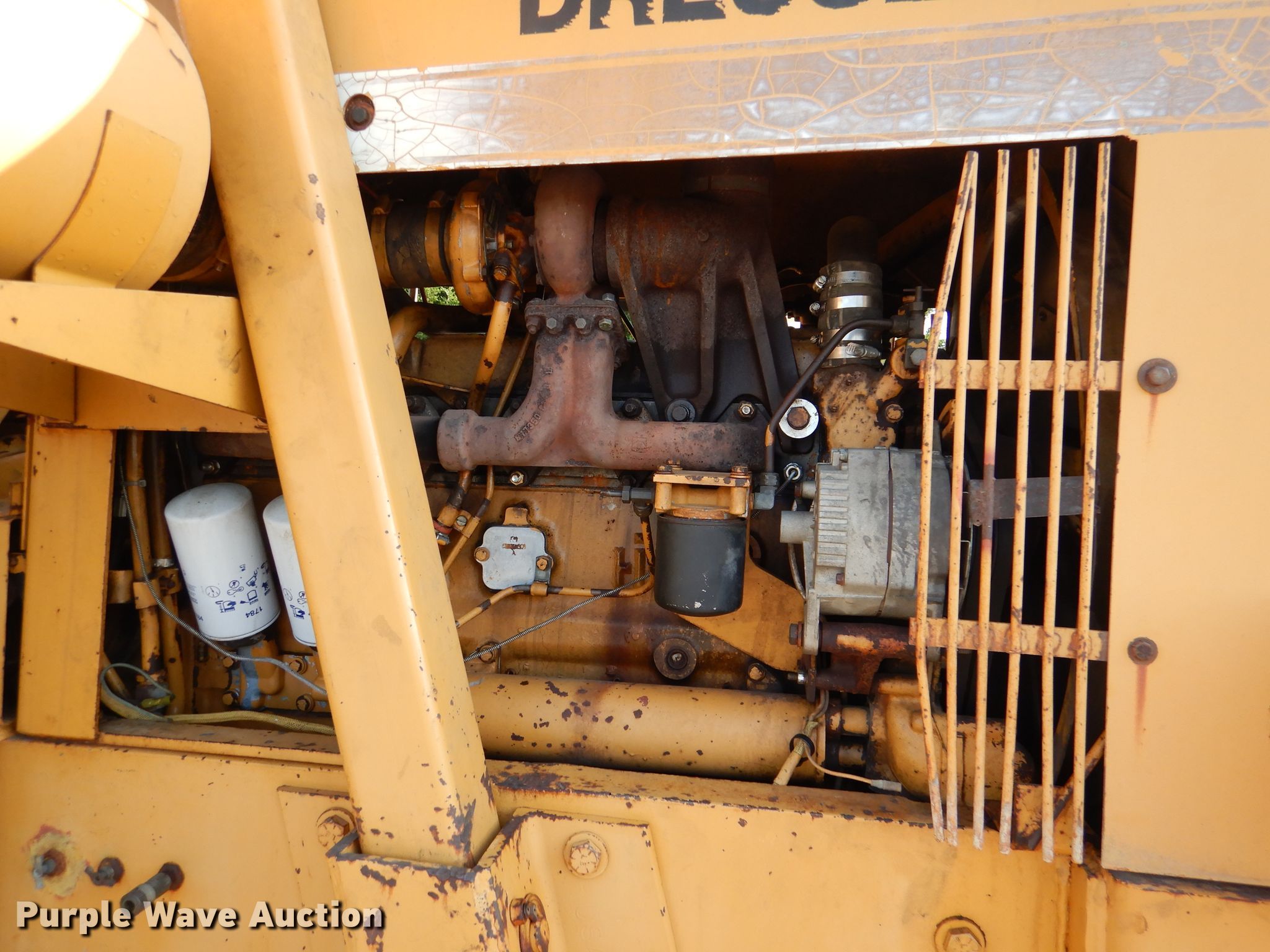 International 412B elevating scraper. 330 hours on meter, Serial: 5420114U016565. Engine International DT466, Serial: 467TH2U196548, Cylinders: 6, Fuel type: Diesel. Transmission Powershift, 4F - 1R. Operators station OROPS. Operational Bowl capacity: 13.1 cu.yd., Reversible cutting edge, Elevator reverse, Hydraulic lift, Scraper controls: Lever controls No. of controls: 3. Tires Size: 23.5-25. Notes Non-operational tachometer, Non-operational brakes , Missing brake components. Price Excavating. Baldwin City, KS 66006