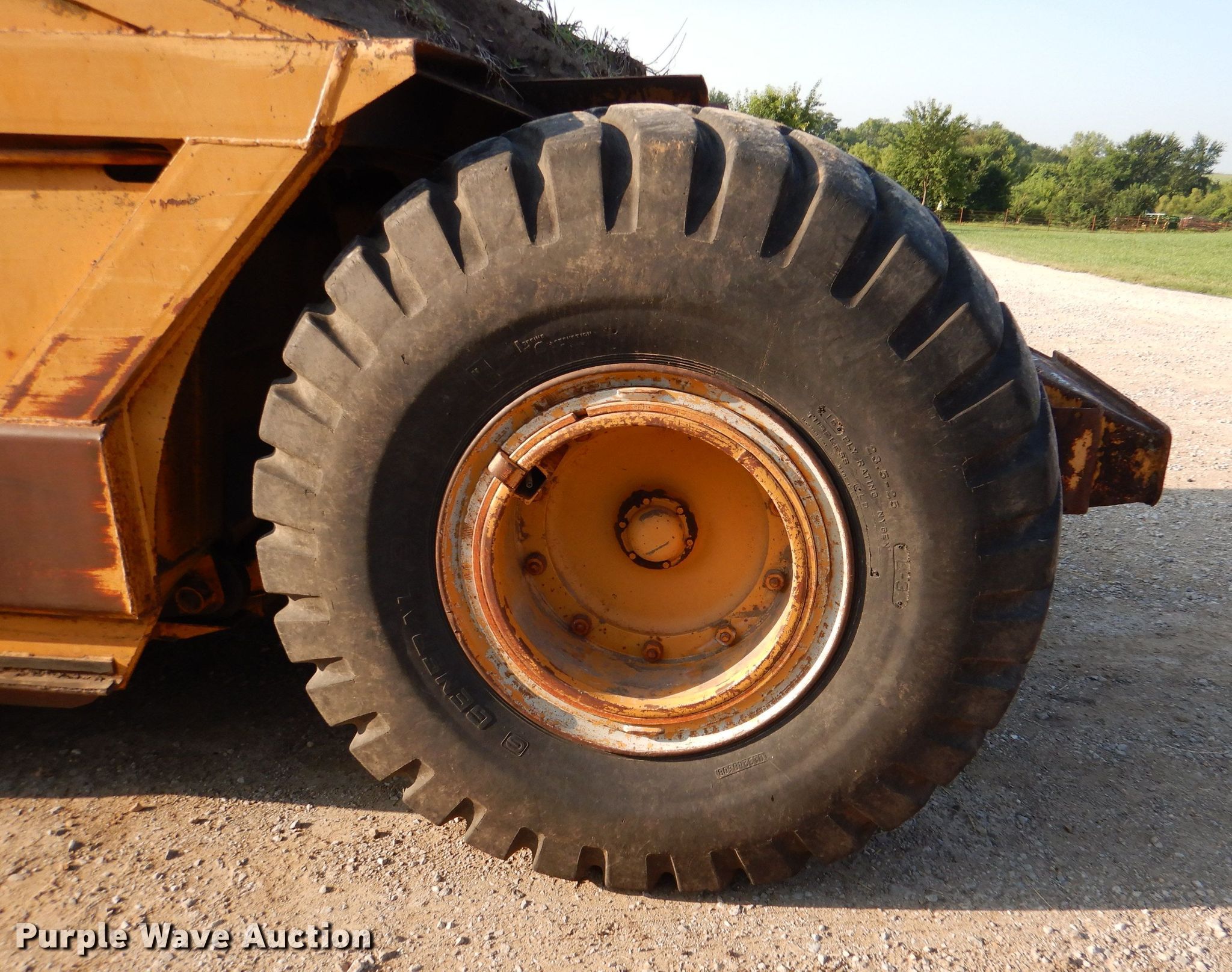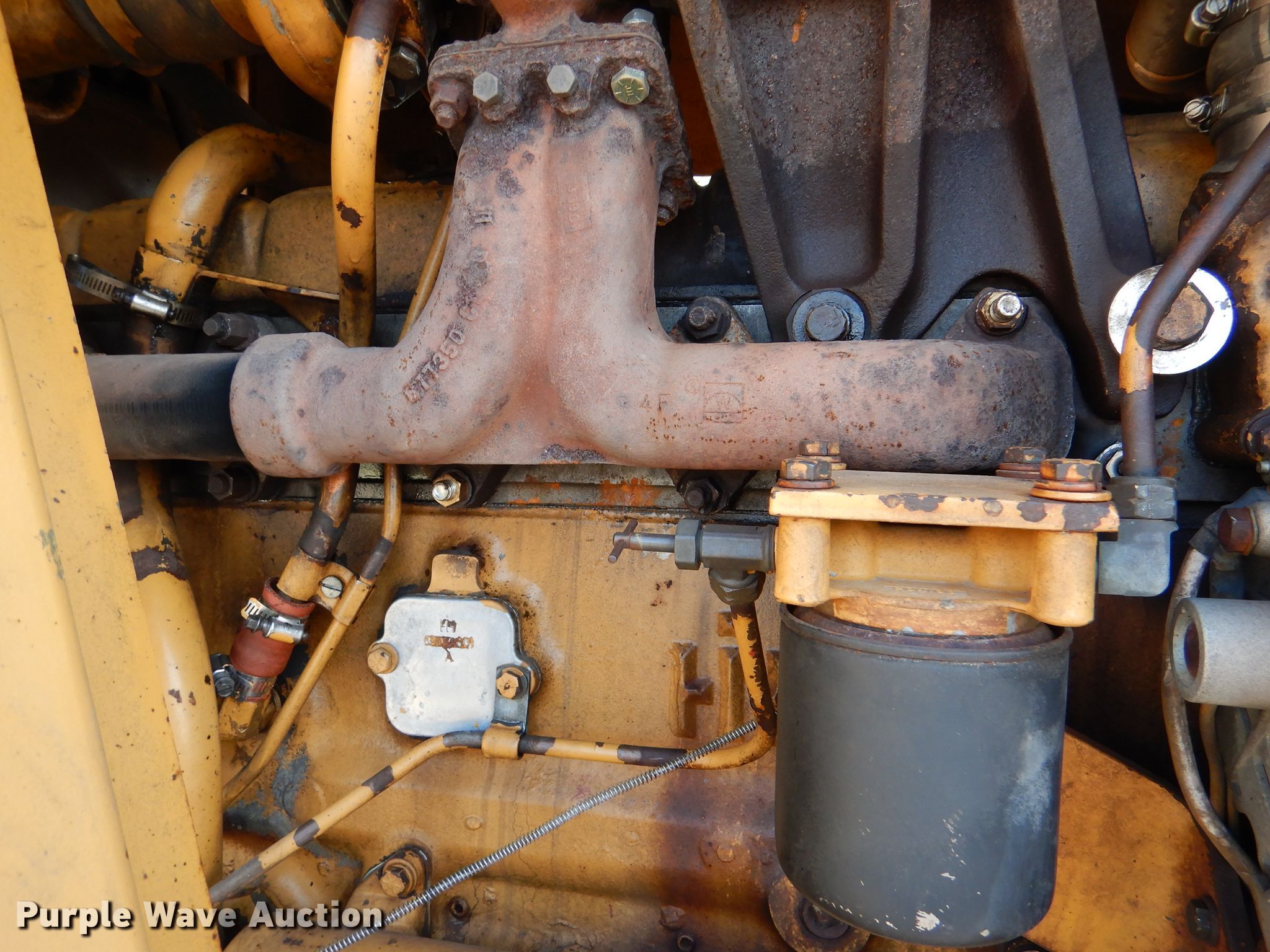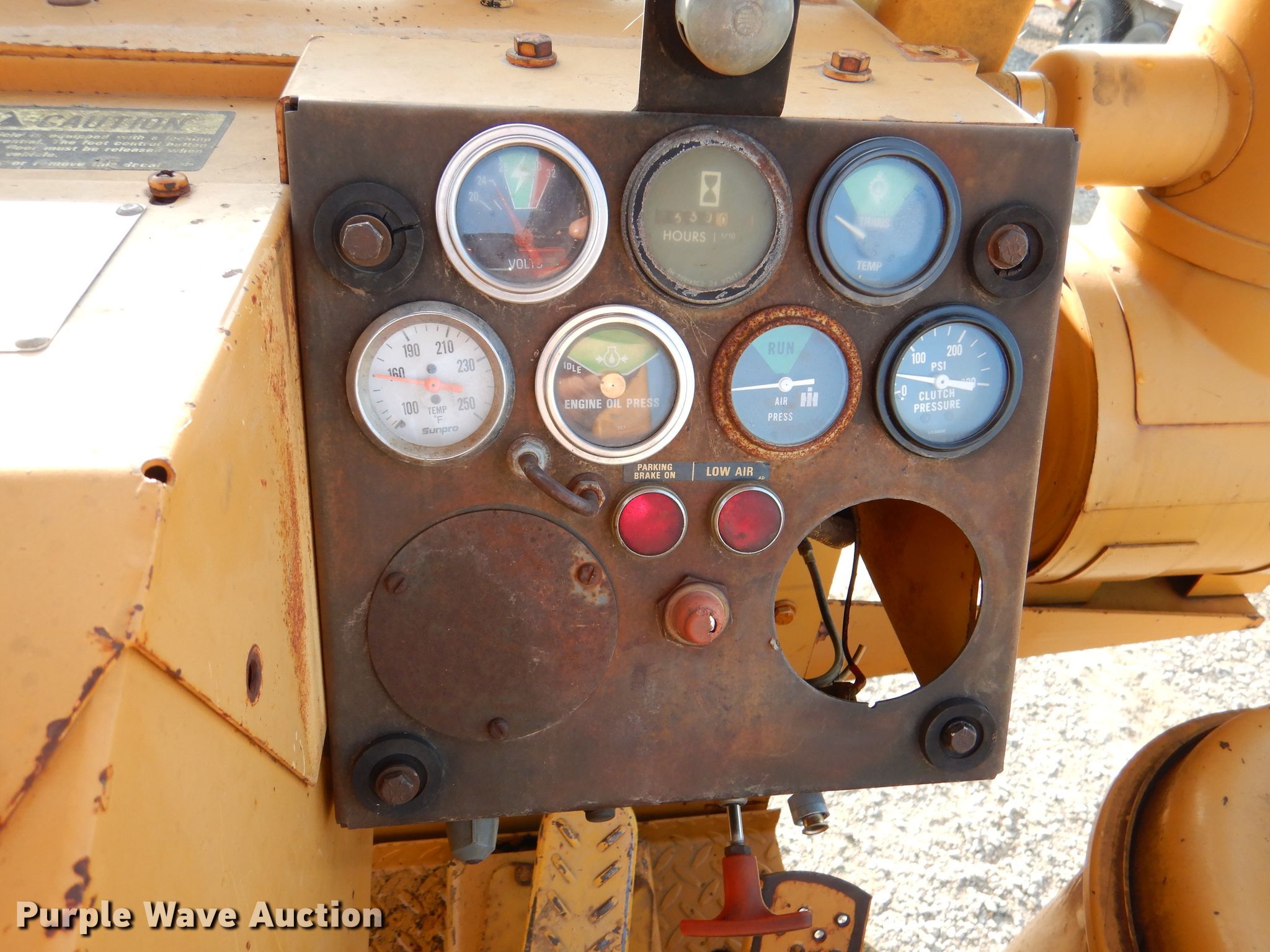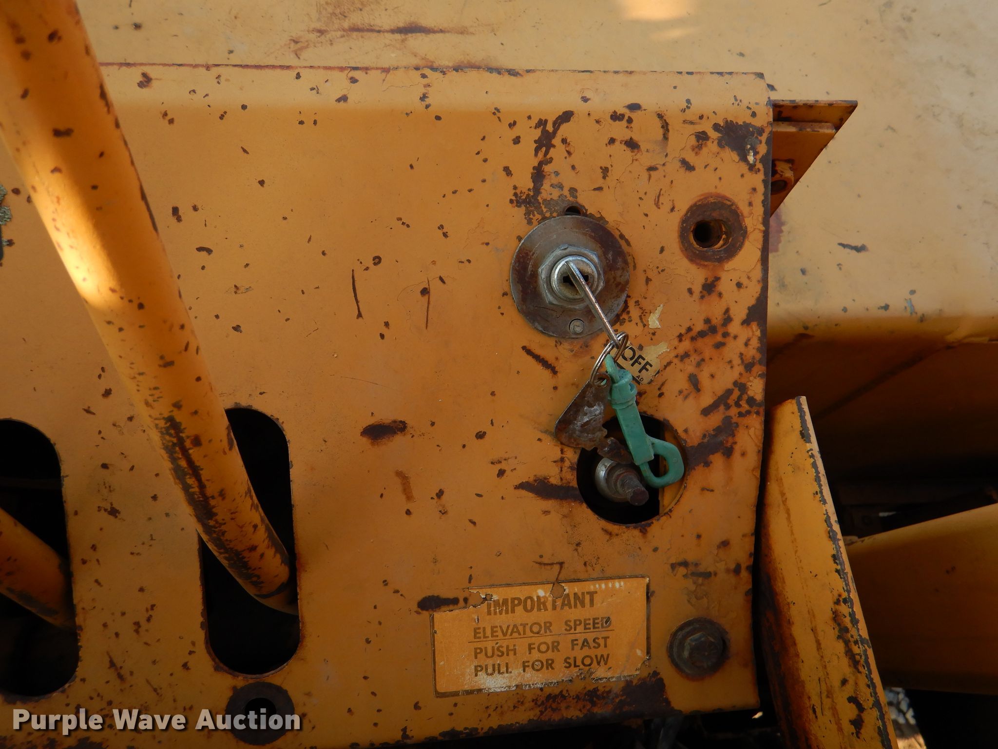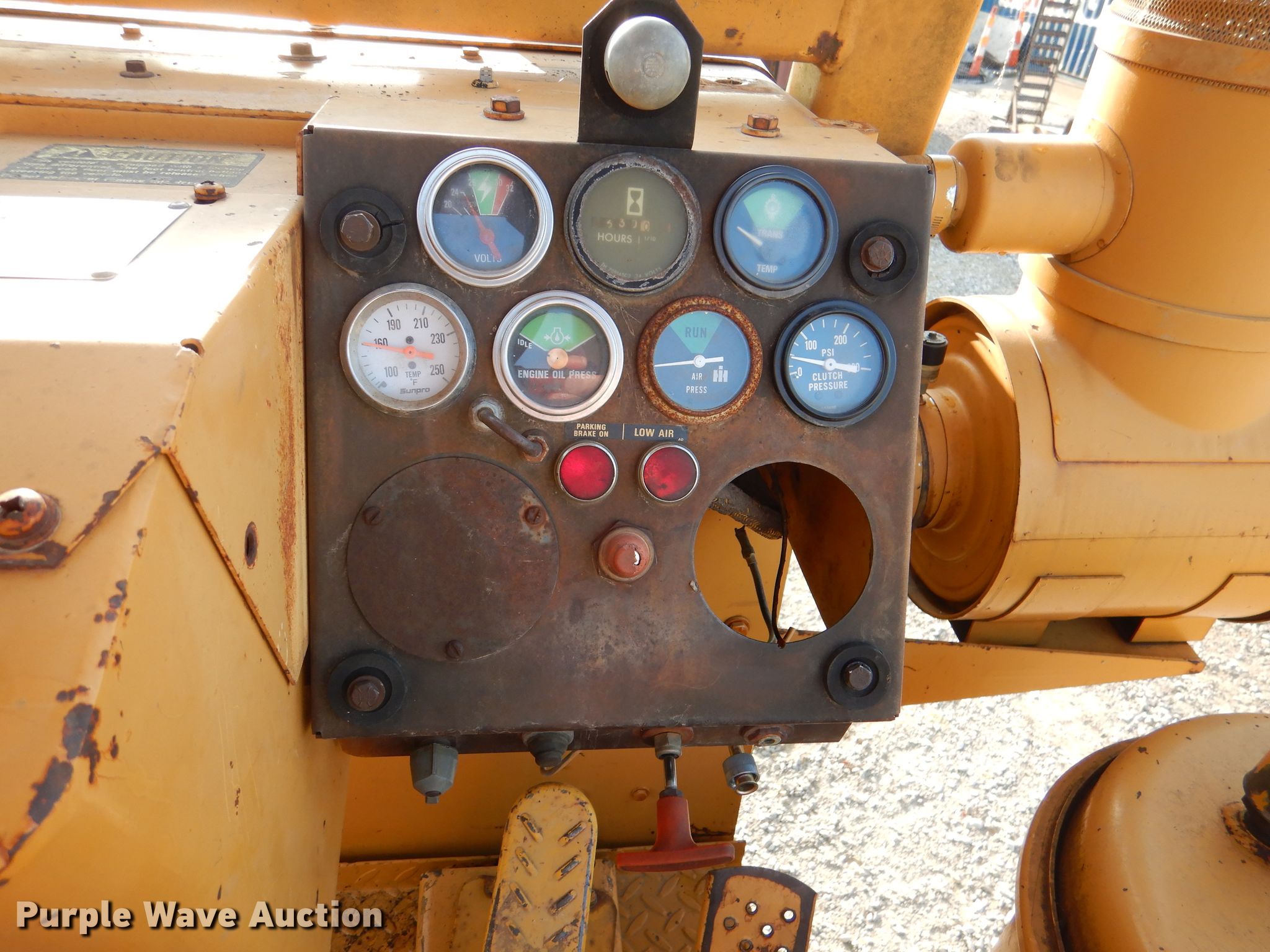 International 412B elevating scraper. 330 hours on meter, Serial: 5420114U016565. Engine International DT466, Serial: 467TH2U196548, Cylinders: 6, Fuel type: Diesel. Transmission Powershift, 4F - 1R. Operators station OROPS. Operational Bowl capacity: 13.1 cu.yd., Reversible cutting edge, Elevator reverse, Hydraulic lift, Scraper controls: Lever controls No. of controls: 3. Tires Size: 23.5-25. Notes Non-operational tachometer, Non-operational brakes , Missing brake components. Price Excavating. Baldwin City, KS 66006