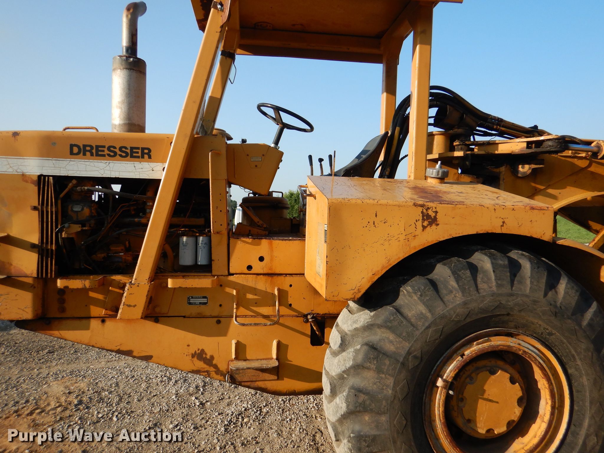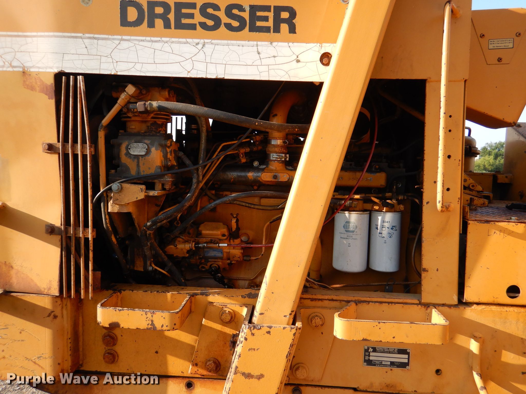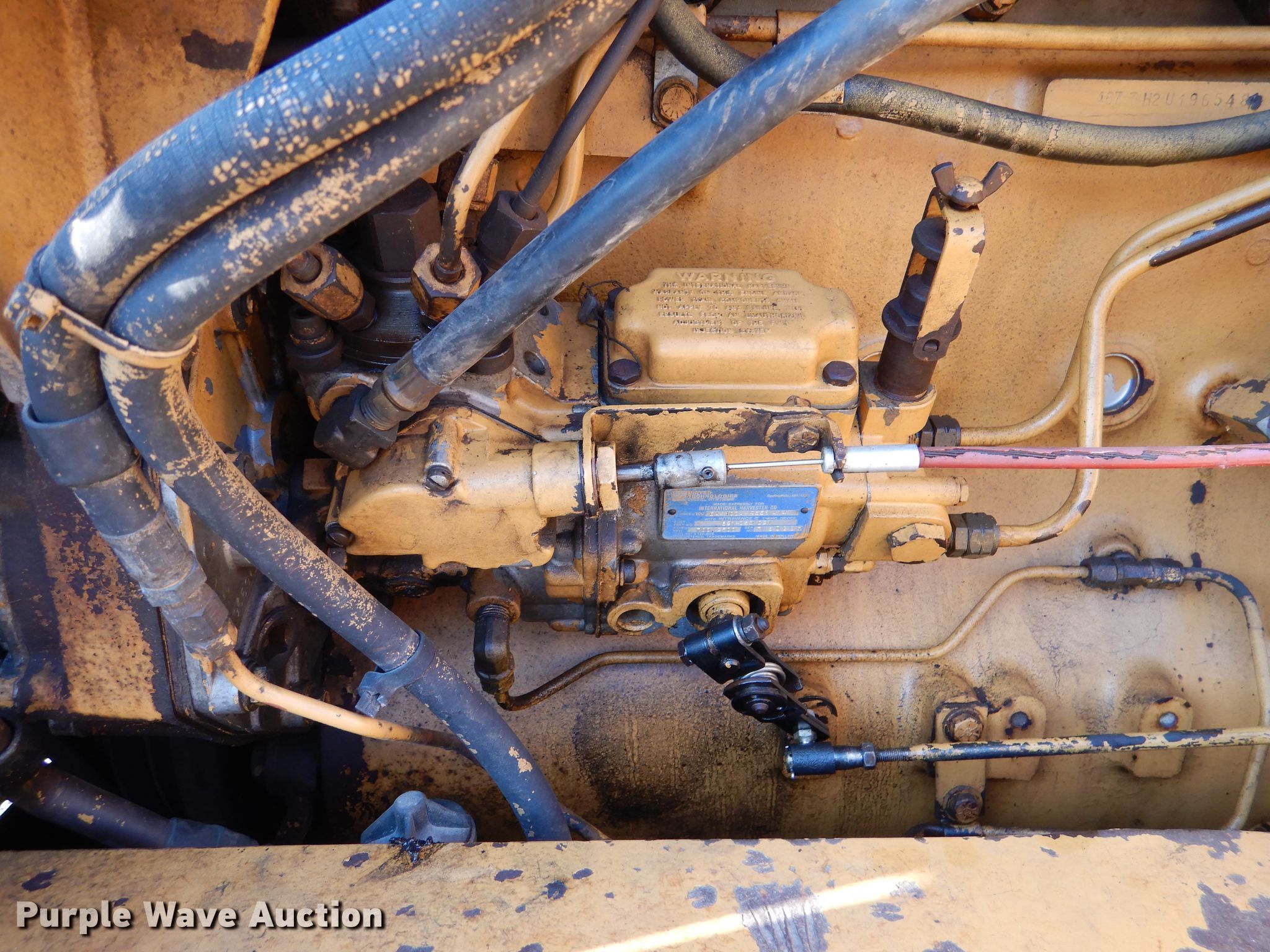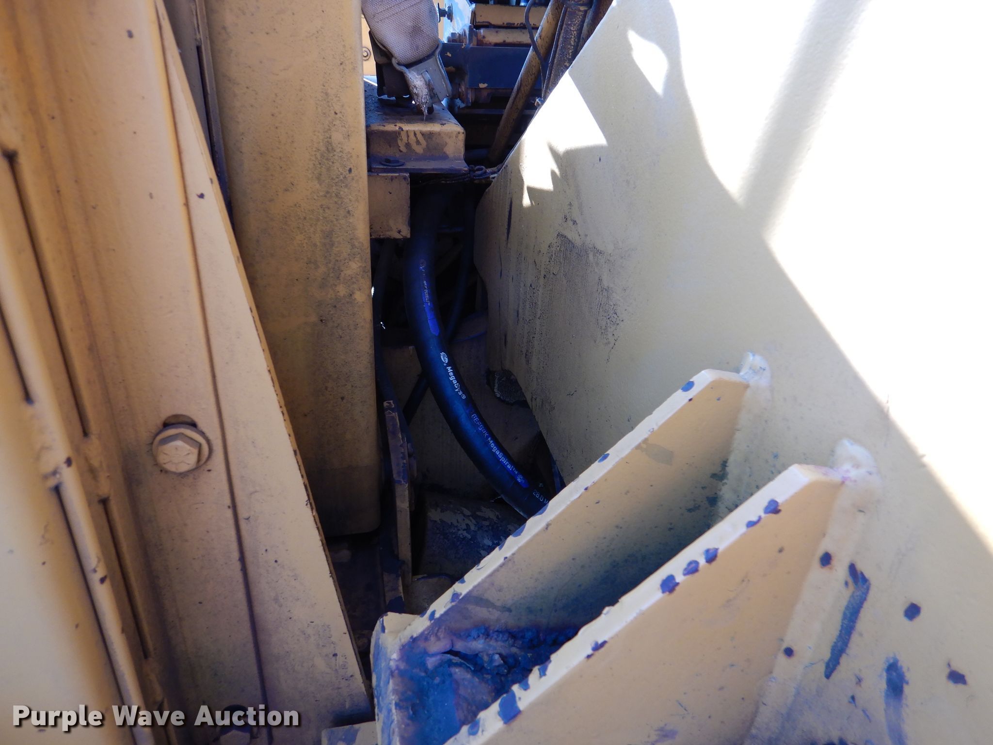 International 412B elevating scraper. 330 hours on meter, Serial: 5420114U016565. Engine International DT466, Serial: 467TH2U196548, Cylinders: 6, Fuel type: Diesel. Transmission Powershift, 4F - 1R. Operators station OROPS. Operational Bowl capacity: 13.1 cu.yd., Reversible cutting edge, Elevator reverse, Hydraulic lift, Scraper controls: Lever controls No. of controls: 3. Tires Size: 23.5-25. Notes Non-operational tachometer, Non-operational brakes , Missing brake components. Price Excavating. Baldwin City, KS 66006