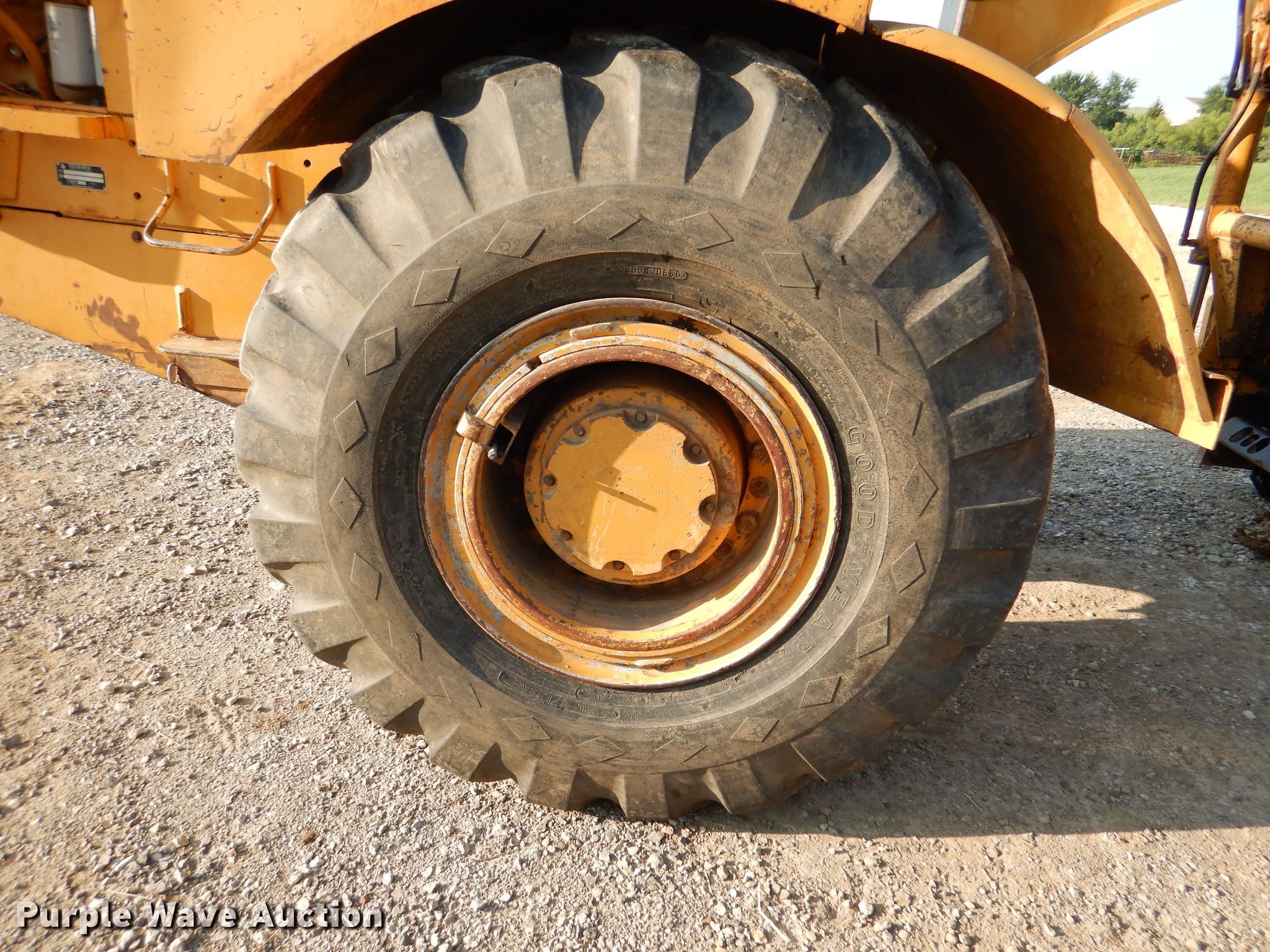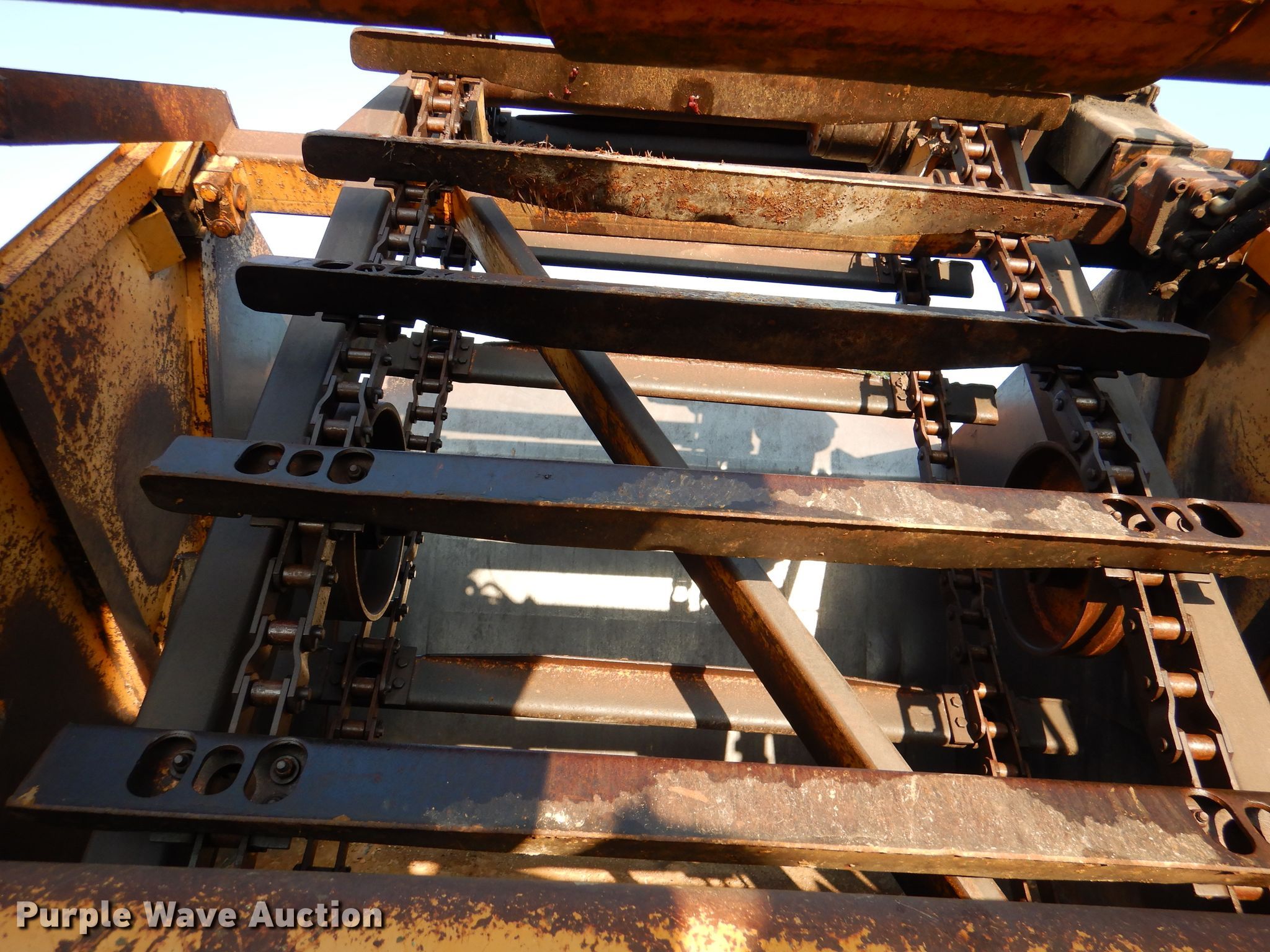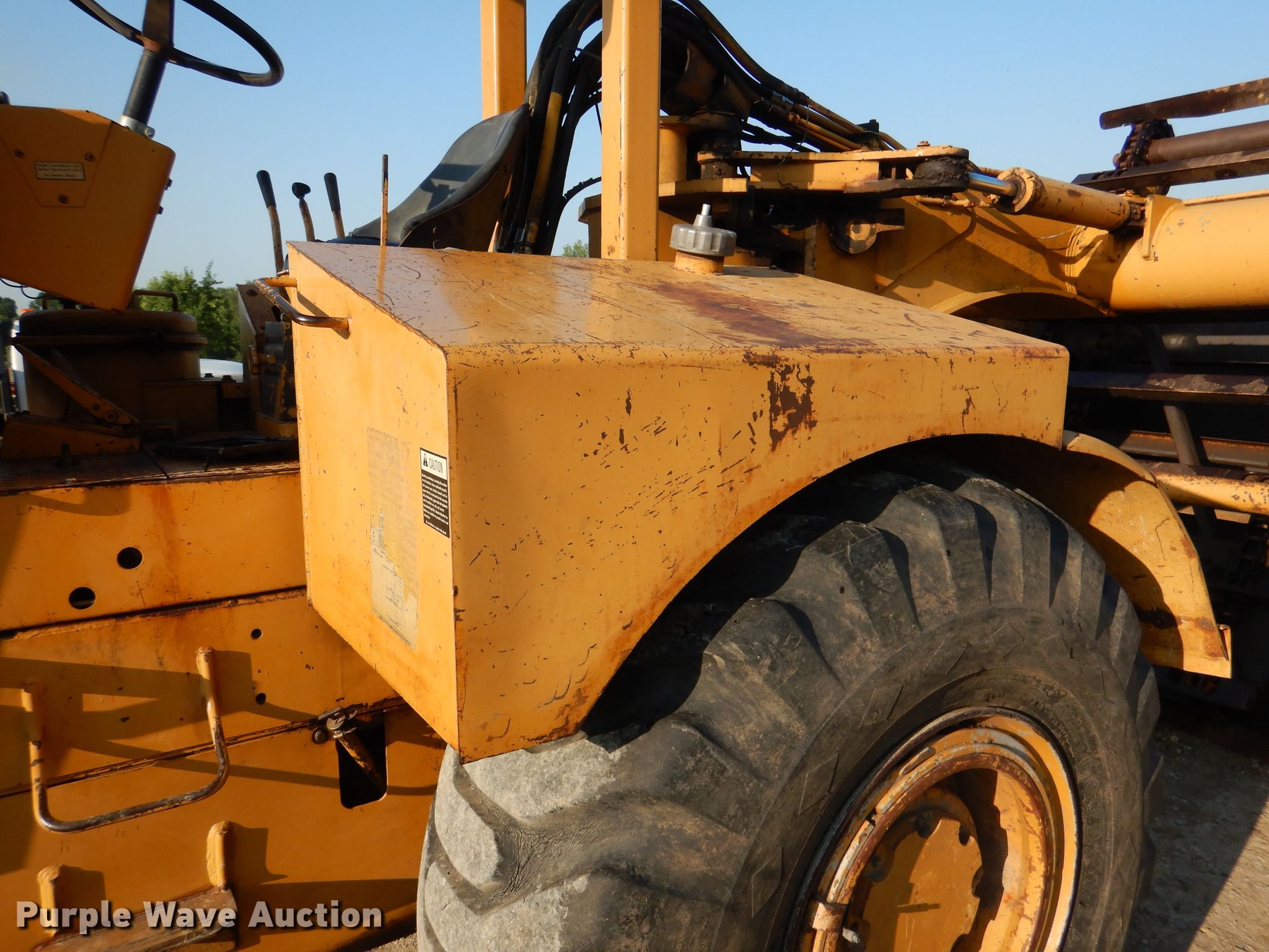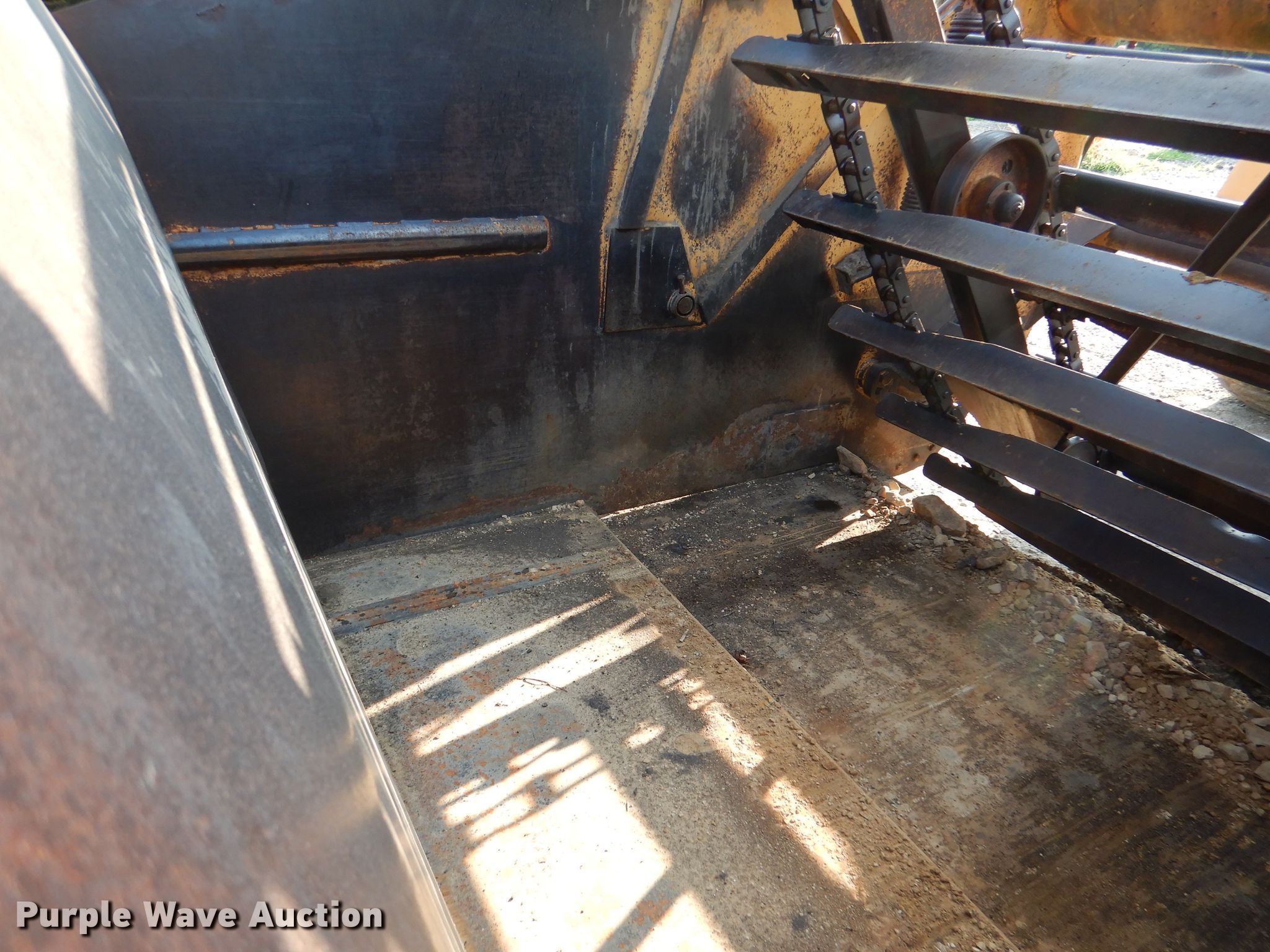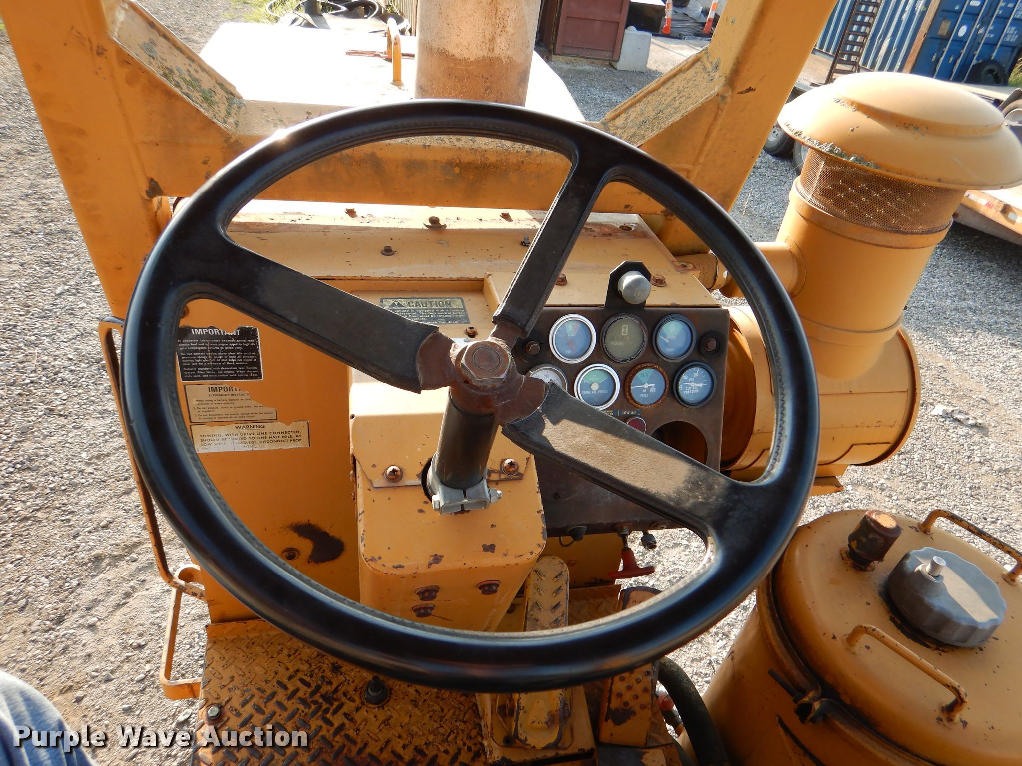 International 412B elevating scraper. 330 hours on meter, Serial: 5420114U016565. Engine International DT466, Serial: 467TH2U196548, Cylinders: 6, Fuel type: Diesel. Transmission Powershift, 4F - 1R. Operators station OROPS. Operational Bowl capacity: 13.1 cu.yd., Reversible cutting edge, Elevator reverse, Hydraulic lift, Scraper controls: Lever controls No. of controls: 3. Tires Size: 23.5-25. Notes Non-operational tachometer, Non-operational brakes , Missing brake components. Price Excavating. Baldwin City, KS 66006