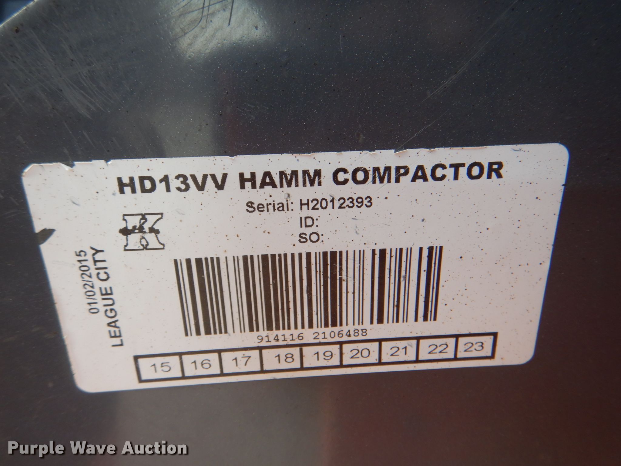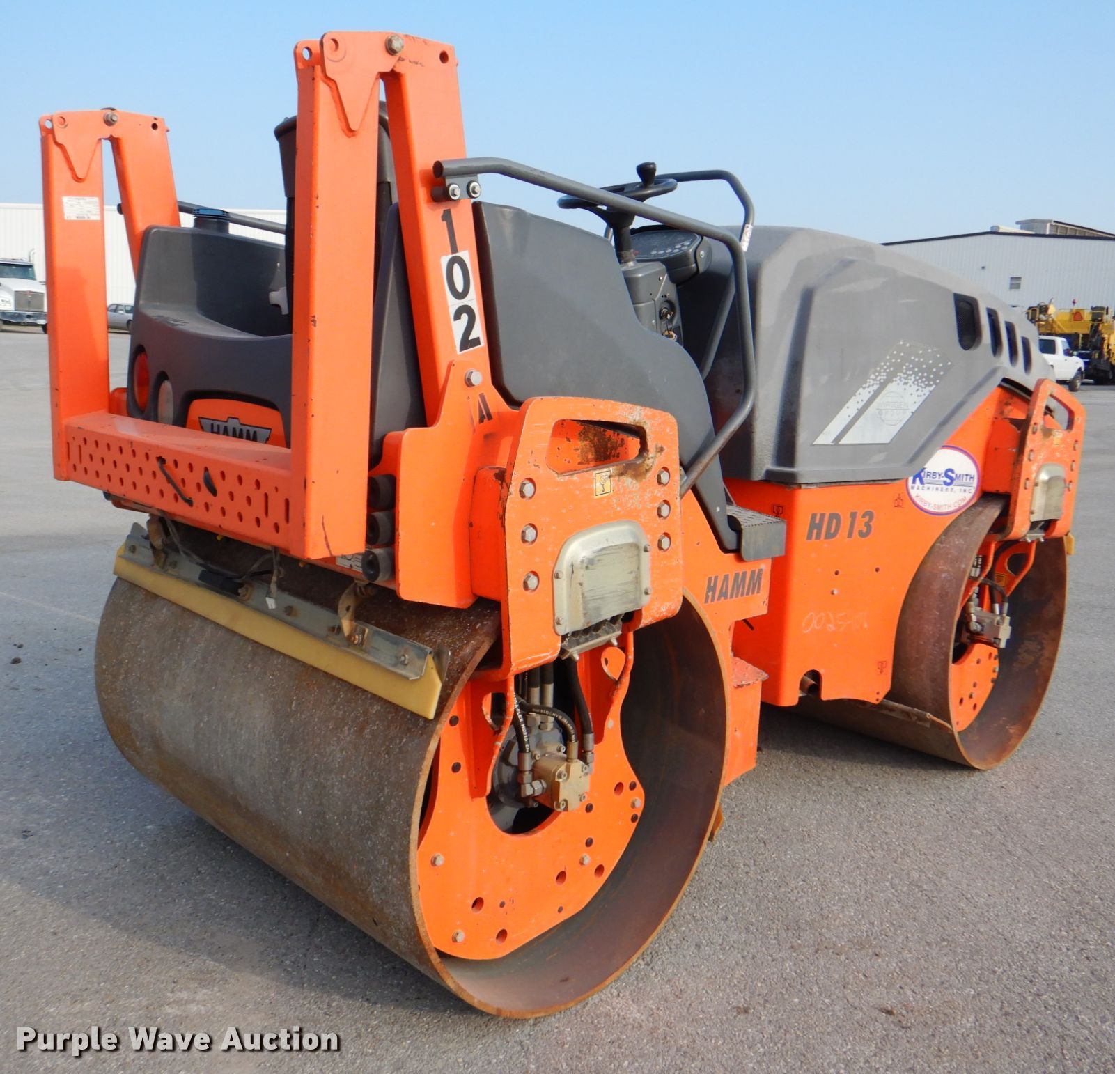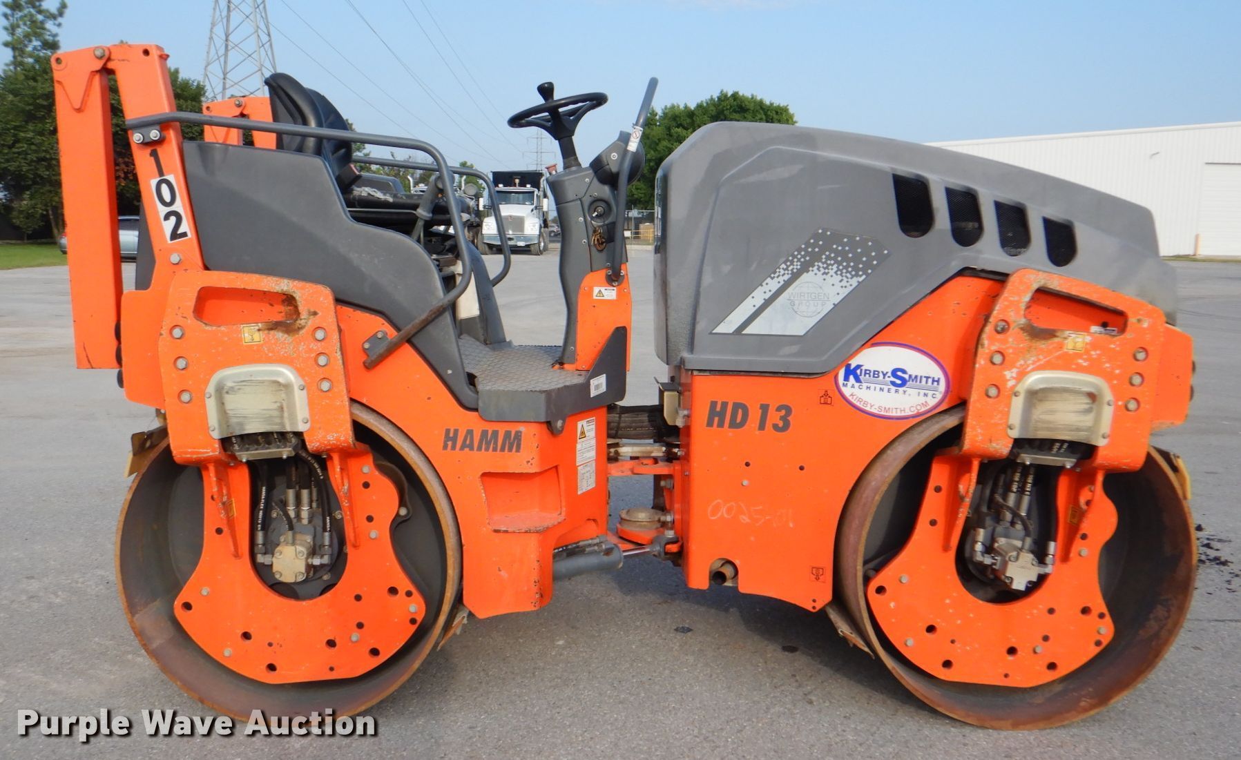 Purple Wave is selling a used Double Drum Roller Compactor in Oklahoma. This item is a 2015 Hamm HD13 double drum vibratory roller with the following: 872 hours on meter, Serial: H2012393