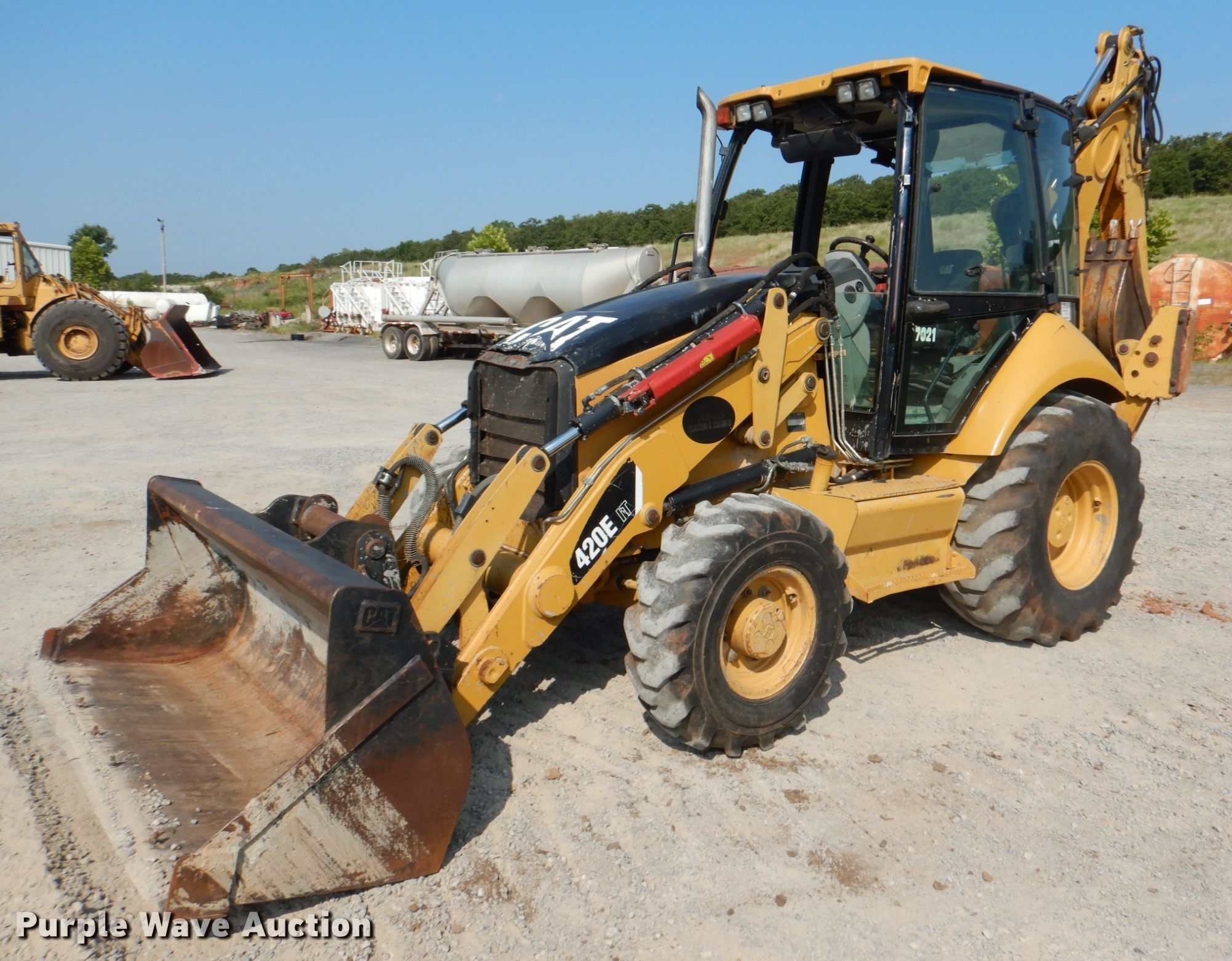 Purple Wave is selling a used Tractor Loader Backhoe in Oklahoma. This item is a 2007 Caterpillar 420E IT backhoe with the following: 3,062 hours on meter, Serial: CAT0420ECKMW01976