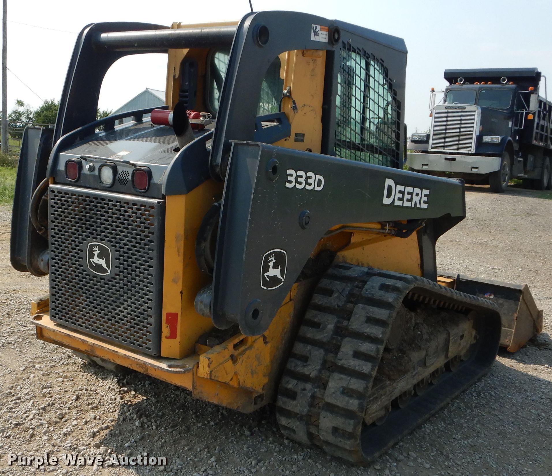 Purple Wave is selling a used Tracked Skid Steer Loader in Kansas. This item is a 2011 John Deere 333D tracked skid steer loader with the following: 3,753 hours on meter, Serial: T0333DKLBD205627