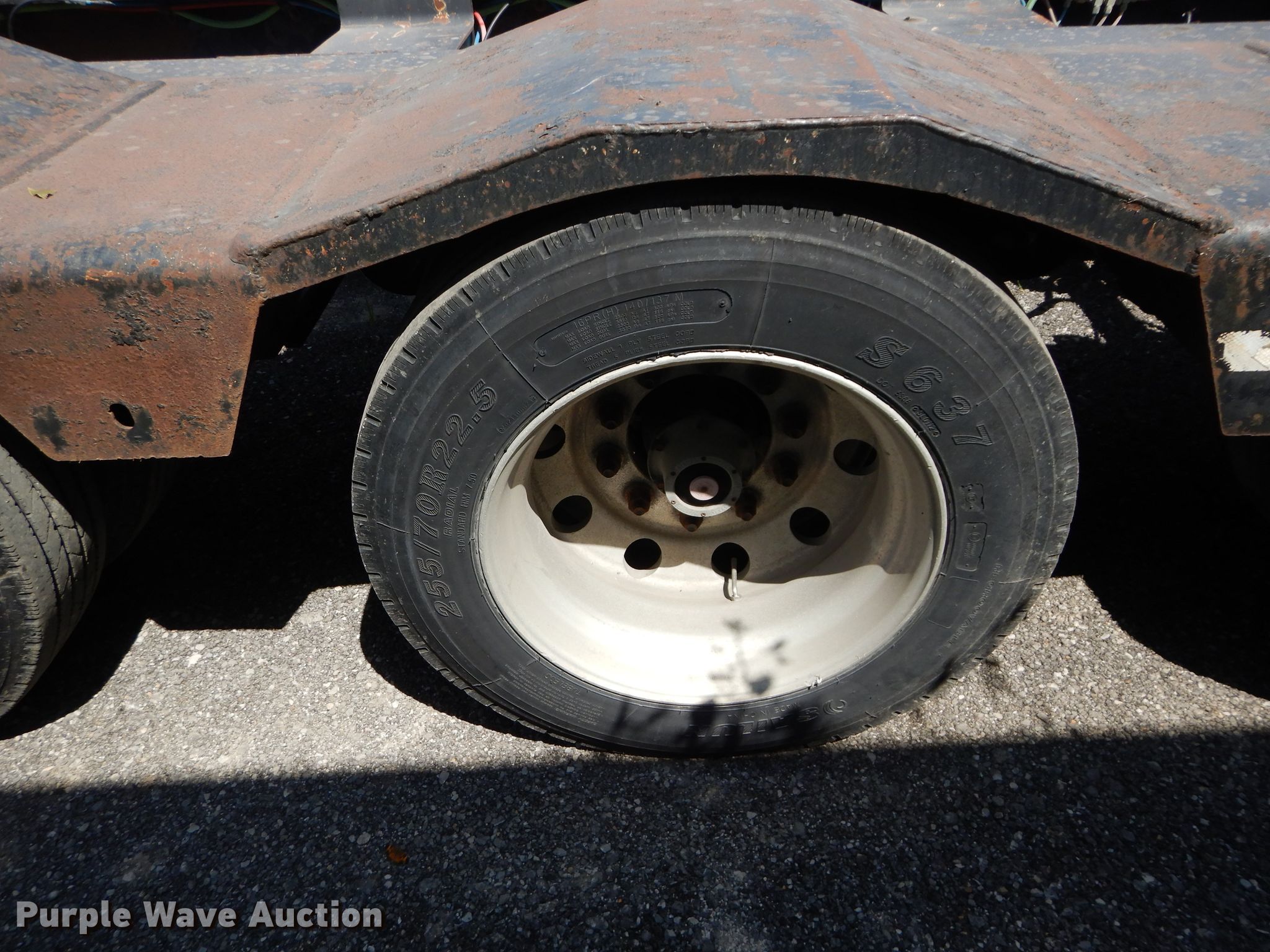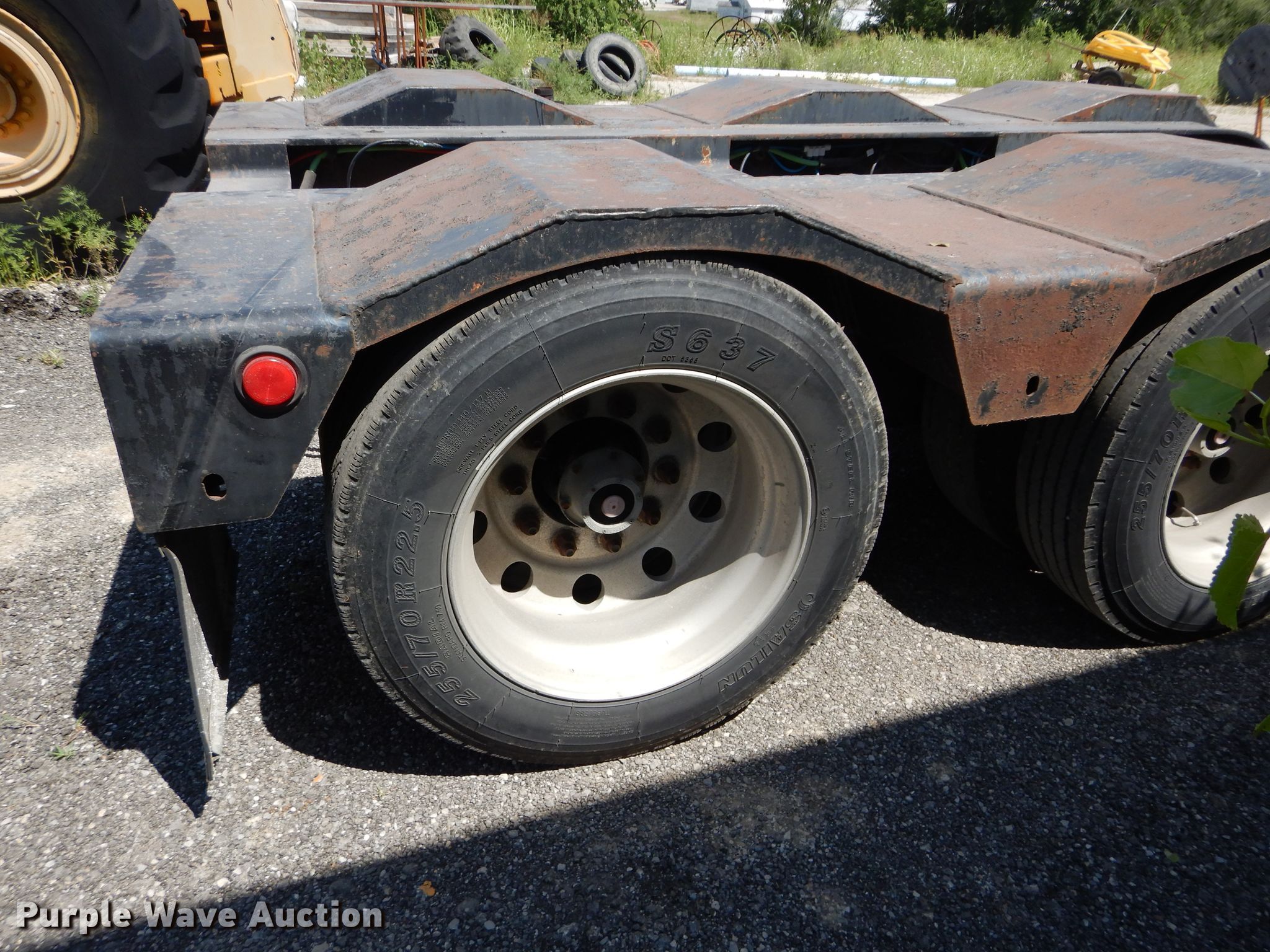 1999 Talbert T3DW-50SA-HRG-1-11 lowboy equipment trailer. Dimensions. Overall: 47' L x 102" W, Deck: 22' 6" L x 102" W, Rear deck length: 14', Deck height: 24'. Operational Deck type: Wood, Neck type: Detachable. Chassis Suspension: Air, Brakes: Air, Axles: Triple, GVWR: 122,080 lbs, GAWR: 20,280 lbs. Tires Aluminum wheels, Size: 255/70R22.5. Notes Chains and binders not included. Kansas title. 40FW0483XX1018894. Basehor, KS 66007