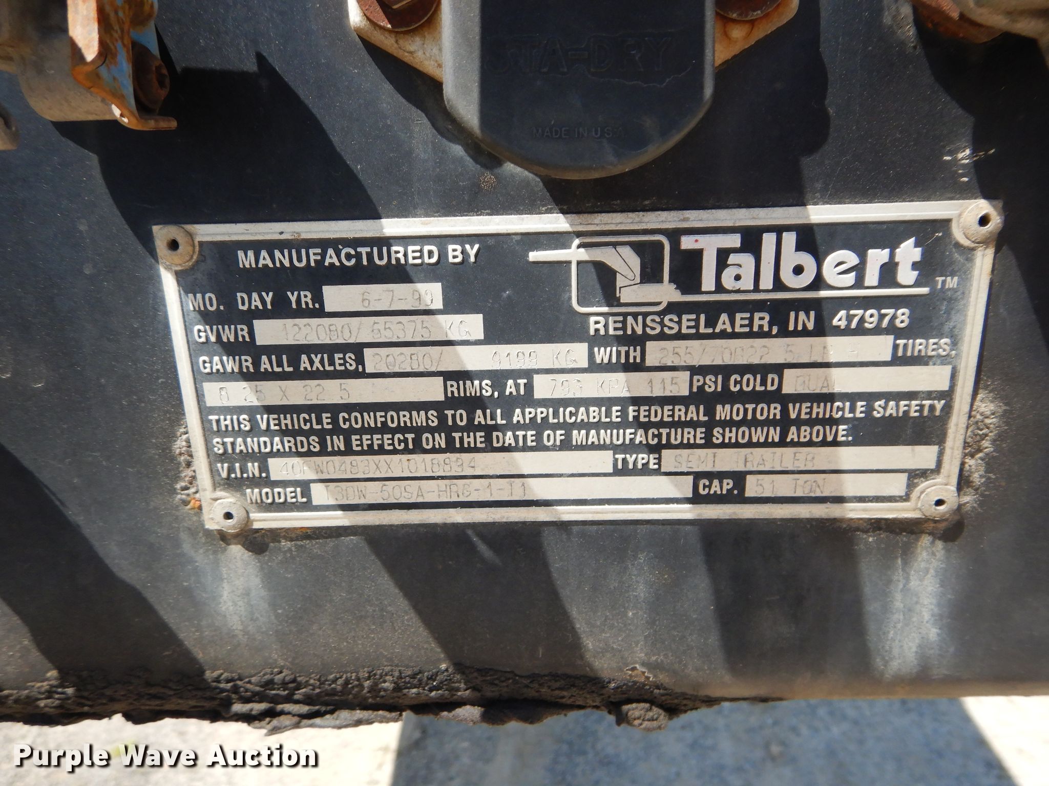 Take a look at this used 1999 Talbert T3DW-50SA-HRG-1-11 lowboy equipment trailer being sold on August 26th, 2021 in the SOLD! August 26 Construction Equipment Auction made by Talbert. Take a look at all of the item information below or take a look at similar auctions for Trailers.
