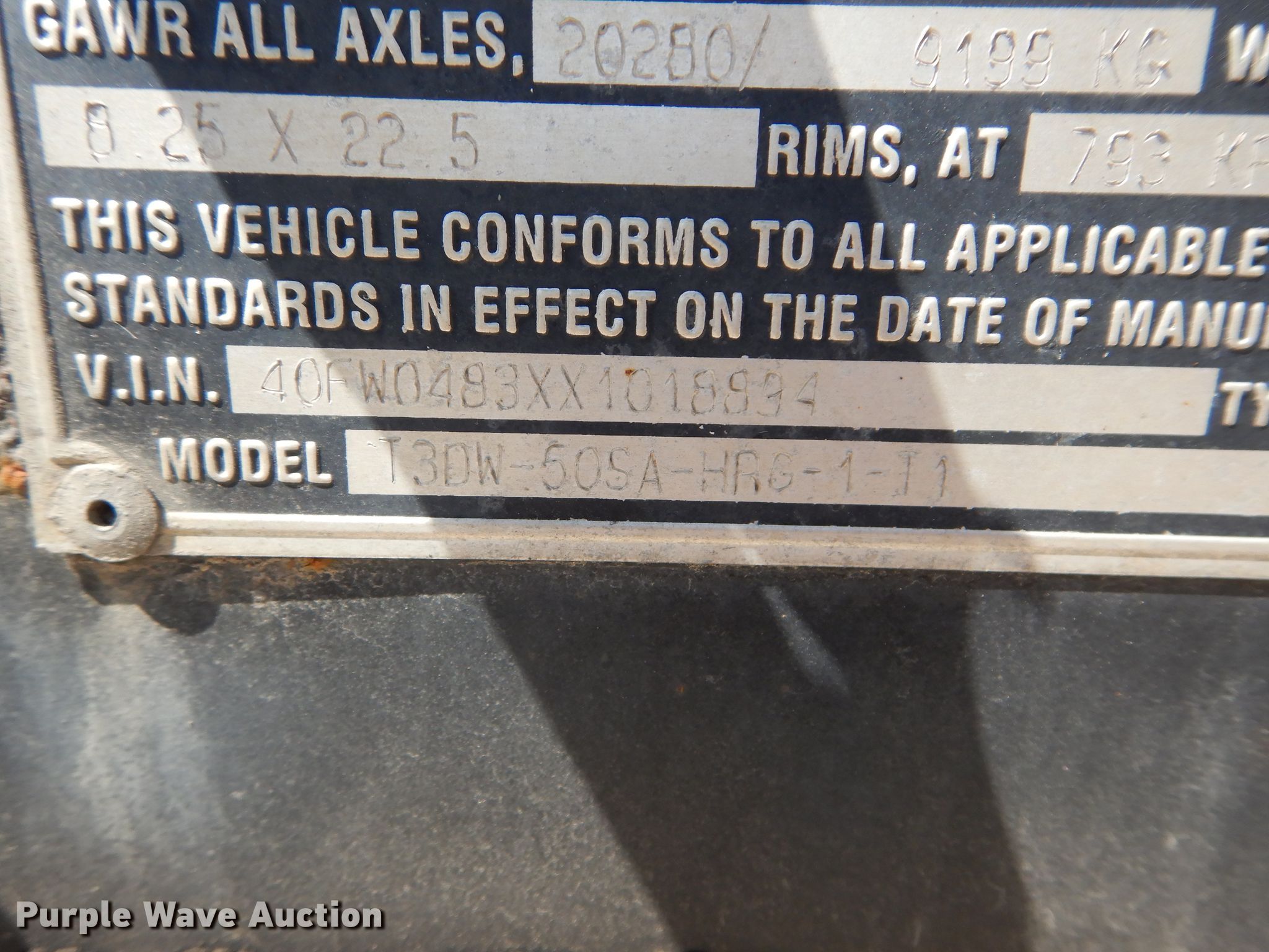 Purple Wave is selling a used Equip. Trailer in Kansas. This item is a 1999 Talbert T3DW-50SA-HRG-1-11 lowboy equipment trailer with the following: Overall: 47' L x 102" W, Deck: 22' 6" L x 102" W, Rear deck length: 14', Deck height: 24'
