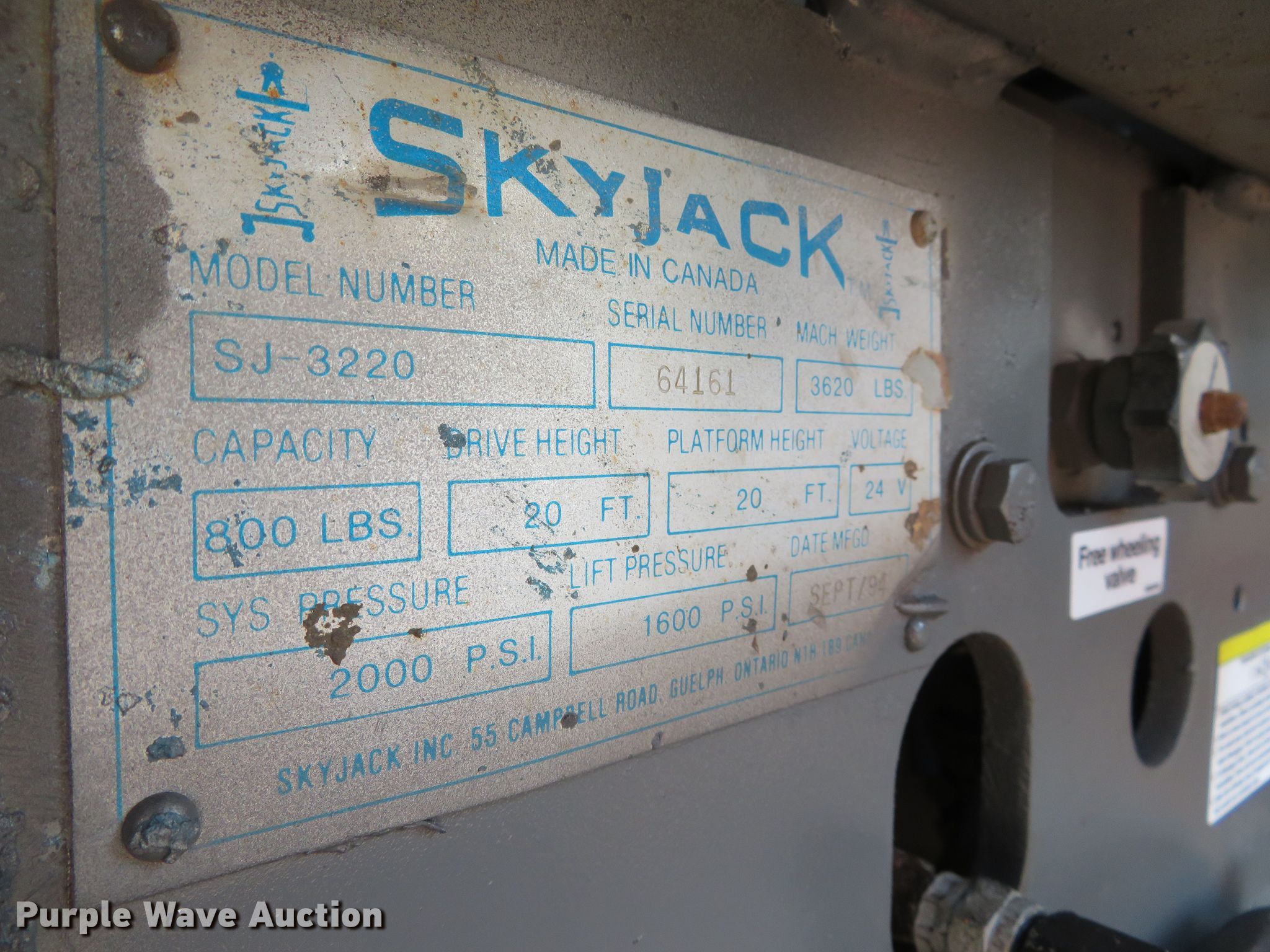 Purple Wave is selling a used Scissor or Vertical Lift in Missouri. This item is a 1994 Skyjack SJ3220 scissor lift with the following: 450 hours on meter, Serial: 64161