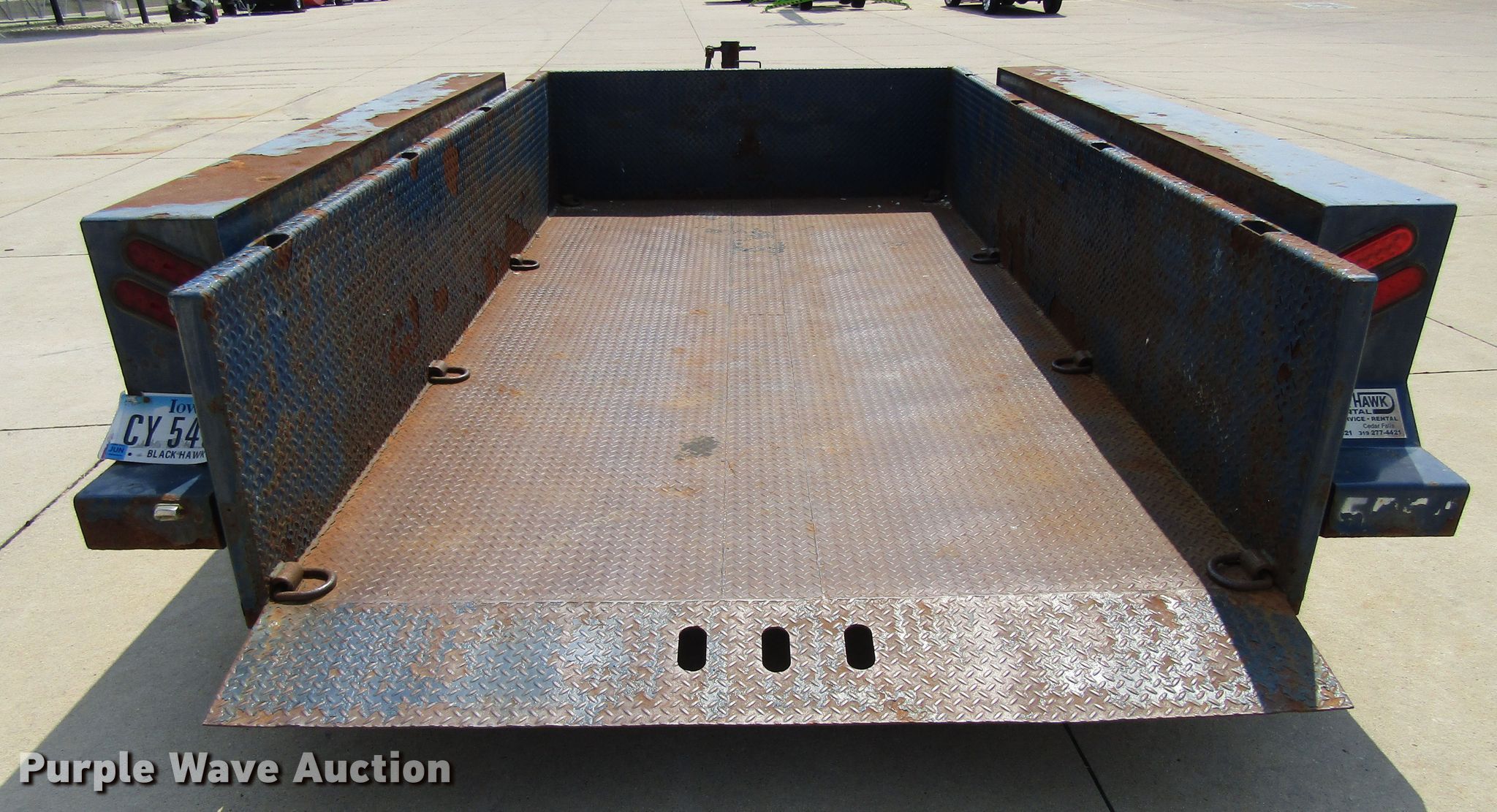 Purple Wave is selling a used Equip. Trailer in Iowa. This item is a 2013 B-B equipment trailer with the following: Overall: 20' x 102" W, Deck: 13' x 6' 3" W, Deck height: 1', Tail length: 1'