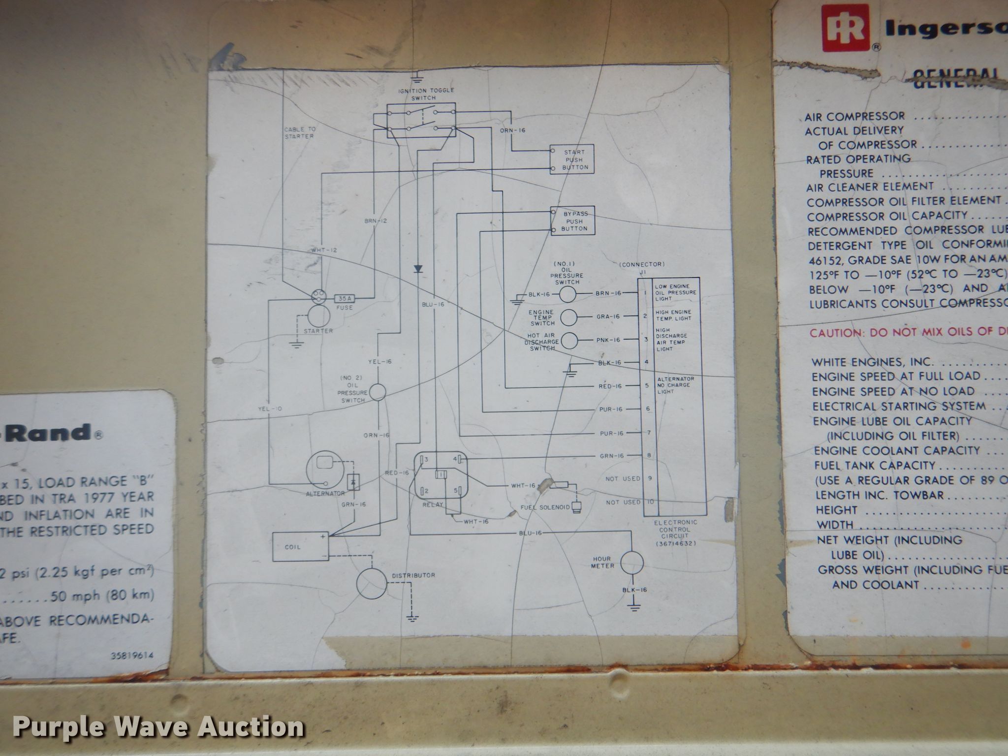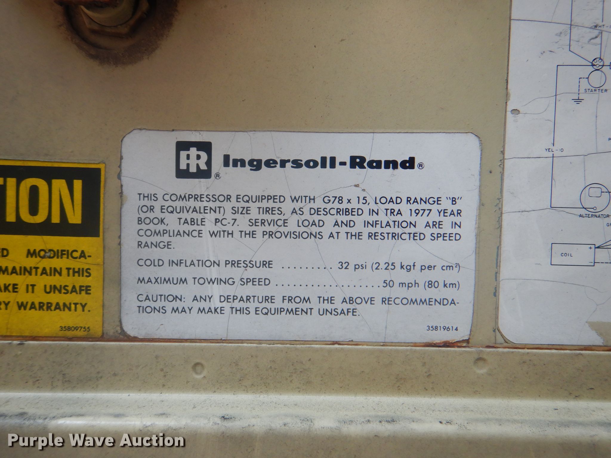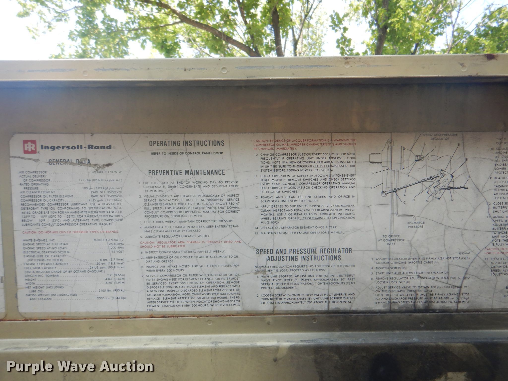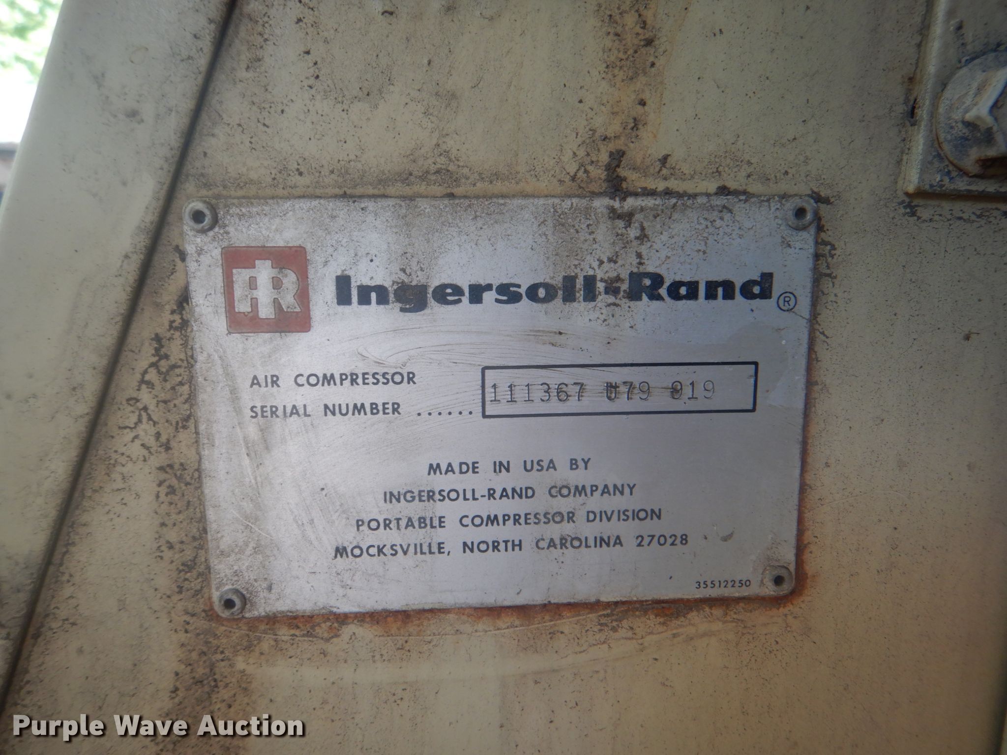 Purple Wave is selling a used Air Compressor in Oklahoma. This item is a Ingersoll Rand P175WW air compressor with the following: 1,201 hours on meter, Serial: 111367U79019