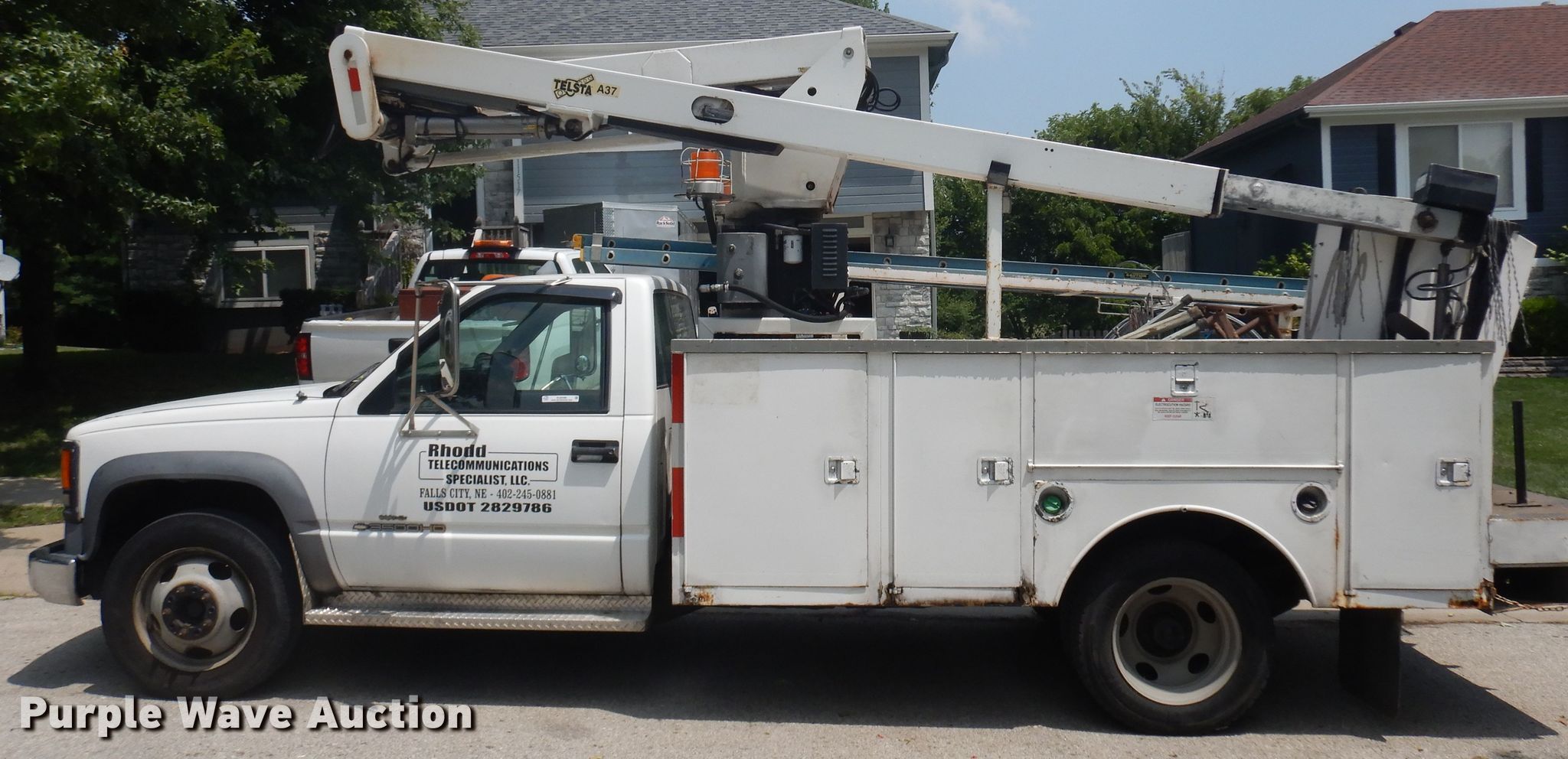 2001 Chevrolet Silverado 3500HD bucket truck. 215,996 miles on odometer. Engine Displacement: 6.5L V8 OHV 16V, Cylinders: 8, Fuel type: Diesel. Transmission Automatic. Chassis Axles: Single, Suspension: Spring, Brakes: Hydraulic, PTO. Interior AC, Heat. Operational Bed 12' 8" L x 90" W, Boom Telsta A37, Maximum lift height: 37', Boom type: Articulating, Telescopic, Man basket, Boom controls Platform/ basket.. Tires Size: 225/70R19.5. Notes Toolbox, tools, and bed contents not included. Vehicle has an E-Title in the State of Florida. A paper title will be distributed to the buyer within 60 days from verification of funds. 3GBKC34F81M110815. Rhodd Telecommunications. 11517 N Windsor Ave. Kansas City, MO 64157