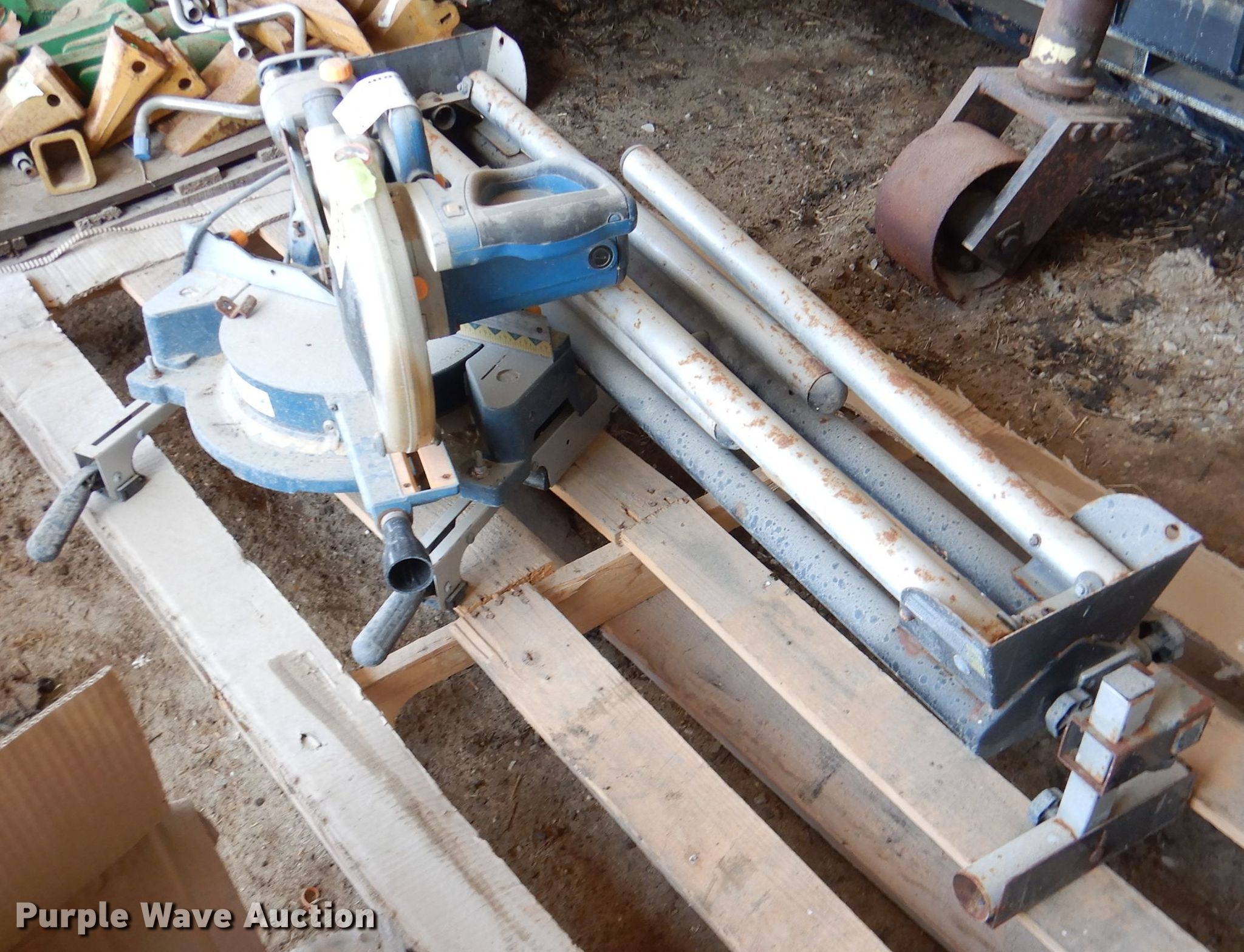 Purple Wave is selling a used Tools in Kansas. This item is a Ryobi sliding compound miter saw with the following: Stand