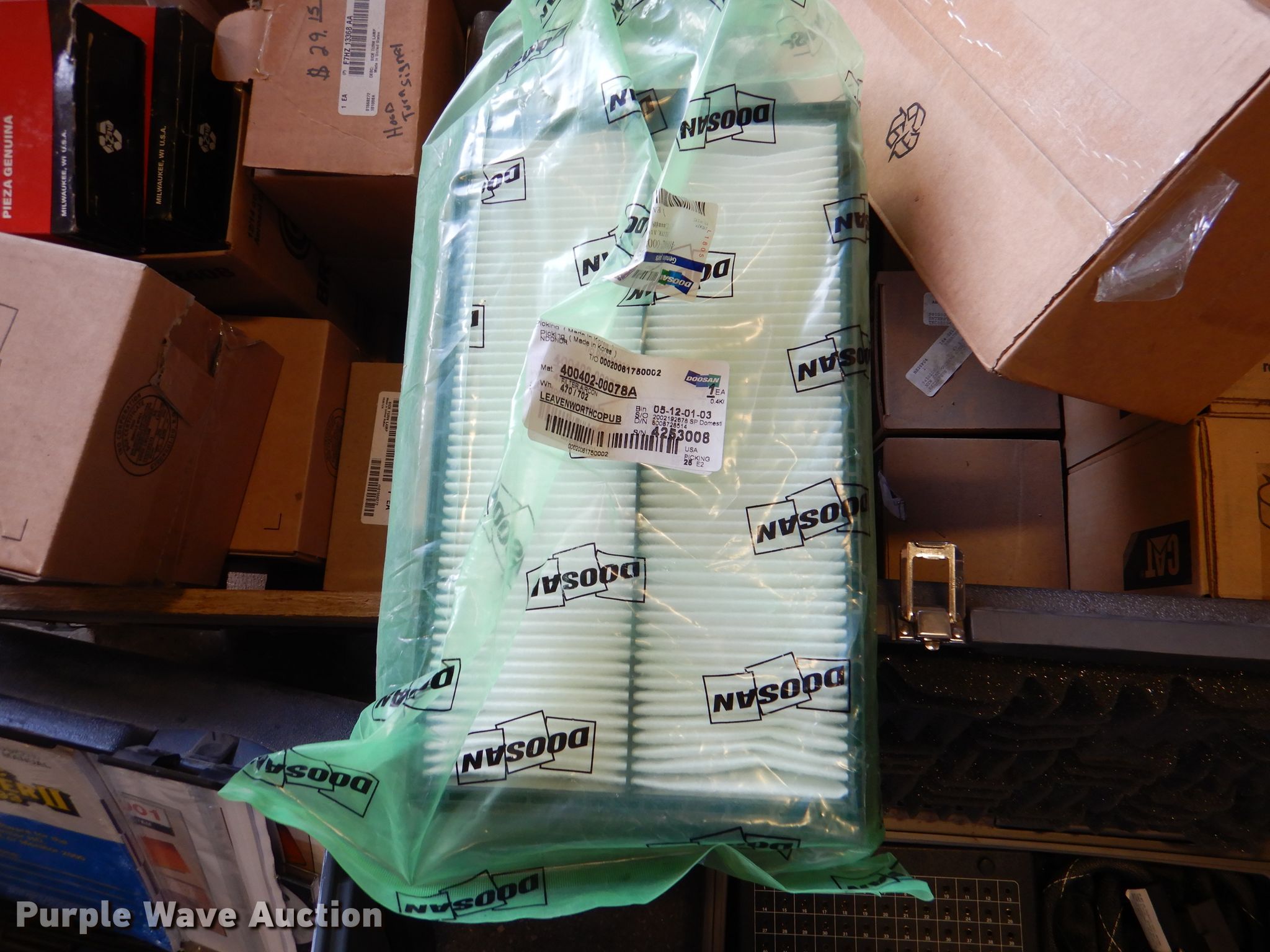 Purple Wave is selling a used Tools in Kansas. This item is a Tools with the following: Diagnostic cables, OTC Diagnostic system, (2) OTC breakout box, Spreader spinner, Filters, Caterpillar, John Deere, Doosan, Caterpillar shoe track, Manuals, Doosan, JCB, Ford, Bobcat, Case, Caterpillar, New Holland