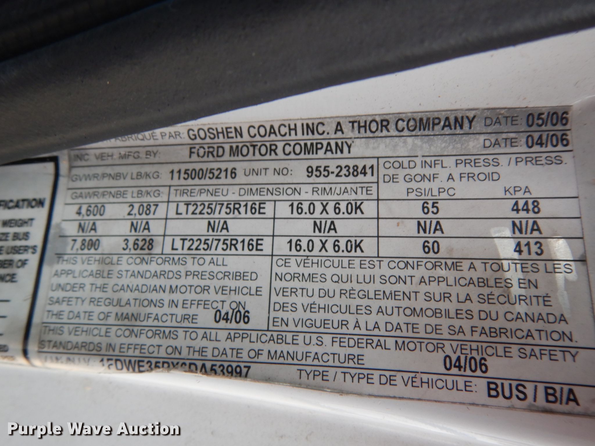 Take a look at this used 2006 Ford E350 Super Duty shuttle bus being sold on August 31st, 2021 in the SOLD! August 31 Government Auction made by Ford. Take a look at all of the item information below or take a look at similar auctions for Transit Vehicles.