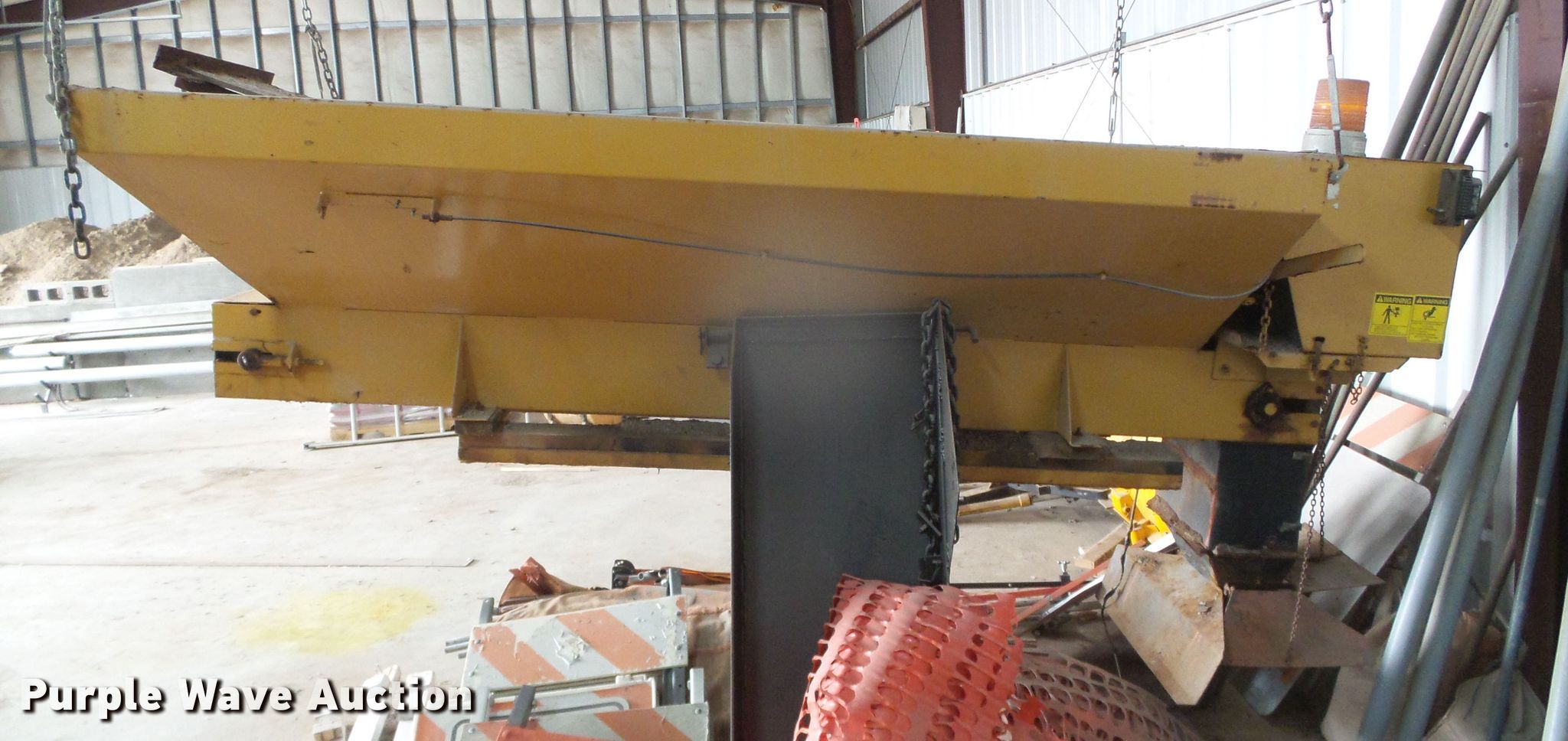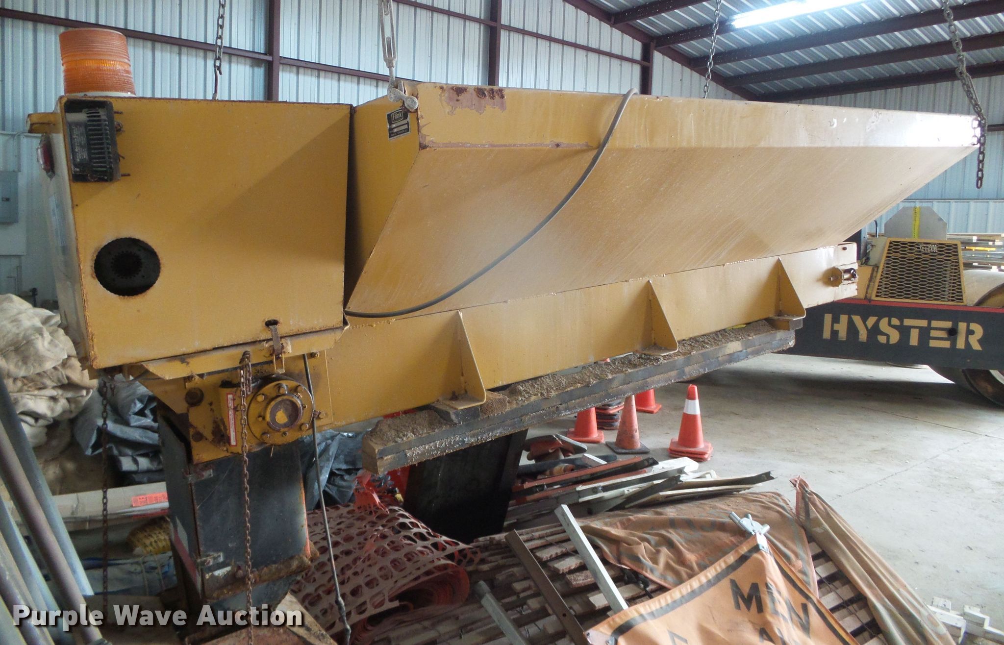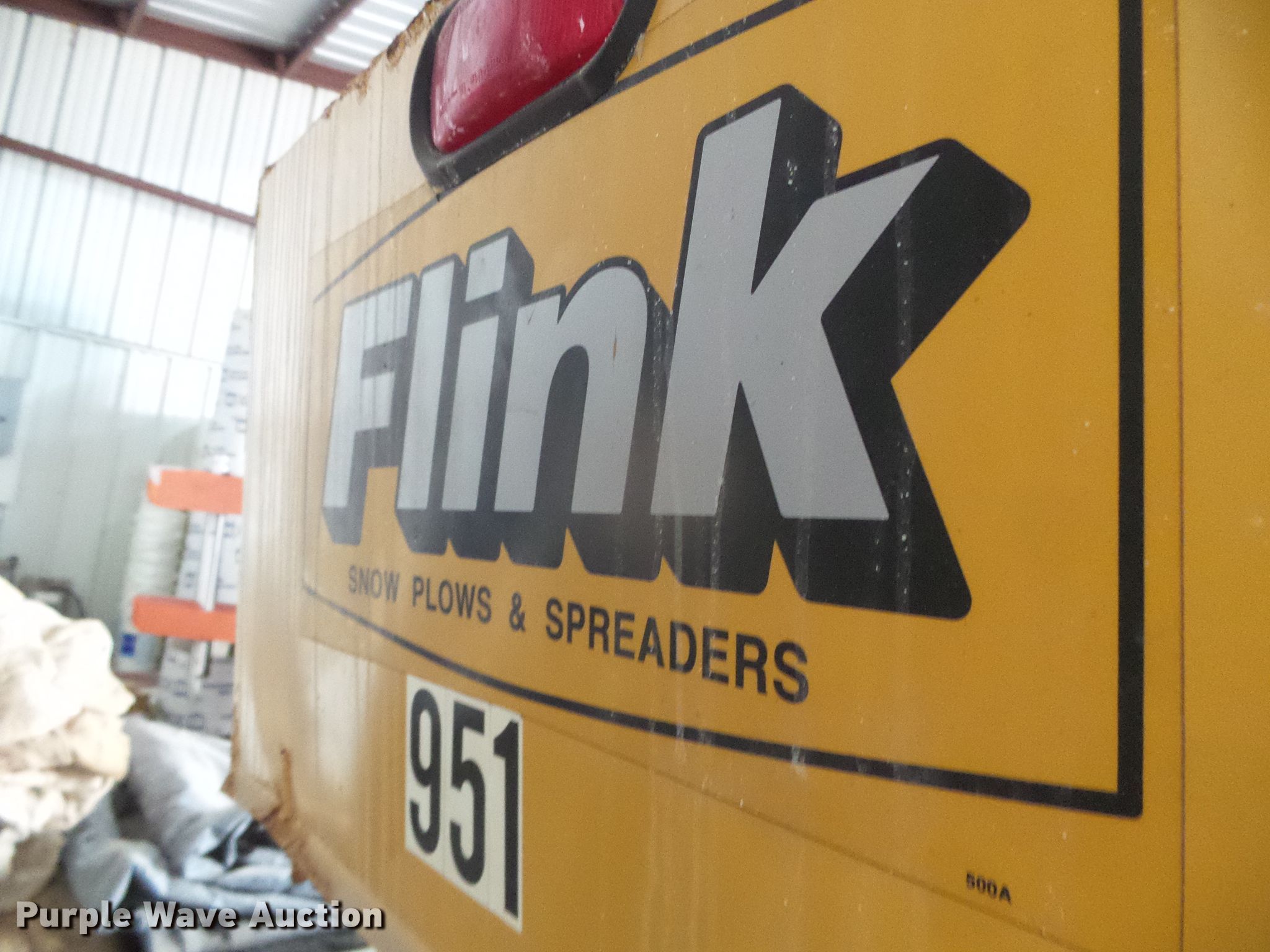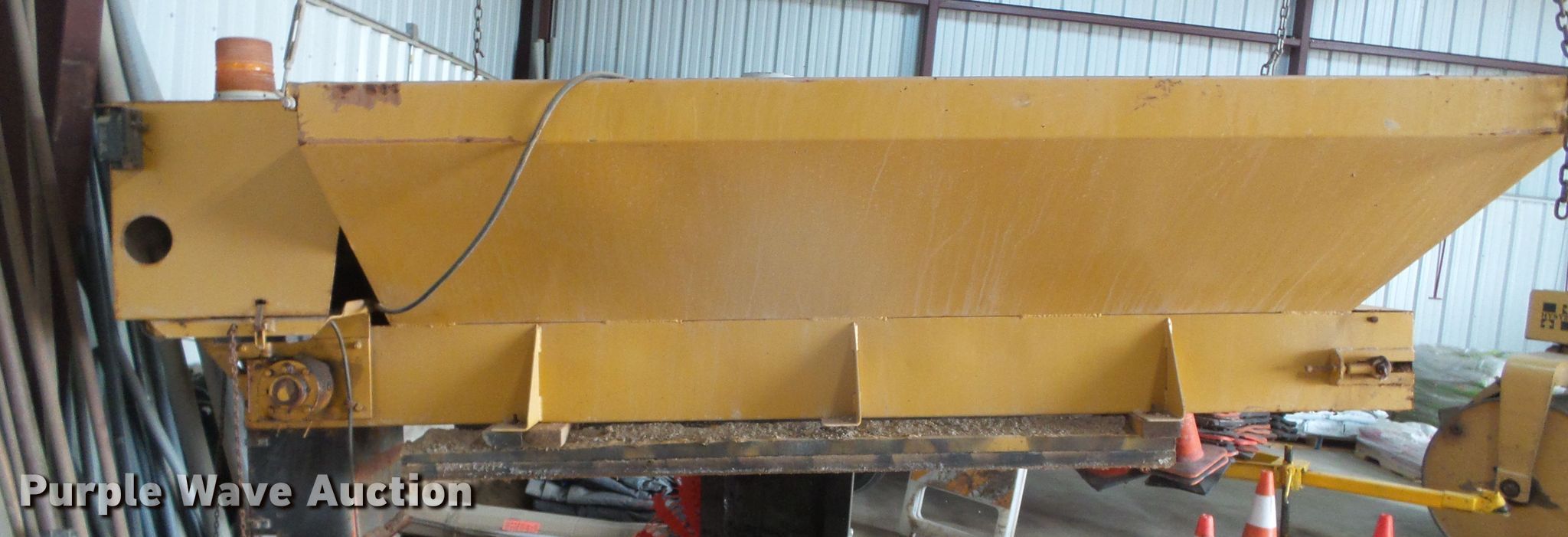 Purple Wave is selling a used Truck Part and Attach. in Kansas. This item is a Flink FM-8 spreader with the following: 9' 7" L x 54" W, Gas engine, Serial: 301