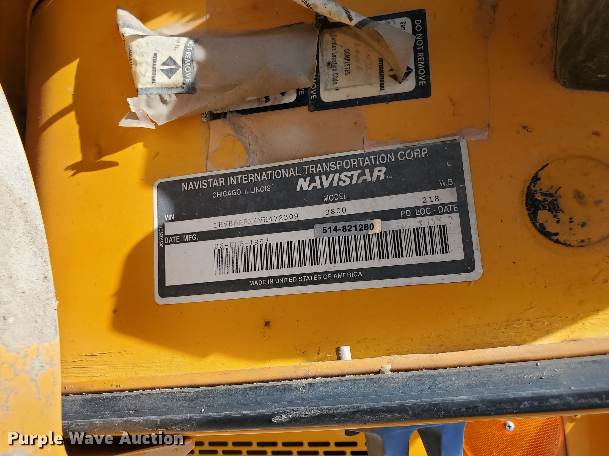 1997 International 3800 AmTran school bus. 167,193 miles on odometer. Engine Navistar T444E, Displacement: 7.3L V8 OHV 16V, Cylinders: 8, Fuel type: Diesel, HP: 175. Transmission Automatic. Chassis Axles: Single, Suspension: Spring, Brakes: Hydraulic, GVWR: 25,500 lbs. Interior Heat, Heated mirrors, Auxiliary controls, Passengers: 45. Tires Size: 10R22.5. Kansas title. 1HVBBABM4VH472309. 205 N 4th St. Atwood, KS 67730