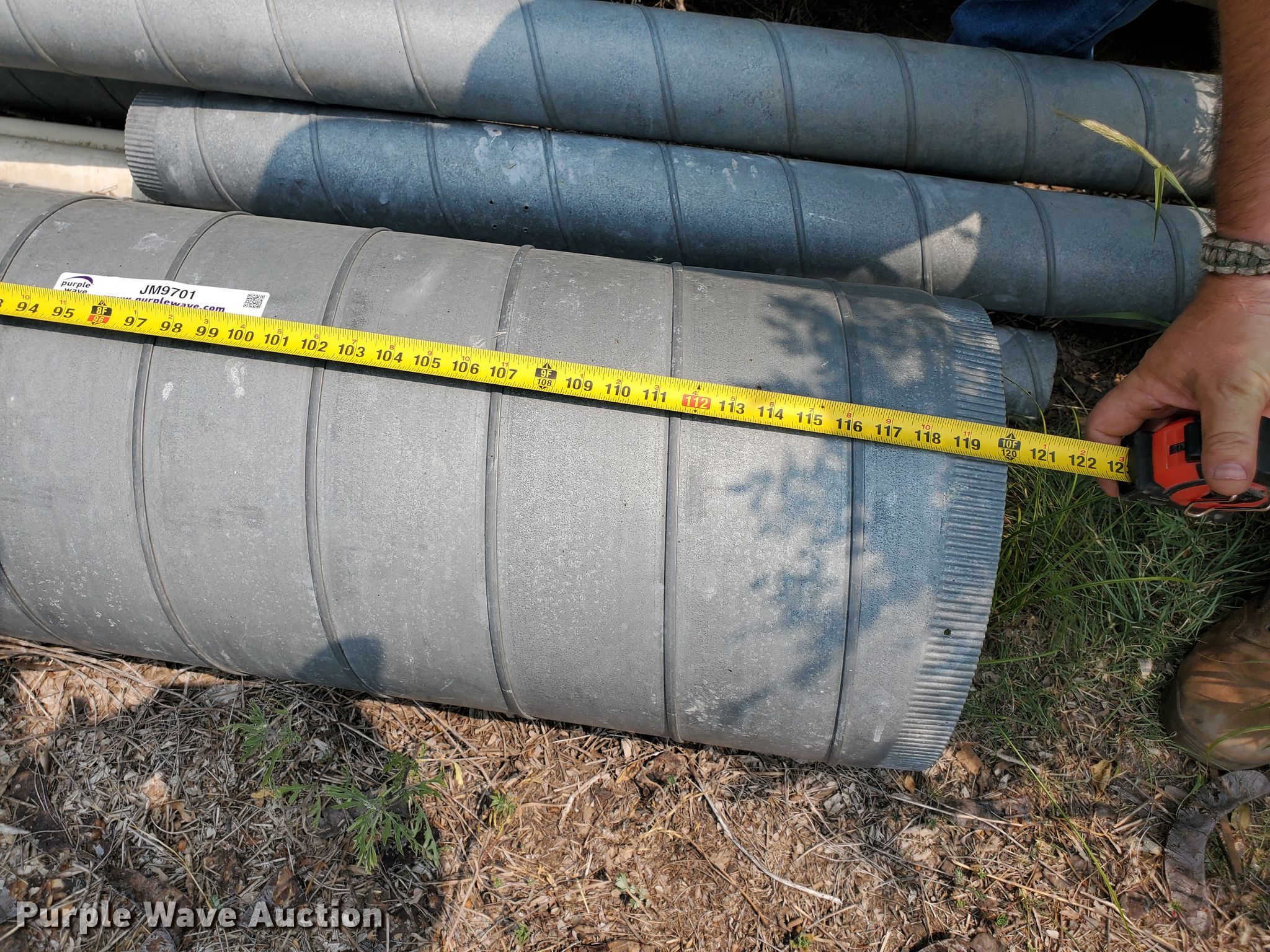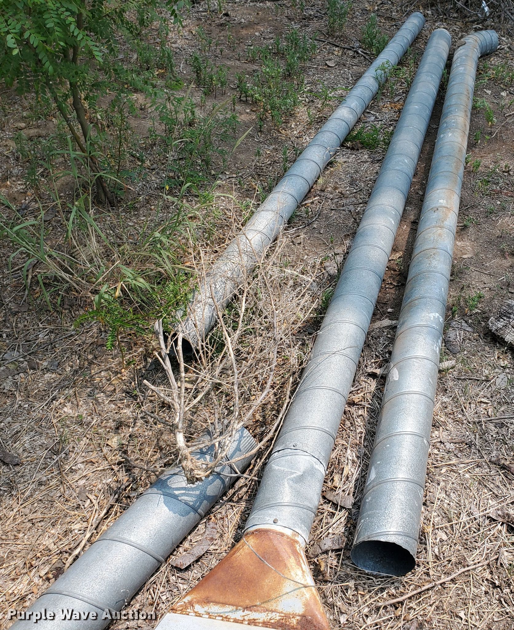 Purple Wave is selling a used Building Materials in Kansas. This item is a Galvanized tubing with the following: (5) sections, Diameter: 15", Length: 7' 6" to 10', Various 4" tubing