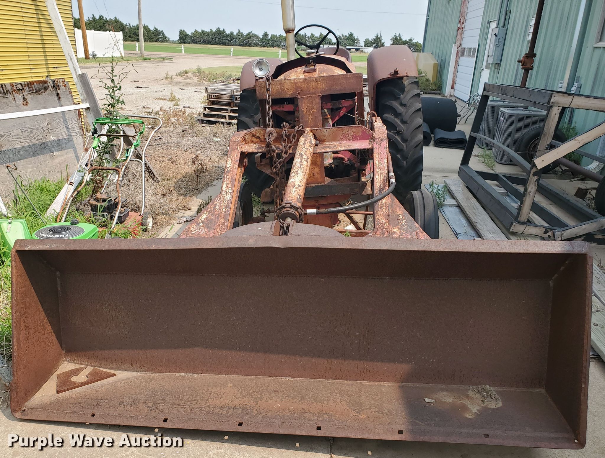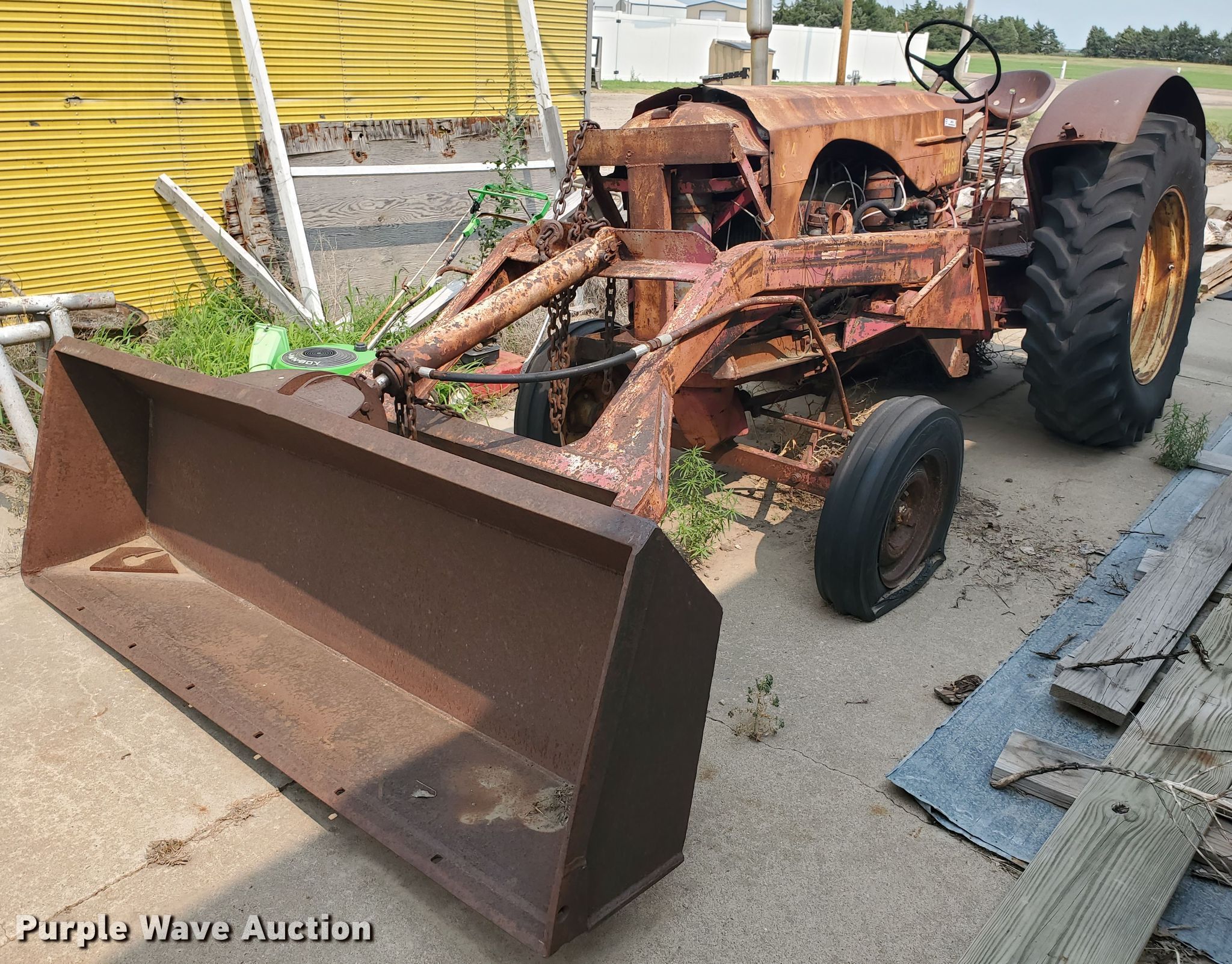 1951 Massey-Harris 44 tractor. Serial: 14354. Engine Continental, Displacement: 4.3L, Cylinders: 4, Fuel type: Gas, HP: 45. Transmission Manual, 5F - 1R. Operational PTO: 540, Side belt pulley drive, Hydraulic remote sets Rear: 1, Loader Bucket Width: 84".. Tires Front: 8.50-16, Rear: 14.9-30. Notes Loader lift cylinders missing, Non-operational unit. USD 274 Oakley Public Schools. 621 Center Ave. Oakley, KS 67748