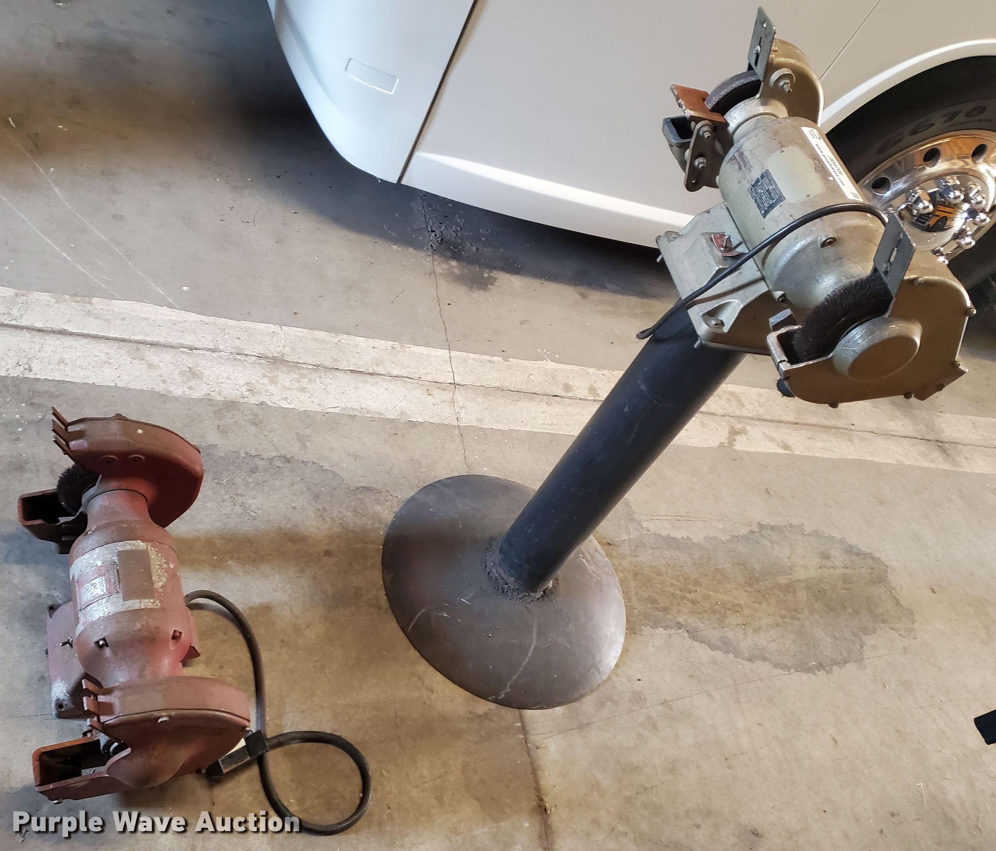 Purple Wave is selling a used Tools in Kansas. This item is a (2) bench grinders with the following: Powermatic grinder, 220V, Three phase, Bench grinder, 120V, Stand, Non-operational shut-off switch