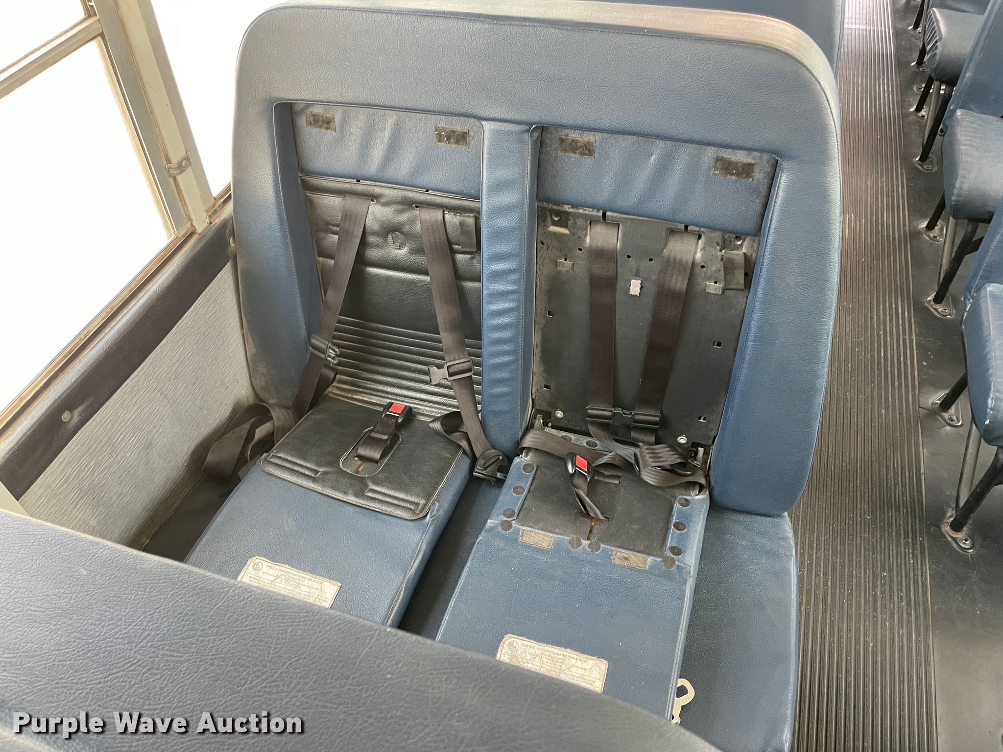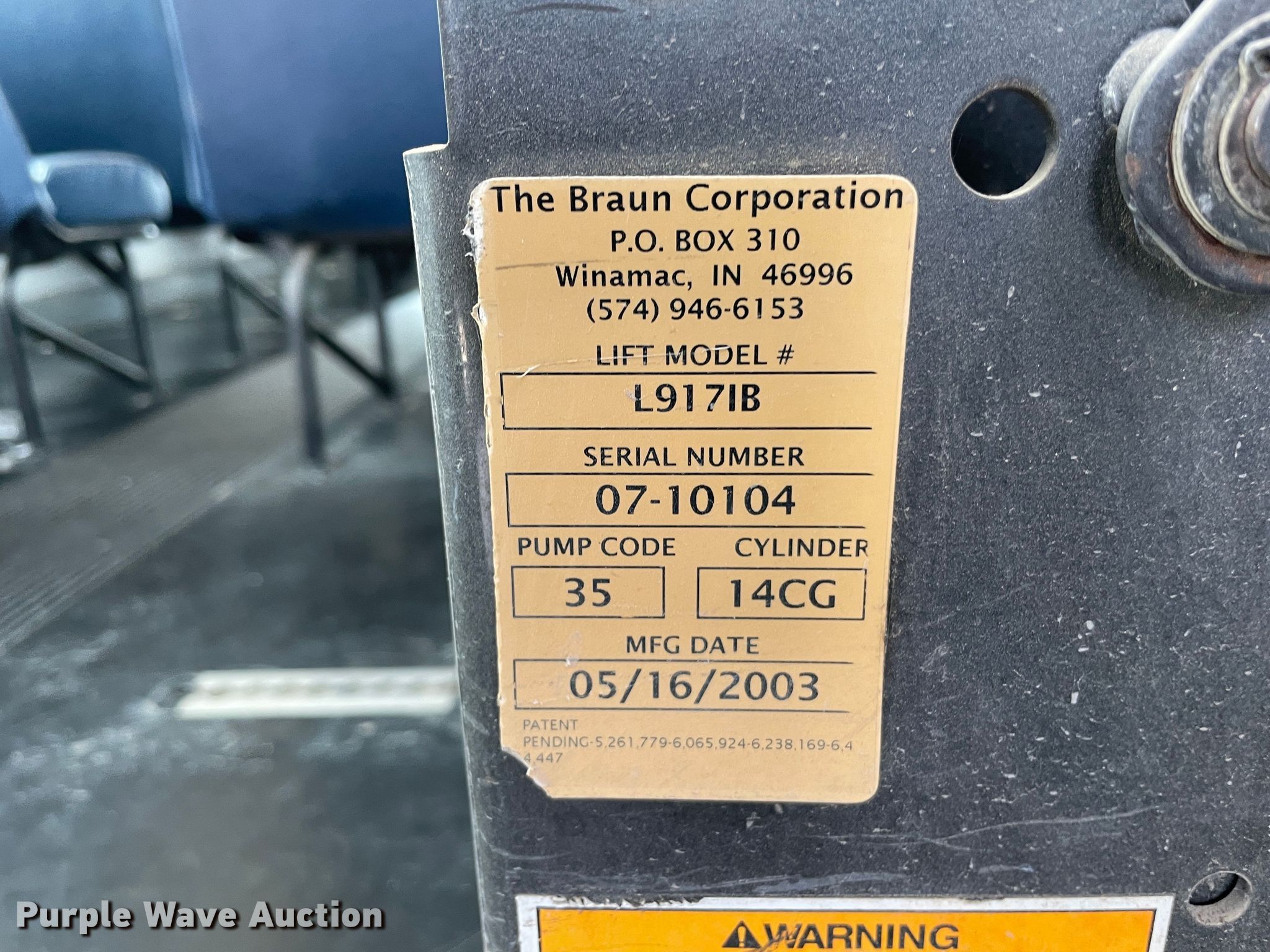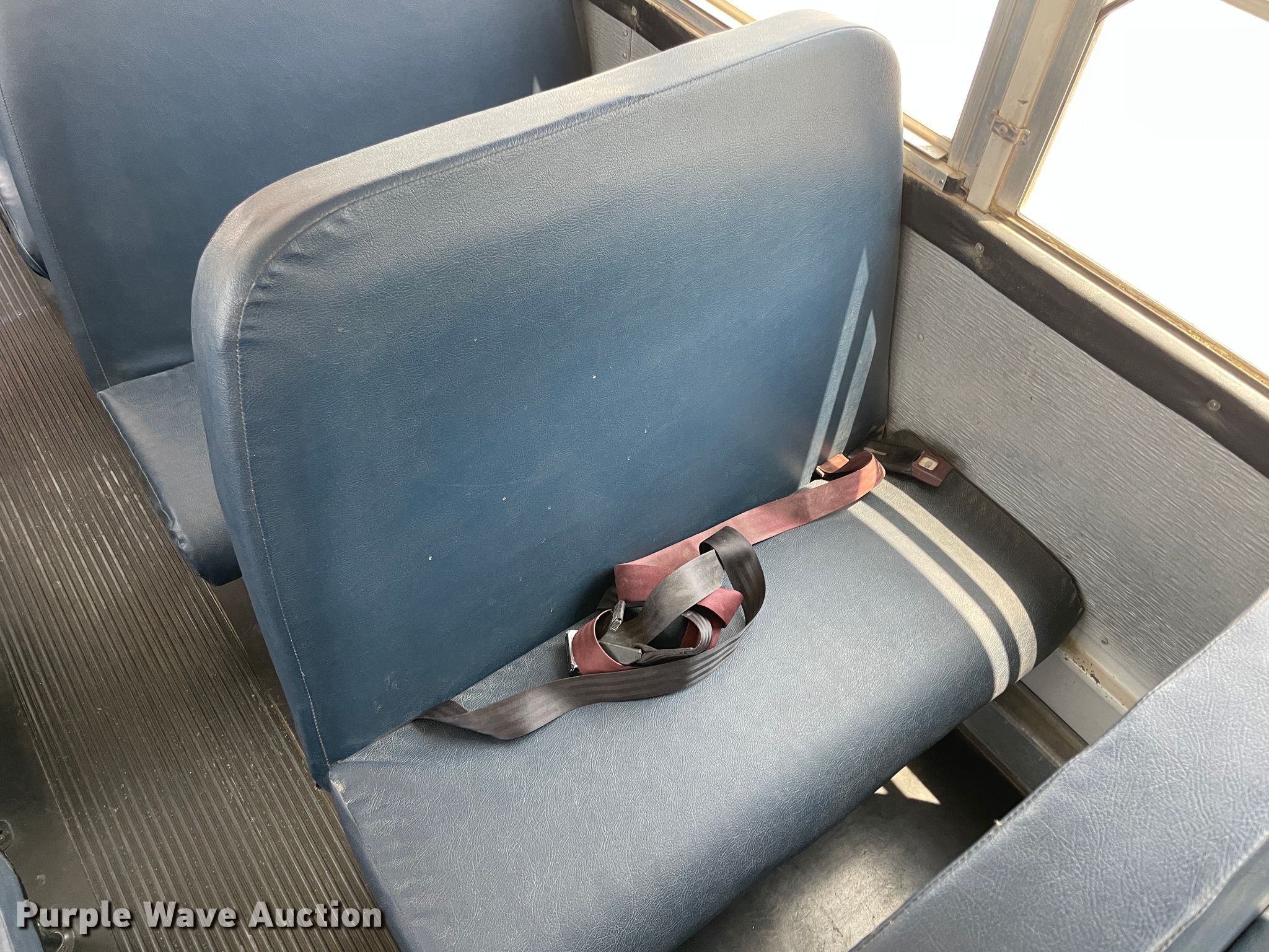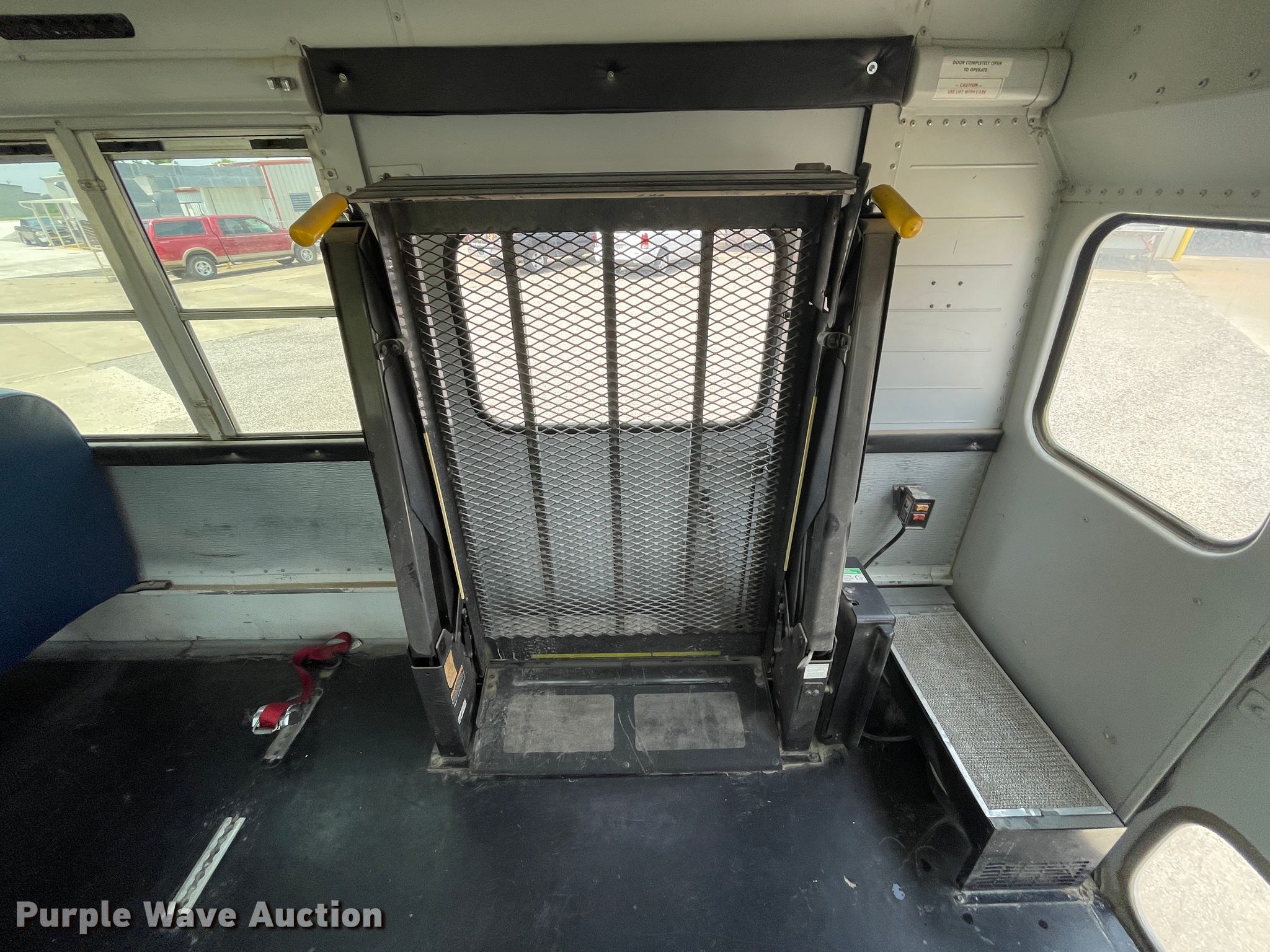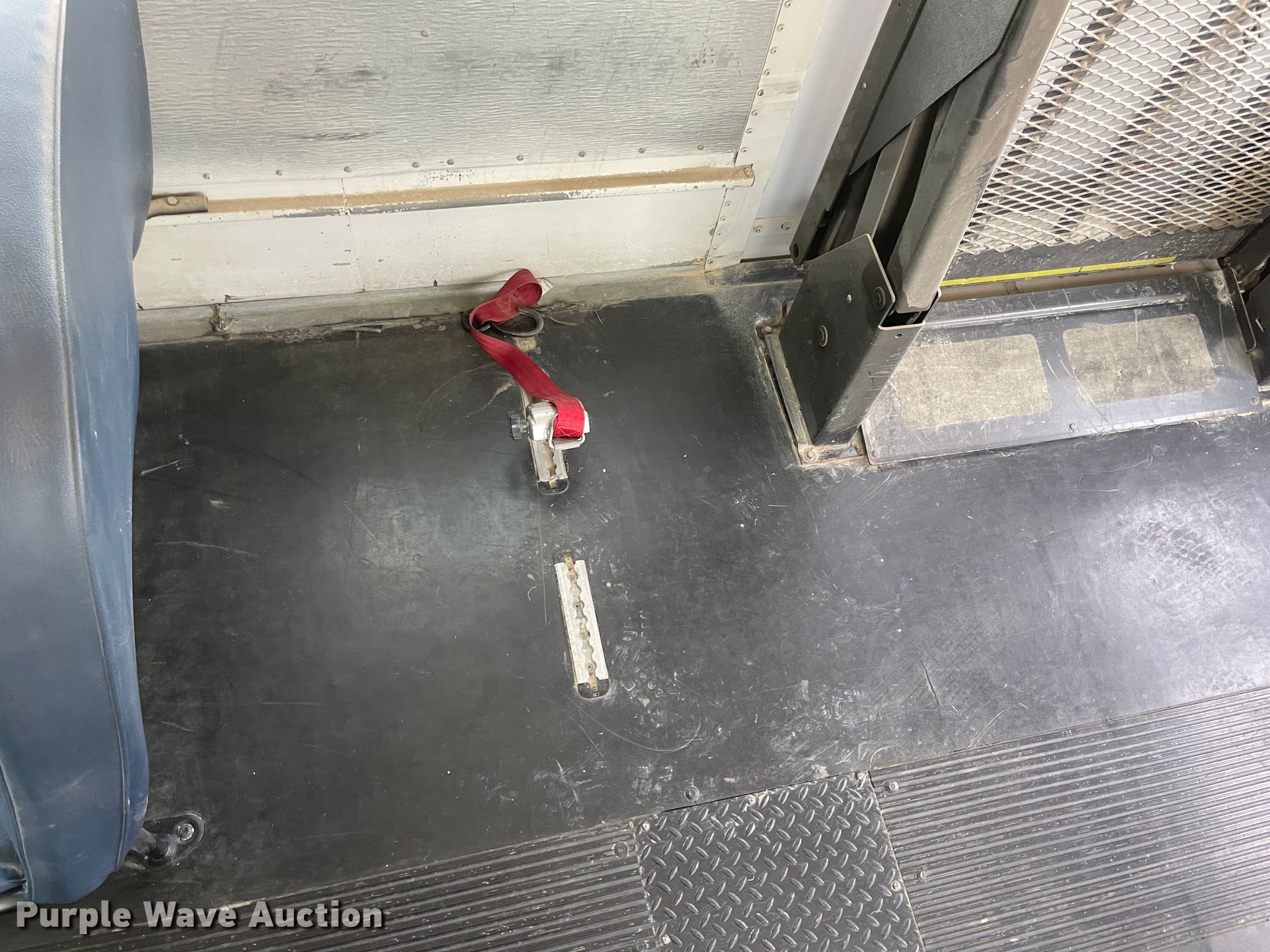 2004 Thomas school bus. 134,420 miles on odometer, Engine hours: 6,820. Engine Caterpillar 3126, Displacement: 7.2L, Cylinders: 6, Fuel type: Diesel. Transmission Automatic. Chassis Axles: Single, Suspension: Spring, Brakes: Hydraulic, GVWR: 30,000 lbs. Interior AC, Heat, Heated mirrors, Cruise control, Auxiliary controls, Passengers: 45, Seats Child safety seats: 8, Adult seats: 15, Wheelchair lift. Tires Size: 255/70R22.5. Notes Windshield chipped or cracked. Kansas title. 1T88M4C1041142527. 150 Apico Way. Girard, KS 66743