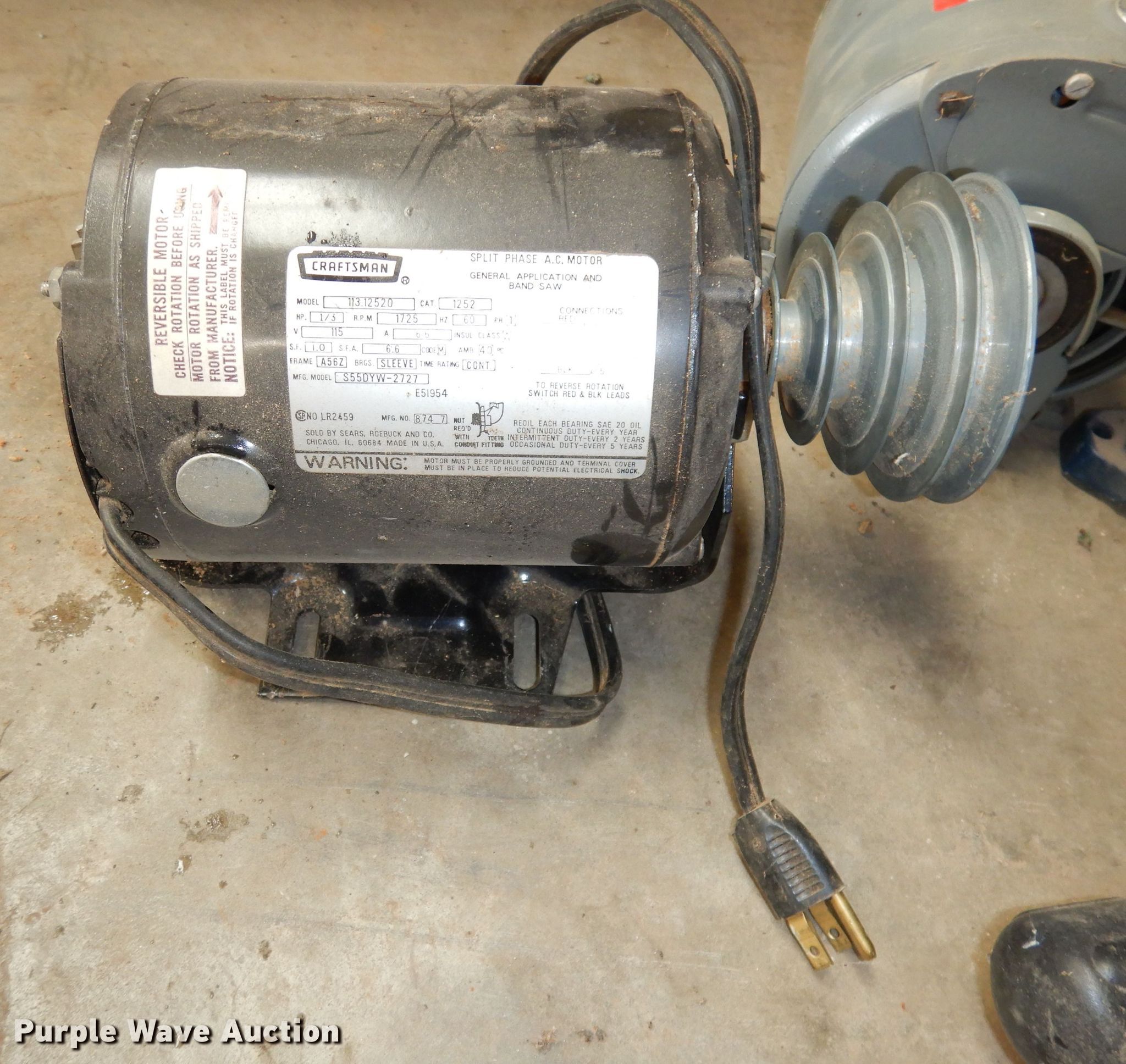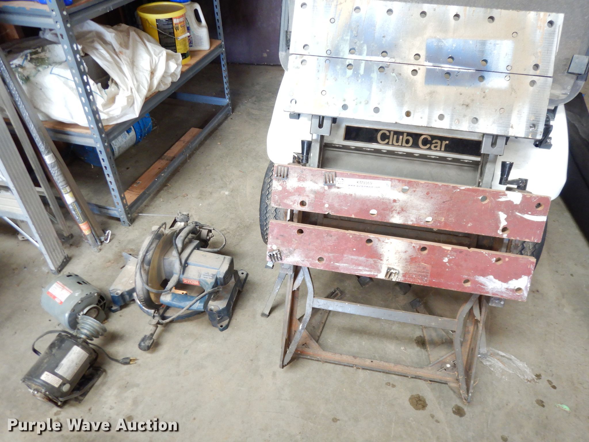 Purple Wave is selling a used Tools in Kansas. This item is a Tools with the following: Ryobi chop saw, (2) saw horses, (2) electric motors, 1/3 HP, Single phase